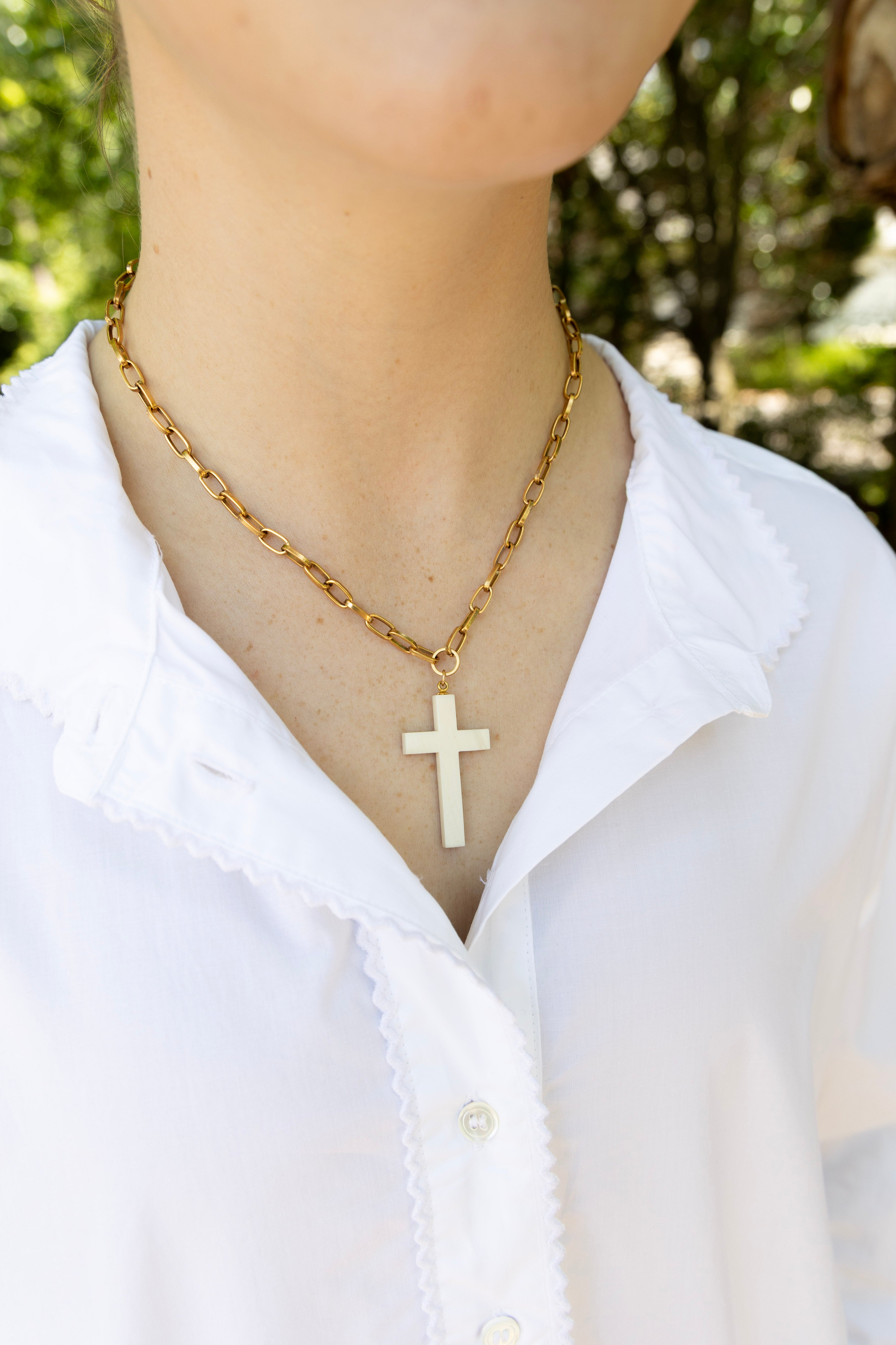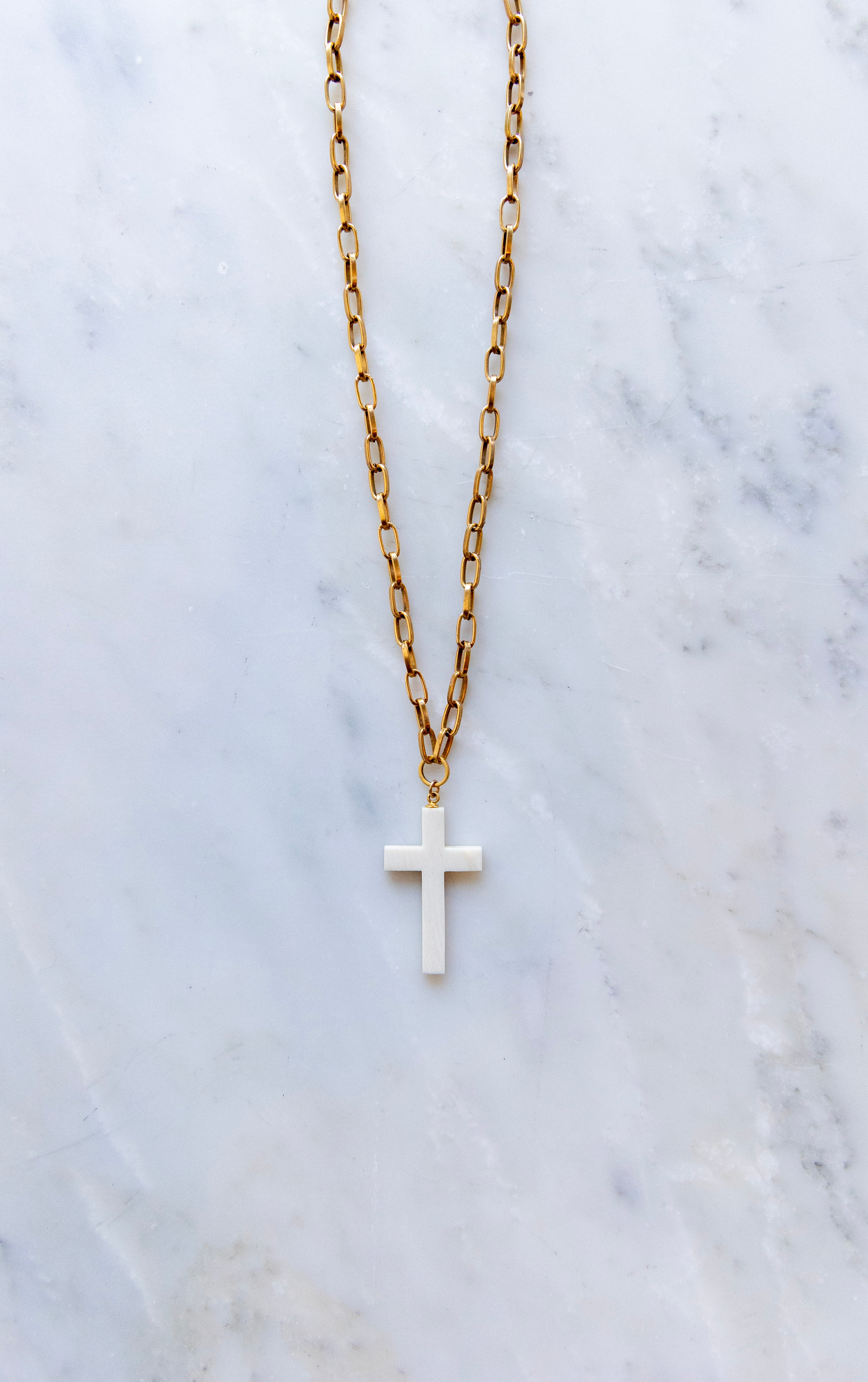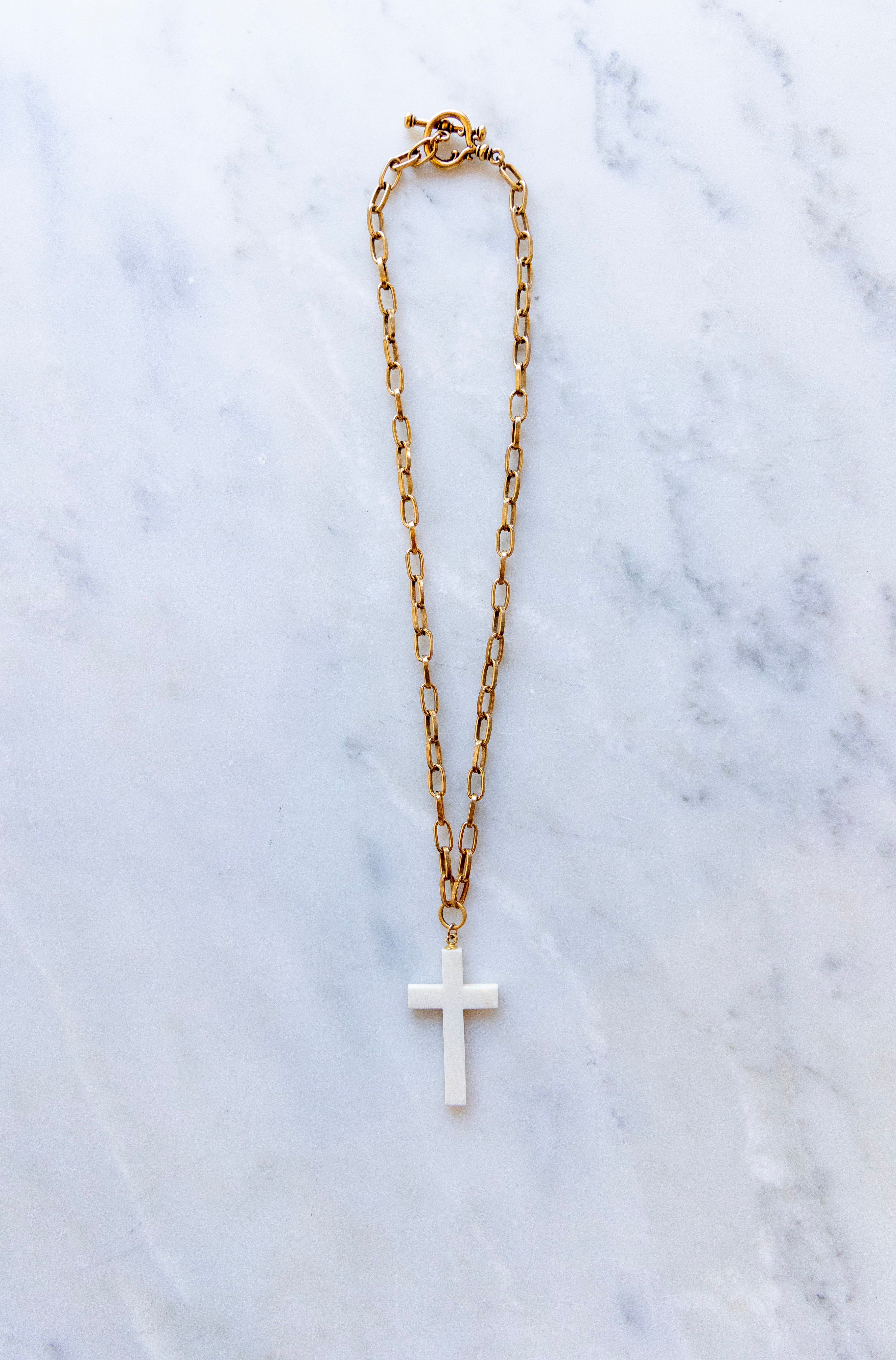 One of One #1304 :: 18" Lindsey Necklace with Antique Ivory Cross Pendant