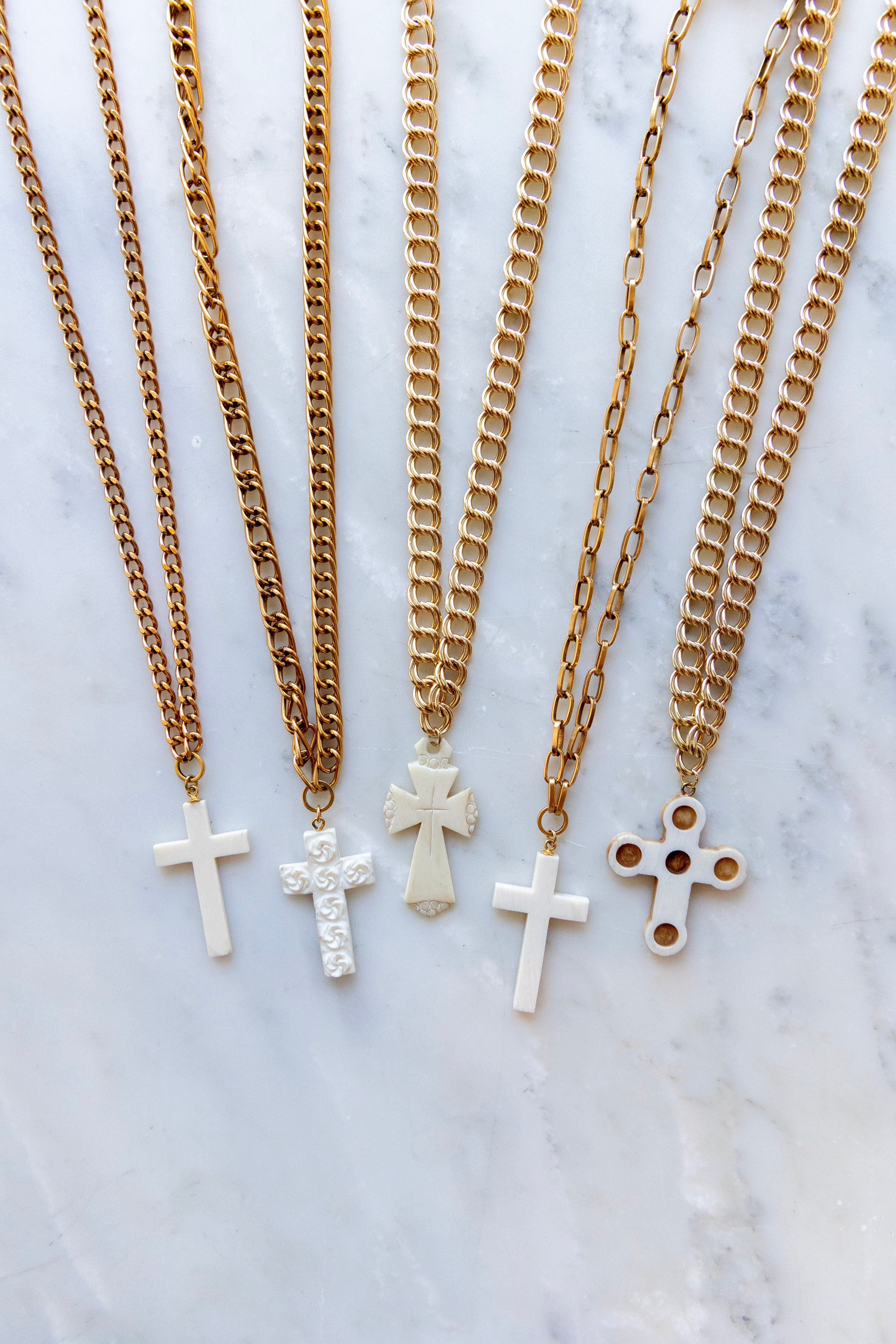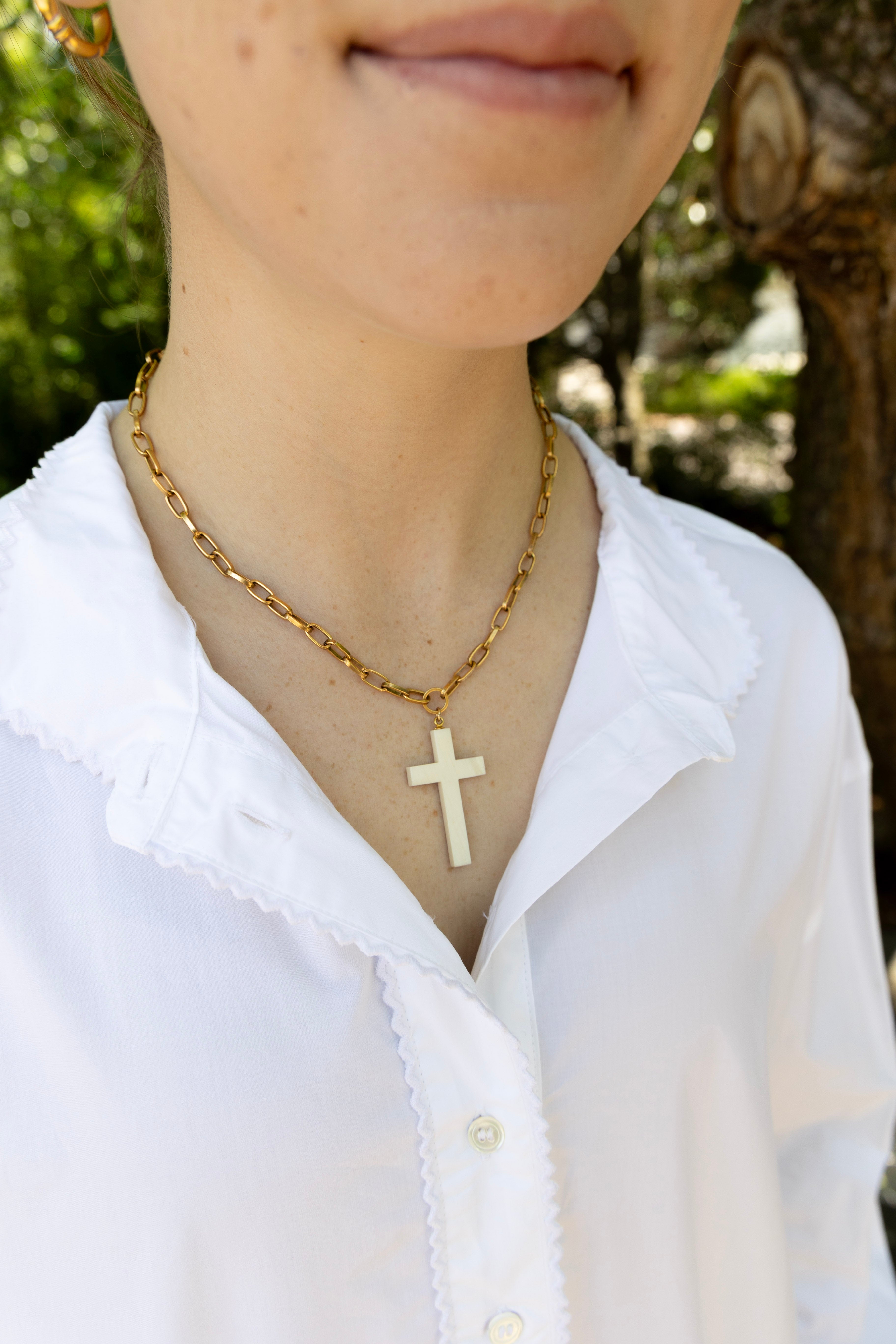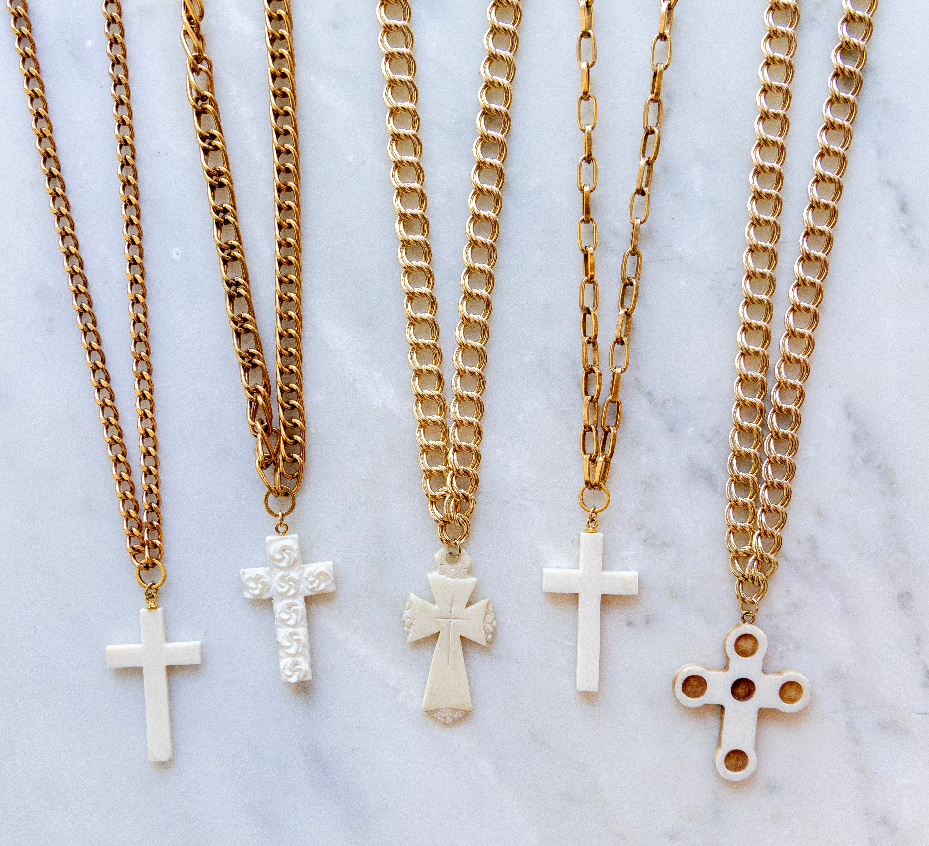 One of One #1304 :: 18" Lindsey Necklace with Antique Ivory Cross Pendant