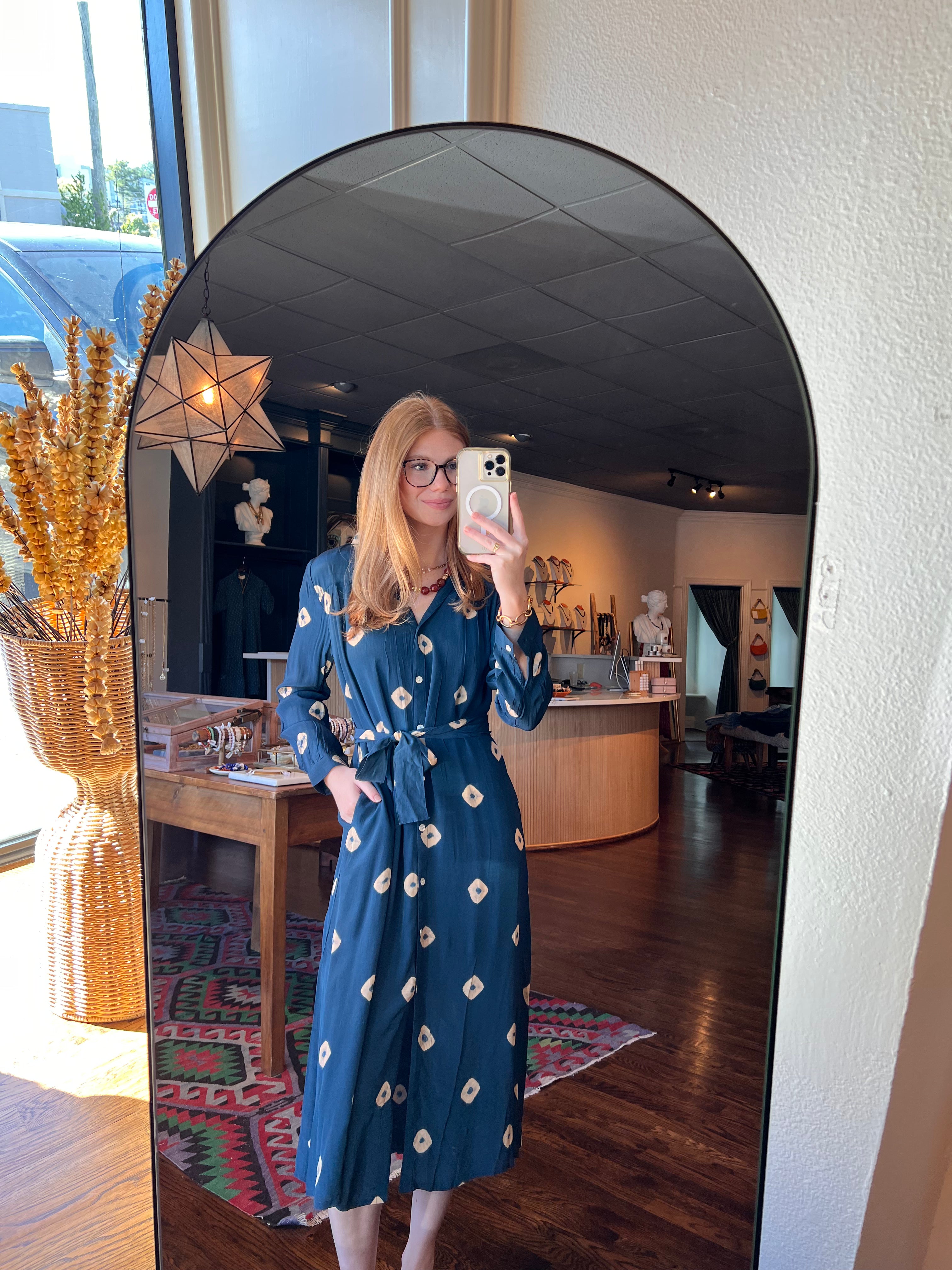 Ari Midi Dress in Steel Blue Tie Dye by ExVoto