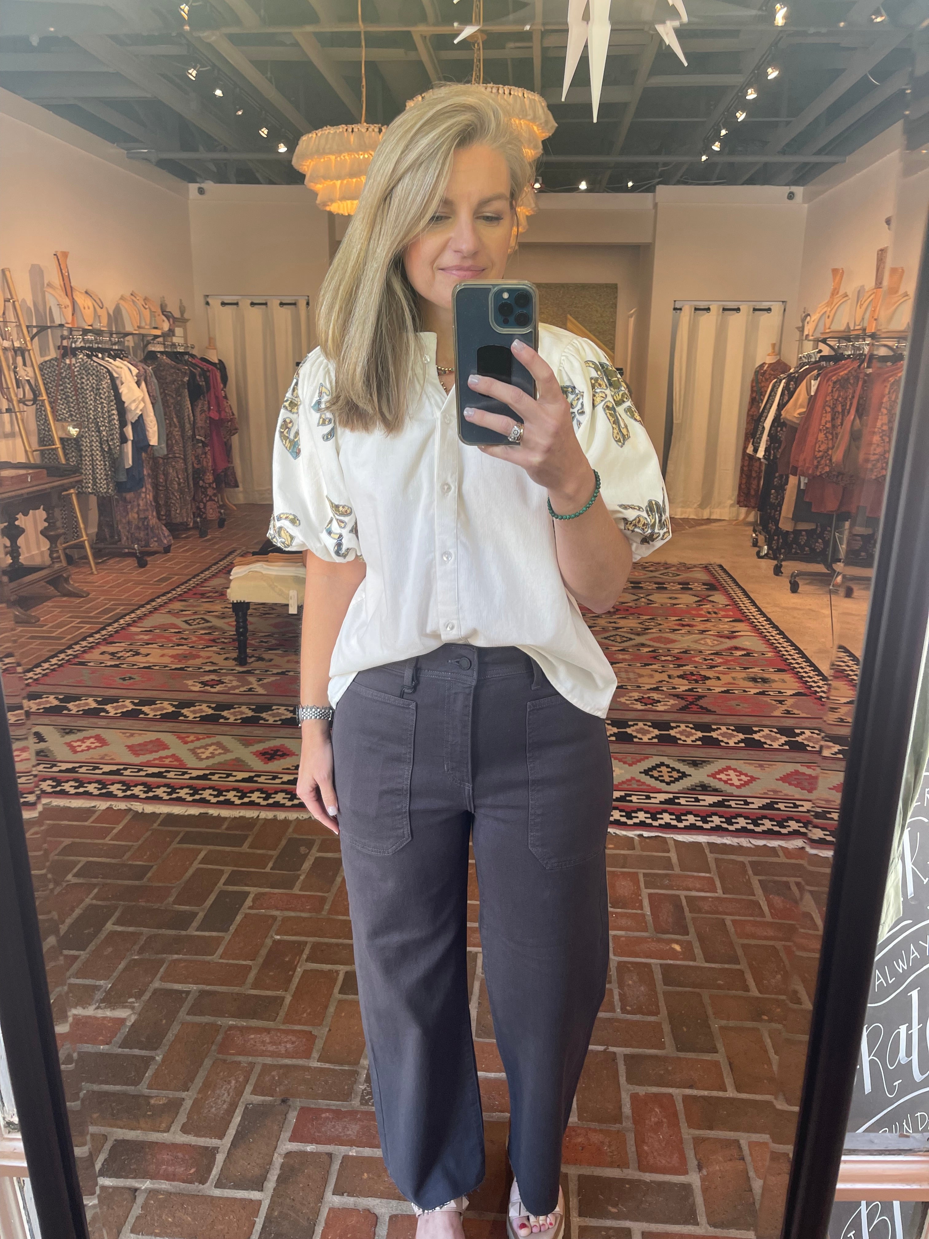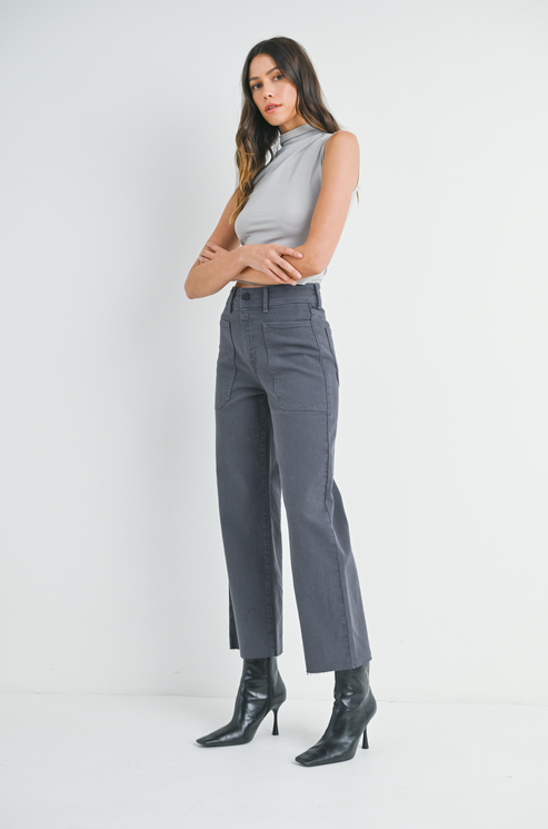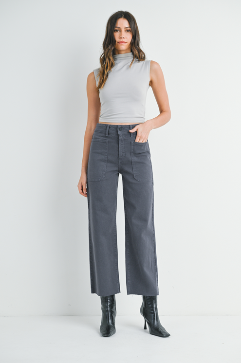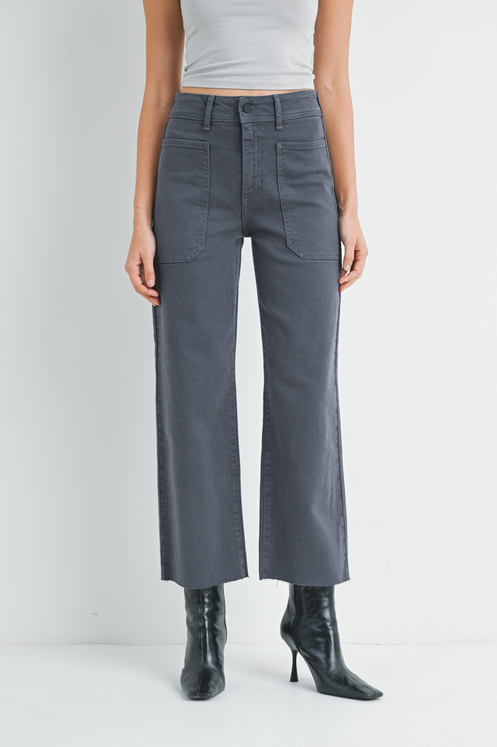 Utility Cargo Pocket Wide Leg Jean in Charcoal