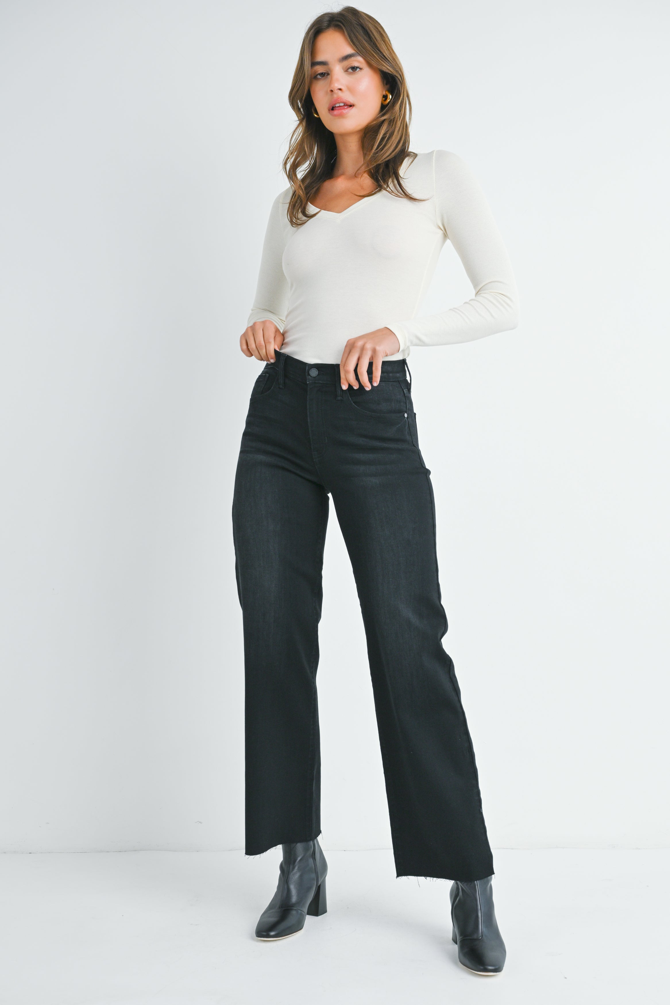 Slim Palazzo Jean with Scissor Cut Hem in Washed Black