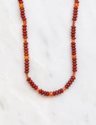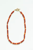 This 18" necklace features genuine carnelian beads and exclusive toggle closure.