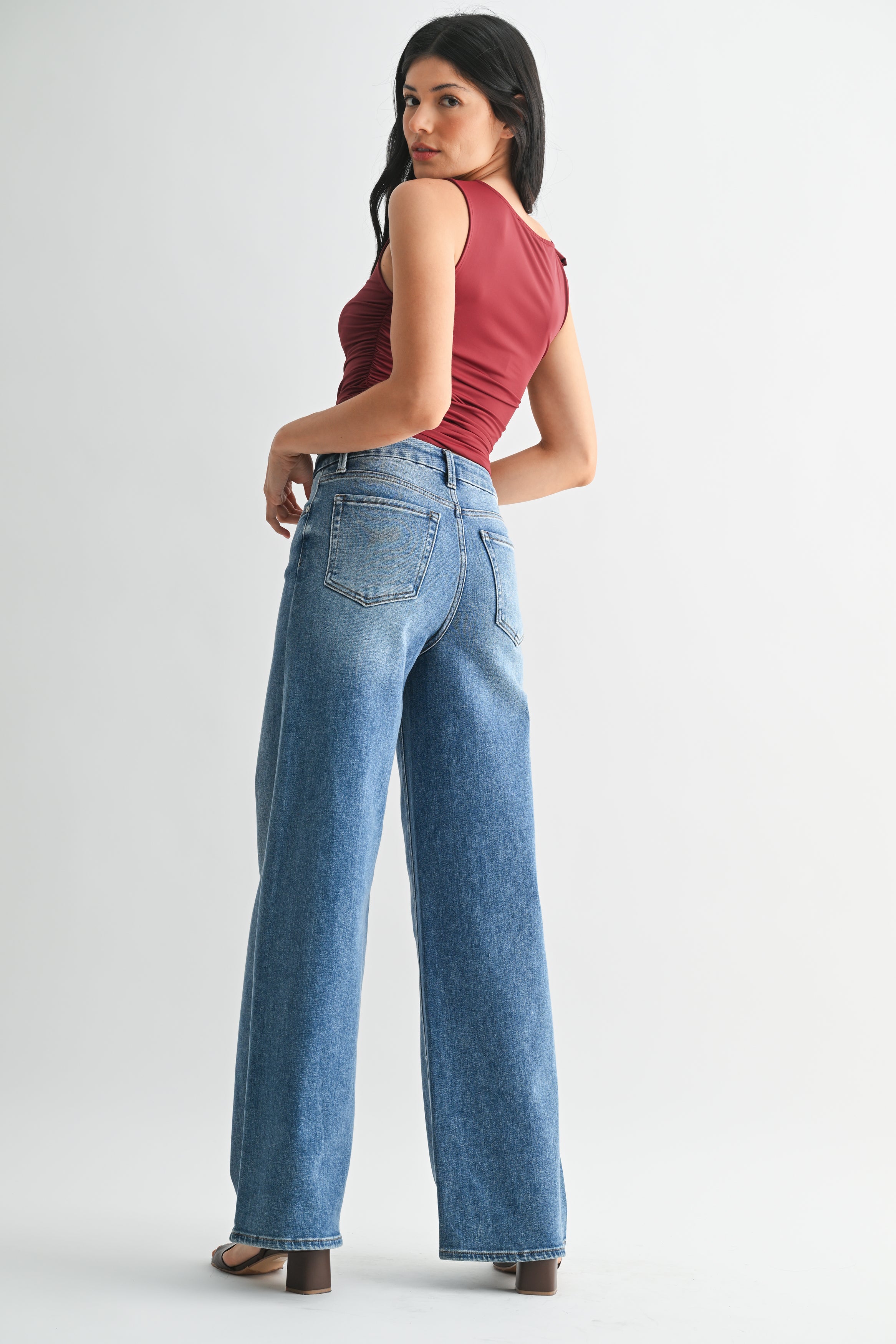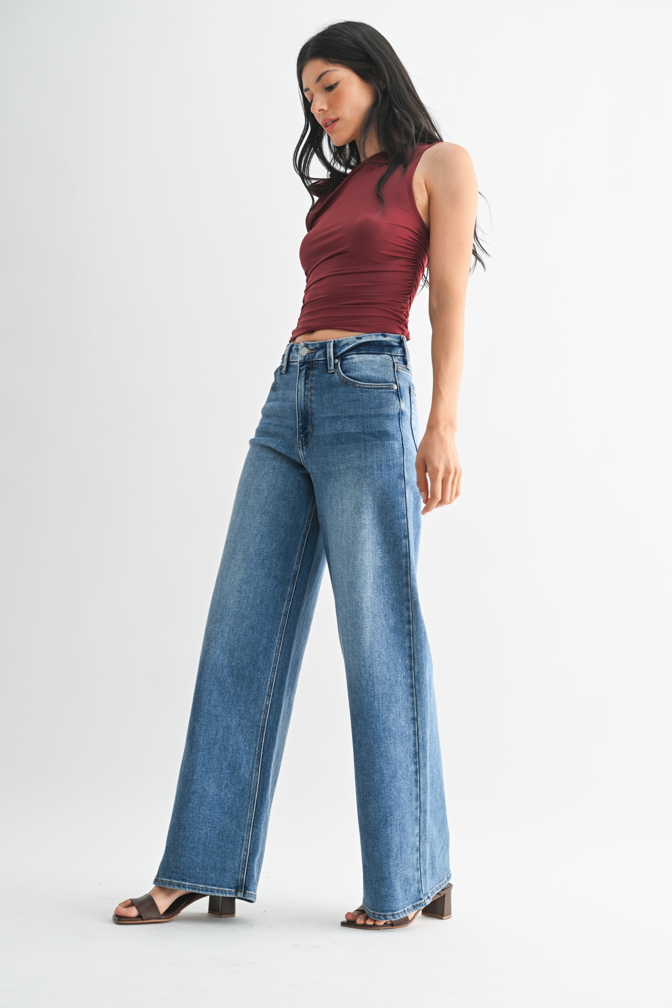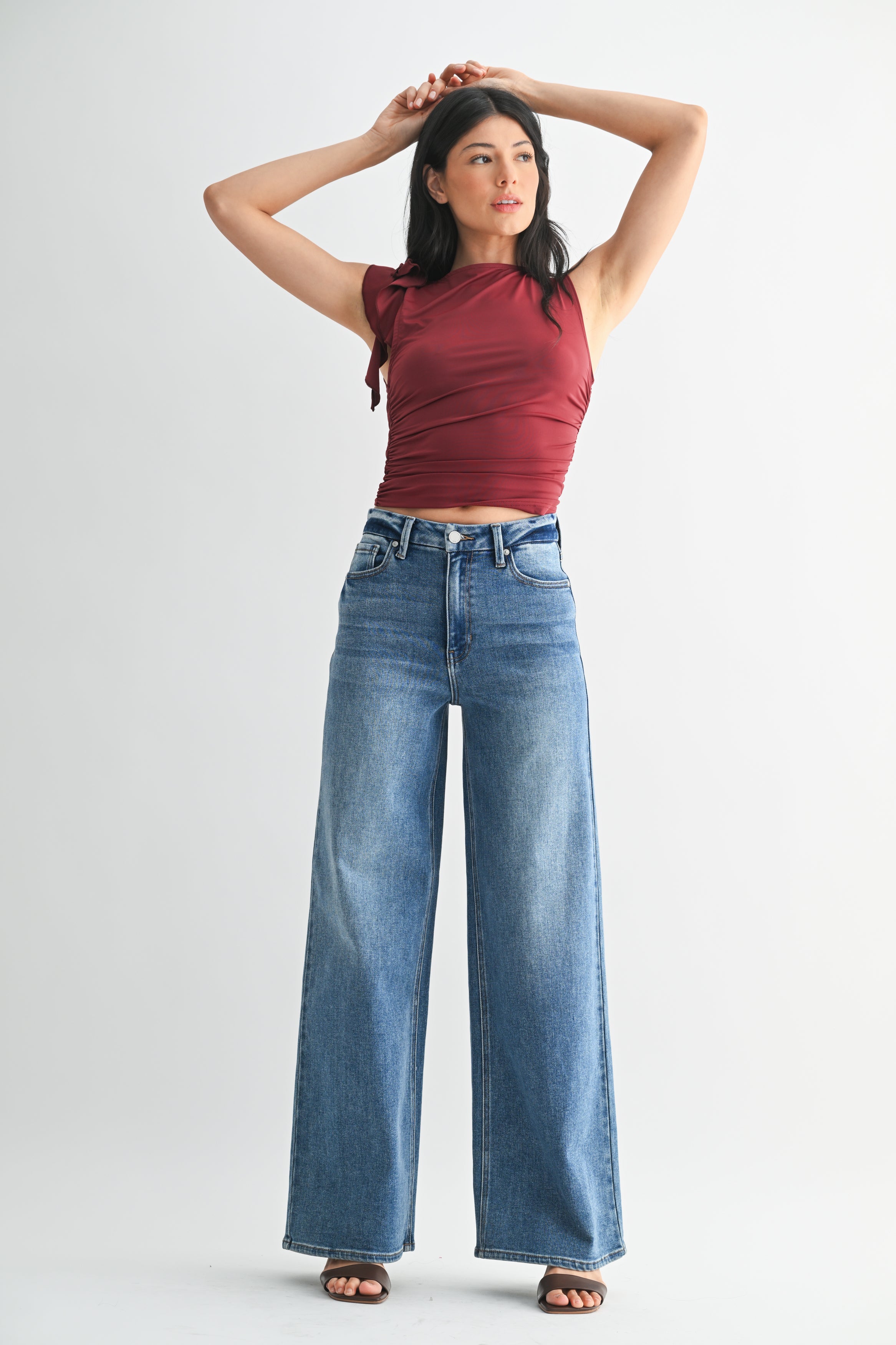 High Rise Palazzo Wide Leg Jean in Medium Denim