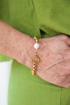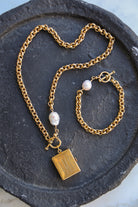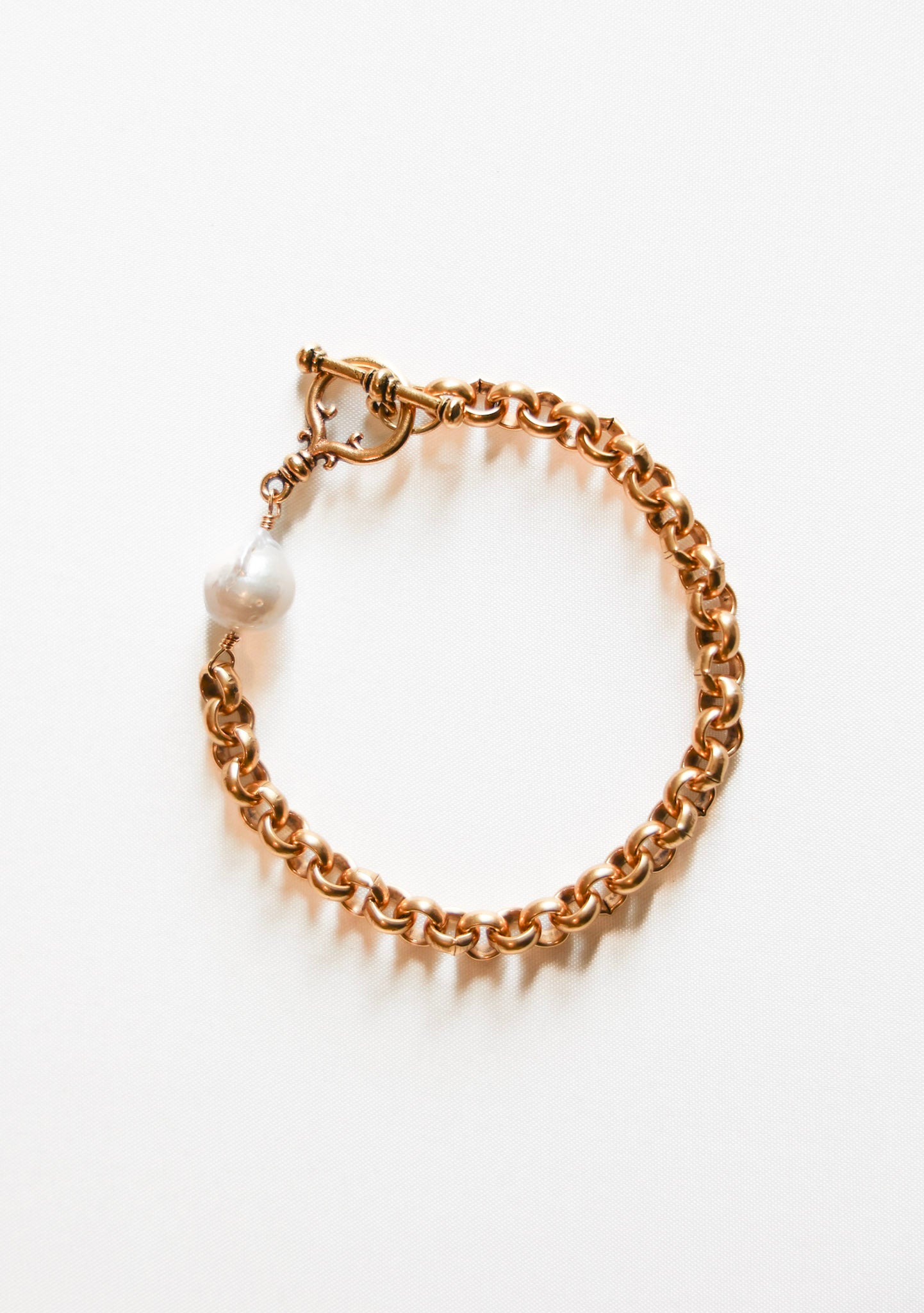 - 8″ chain bracelet featuring a white baroque pearl