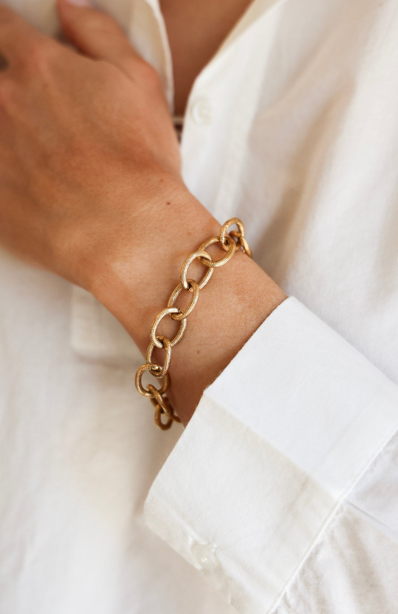 - 8" bracelet of 18k gold-plated large, etched cable chain