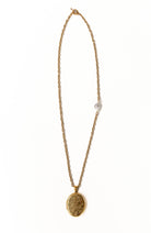 • 33" necklace features plated 18k gold chain with a protective matte finish, one freshwater pearl, and our Exclusive ExVoto Vintage toggle closure