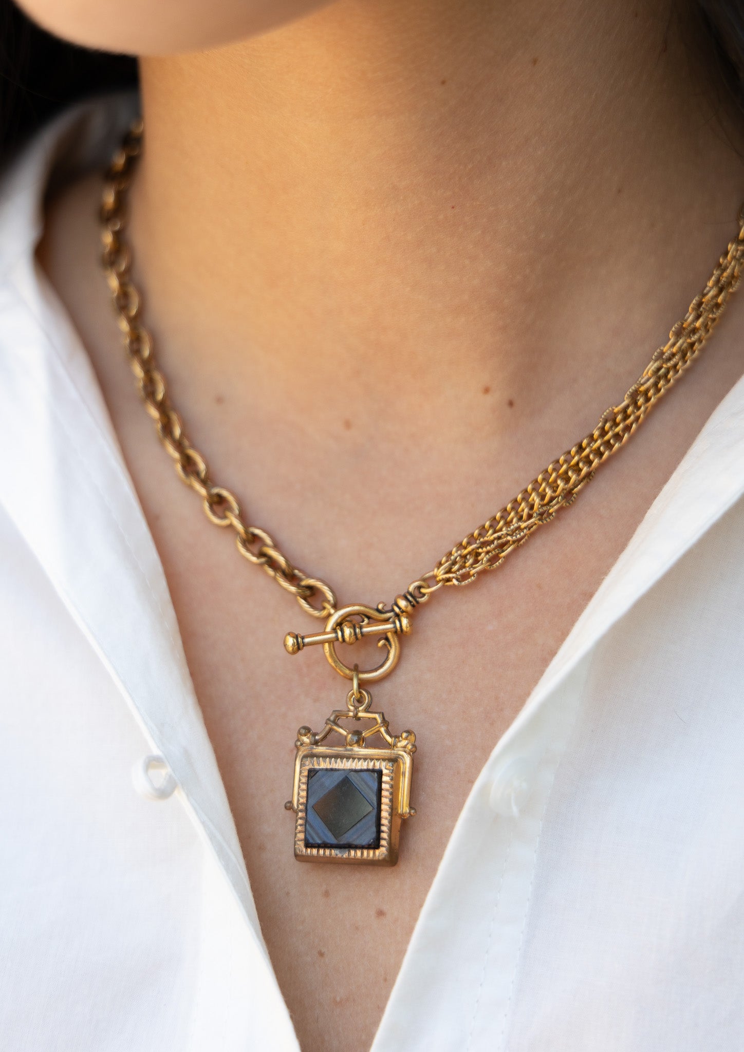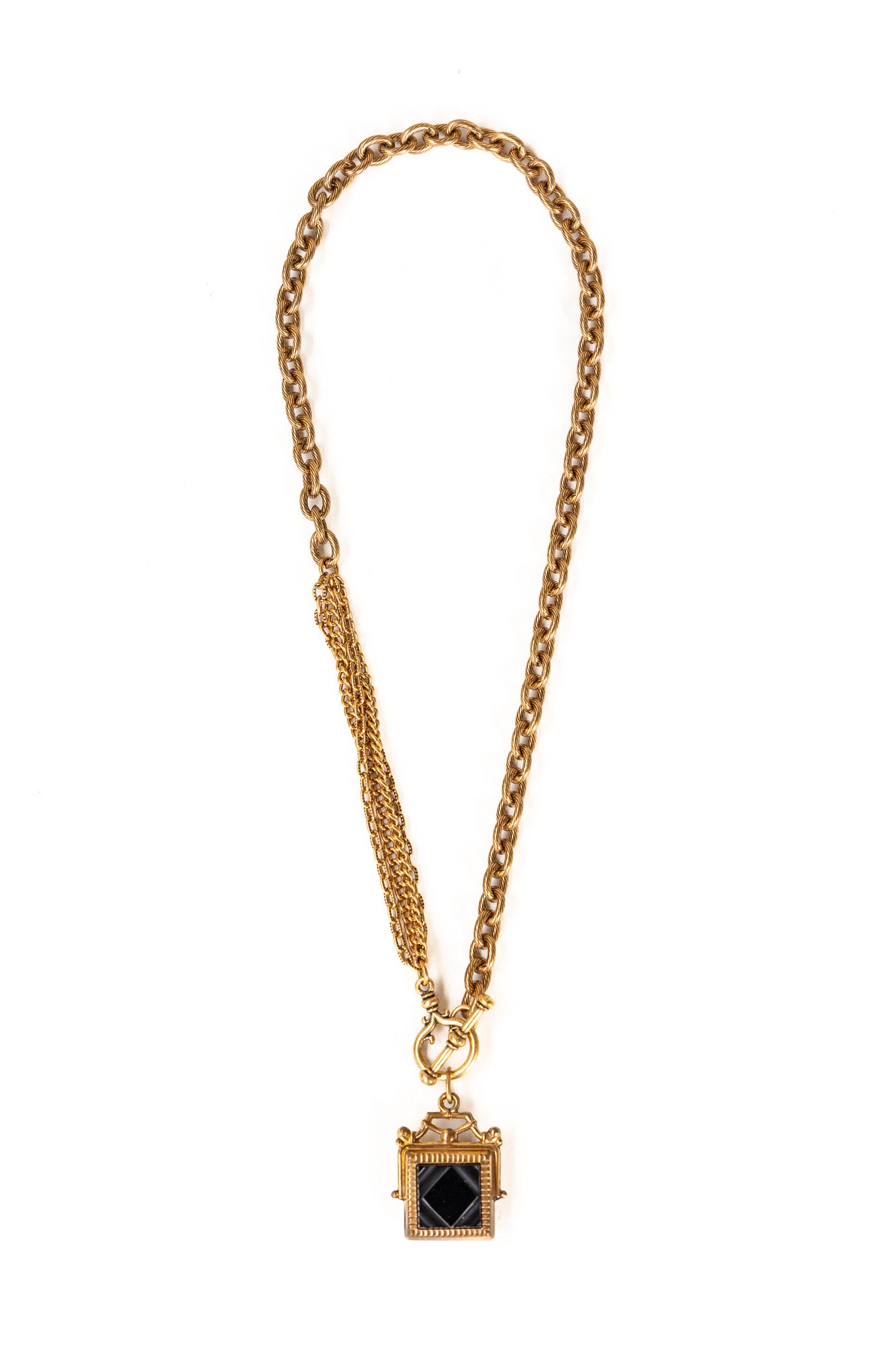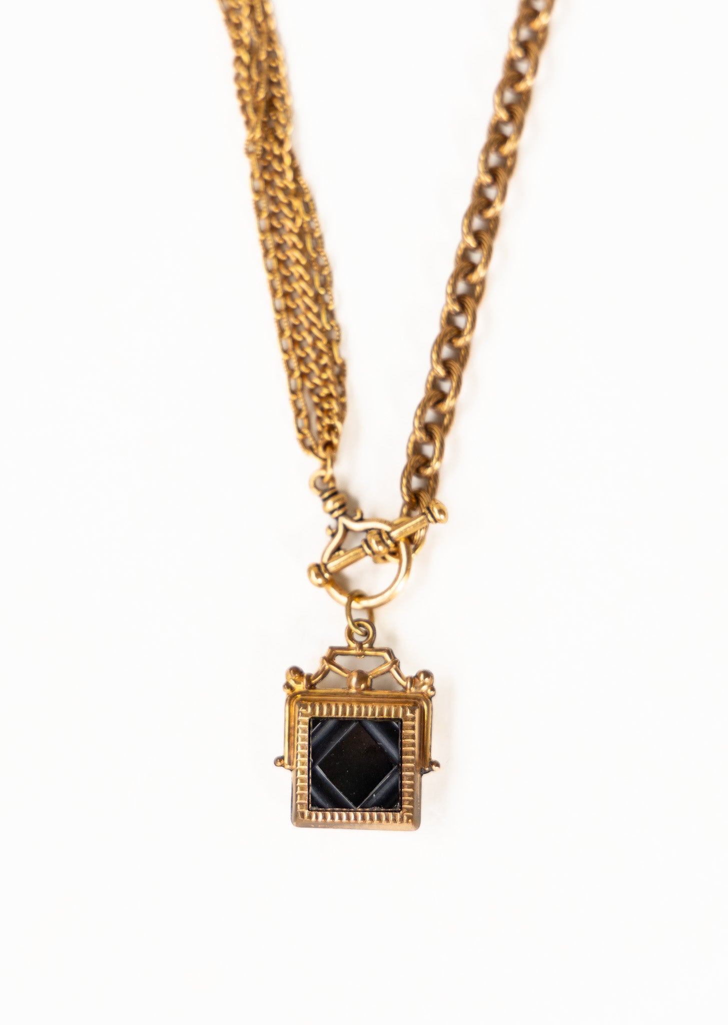 - This necklace features a one of a kind, antique, square onyx watch fob pendant that is 100 years old or more