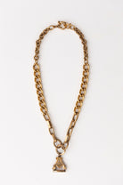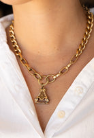 - 18" necklace features plated 18k gold chain with a forever finish and our exclusive ExVoto Vintage toggle closure at back