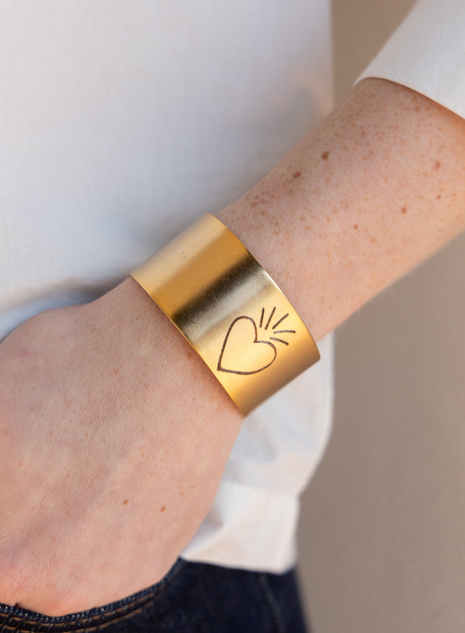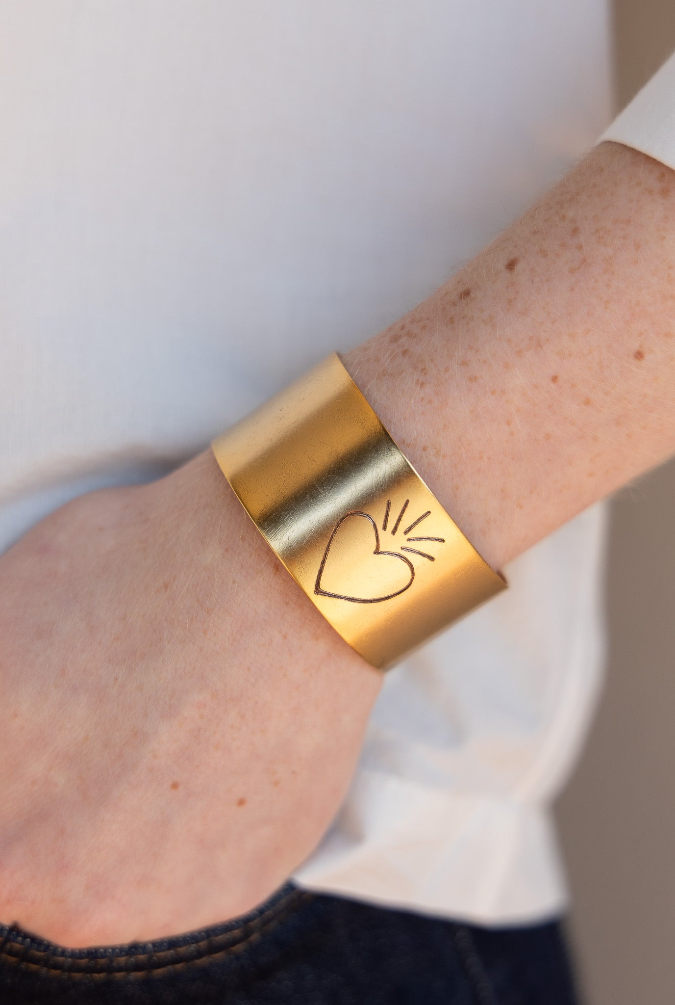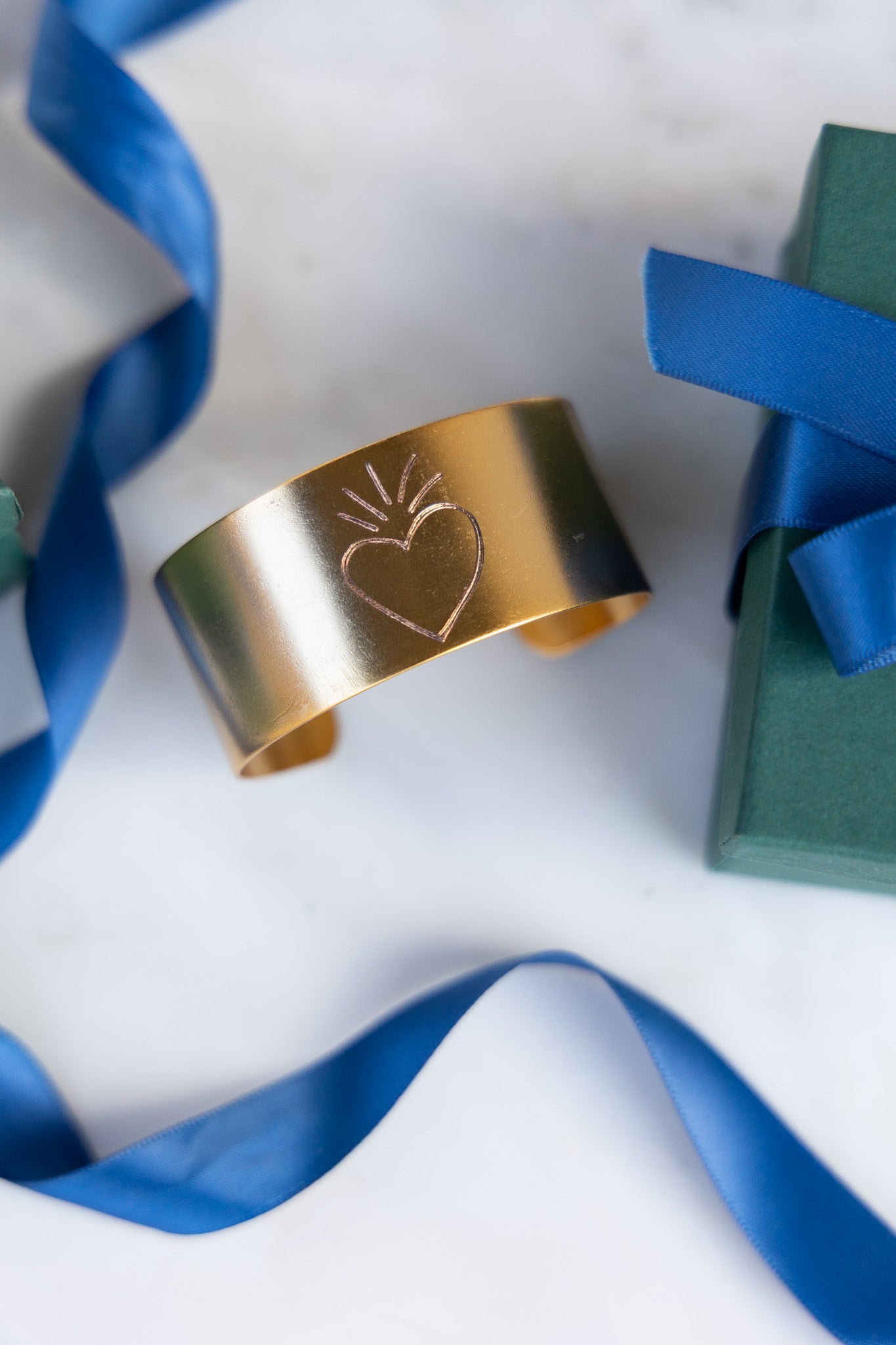 For ExVoto’s 16th anniversary, Elizabeth created a sacred heart symbol for engraving on this special edition cuff!