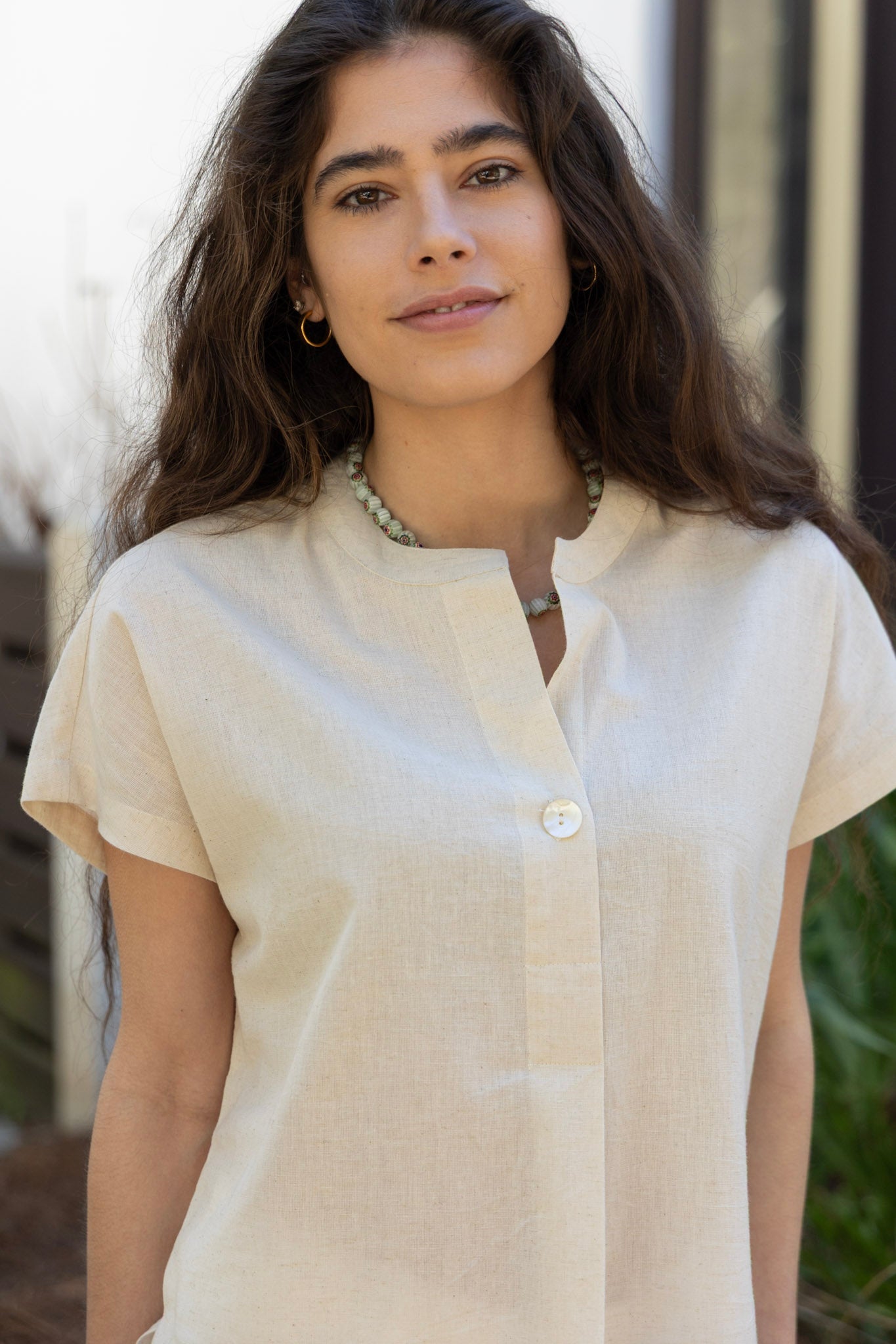 RESORT WEAR :: Anna Cotton Linen Blouse in Natural by ExVoto