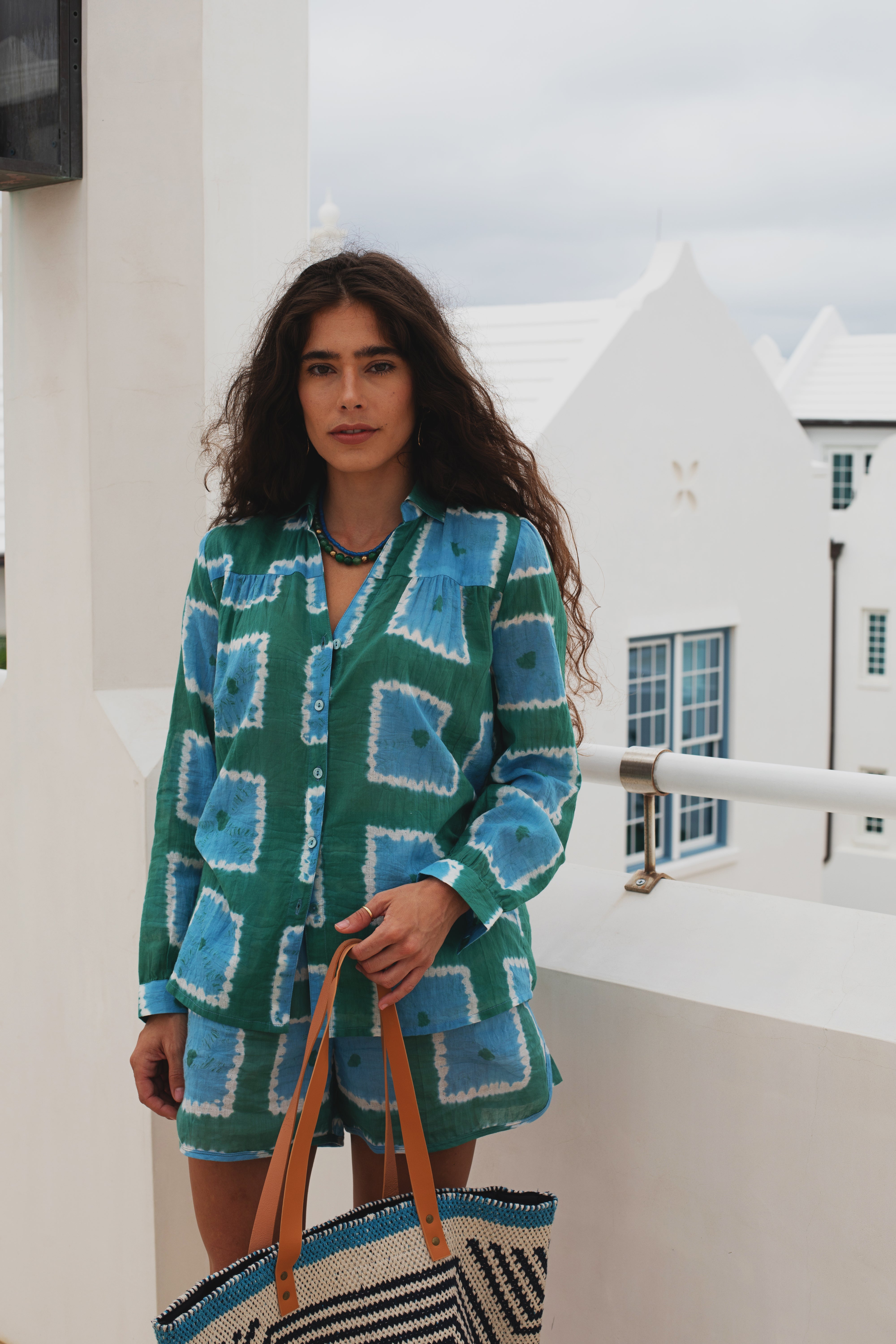 RESORT WEAR :: Ari Tie Dye Blouse in Blue/Green Tie Dye by ExVoto