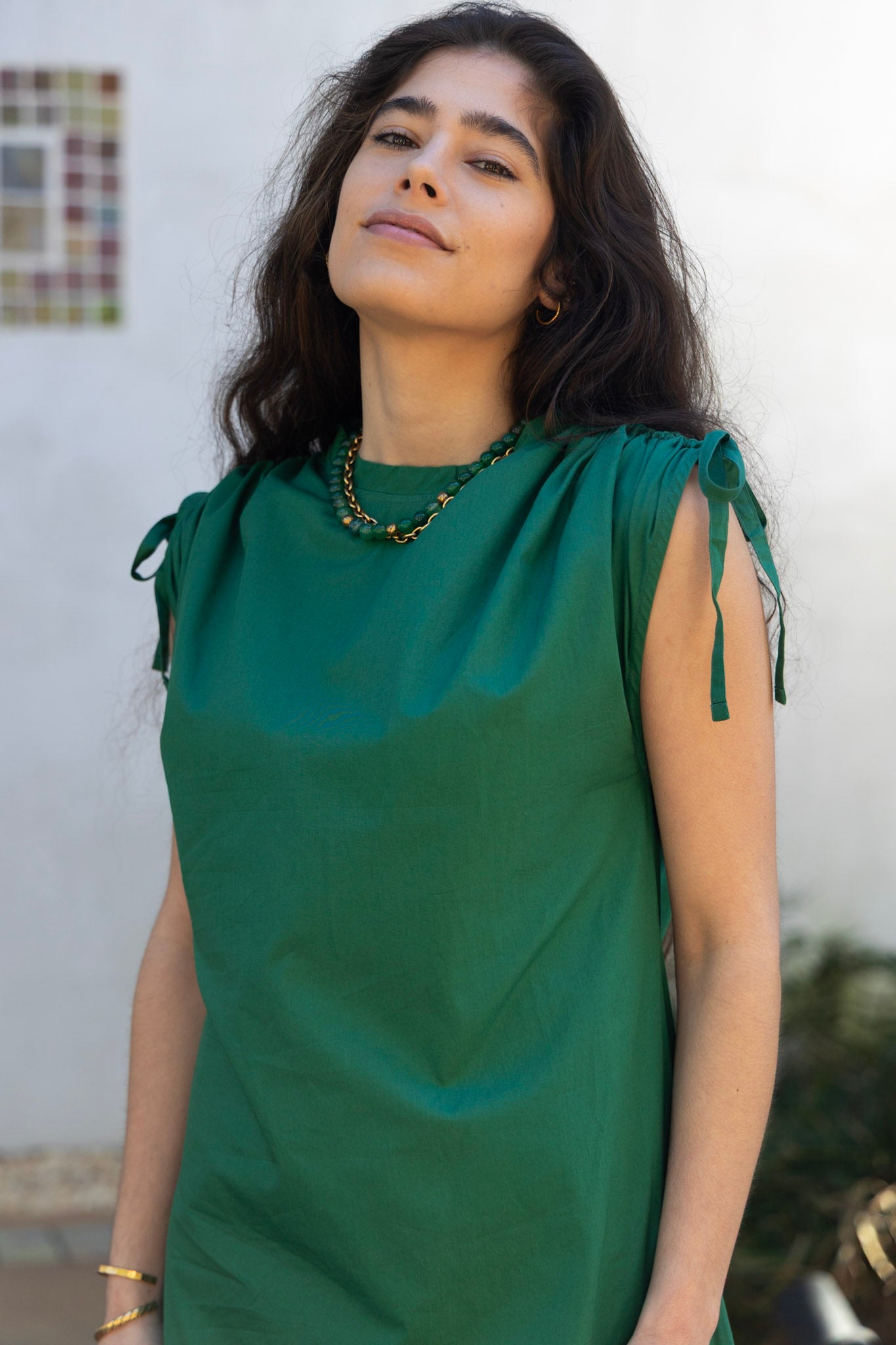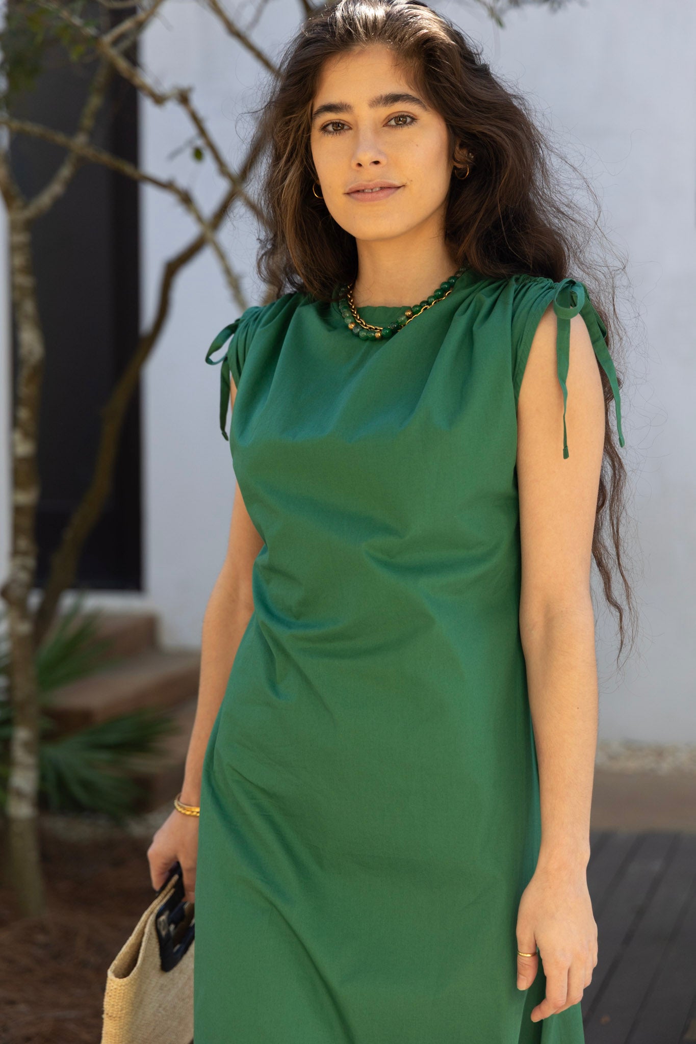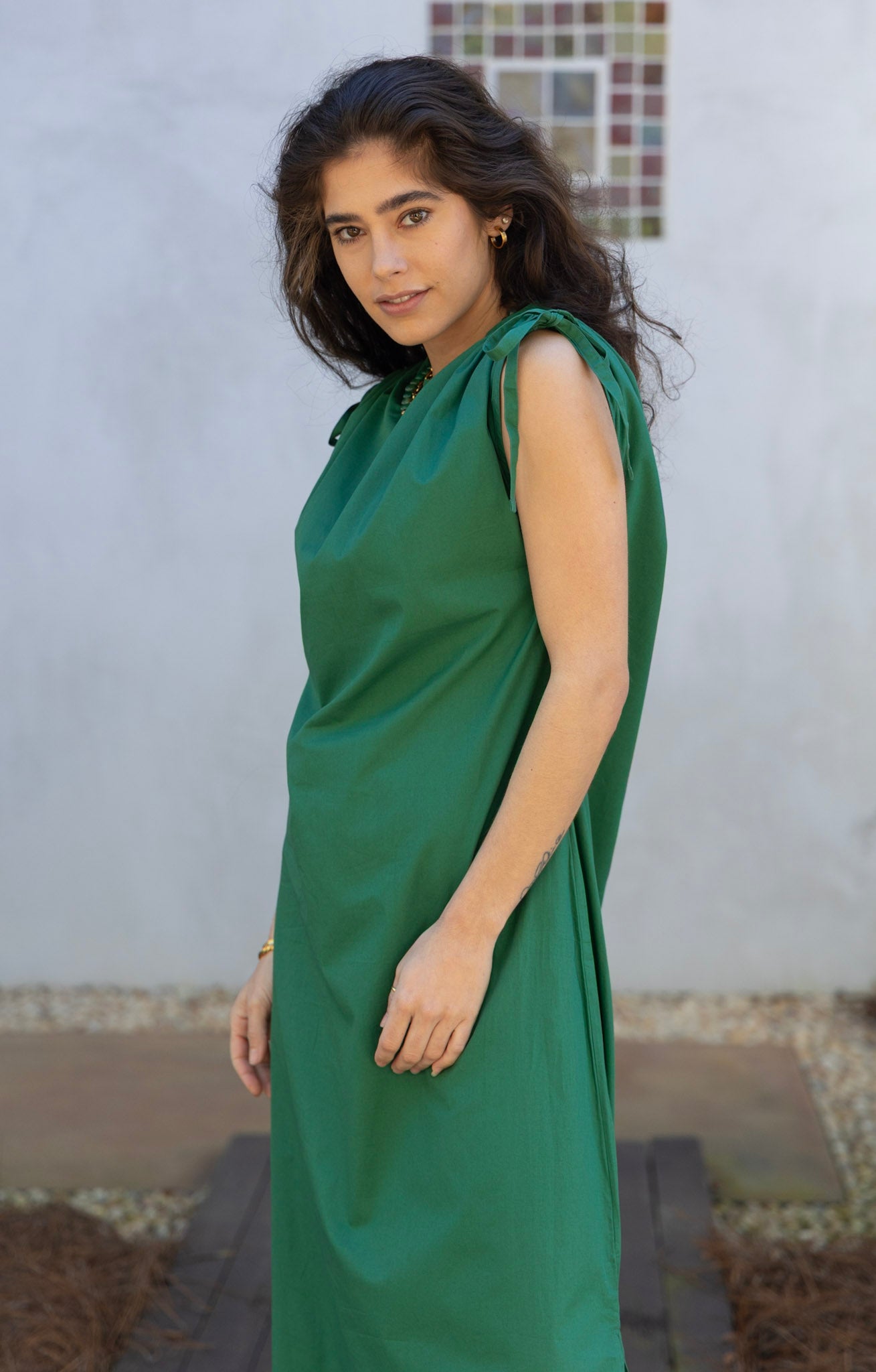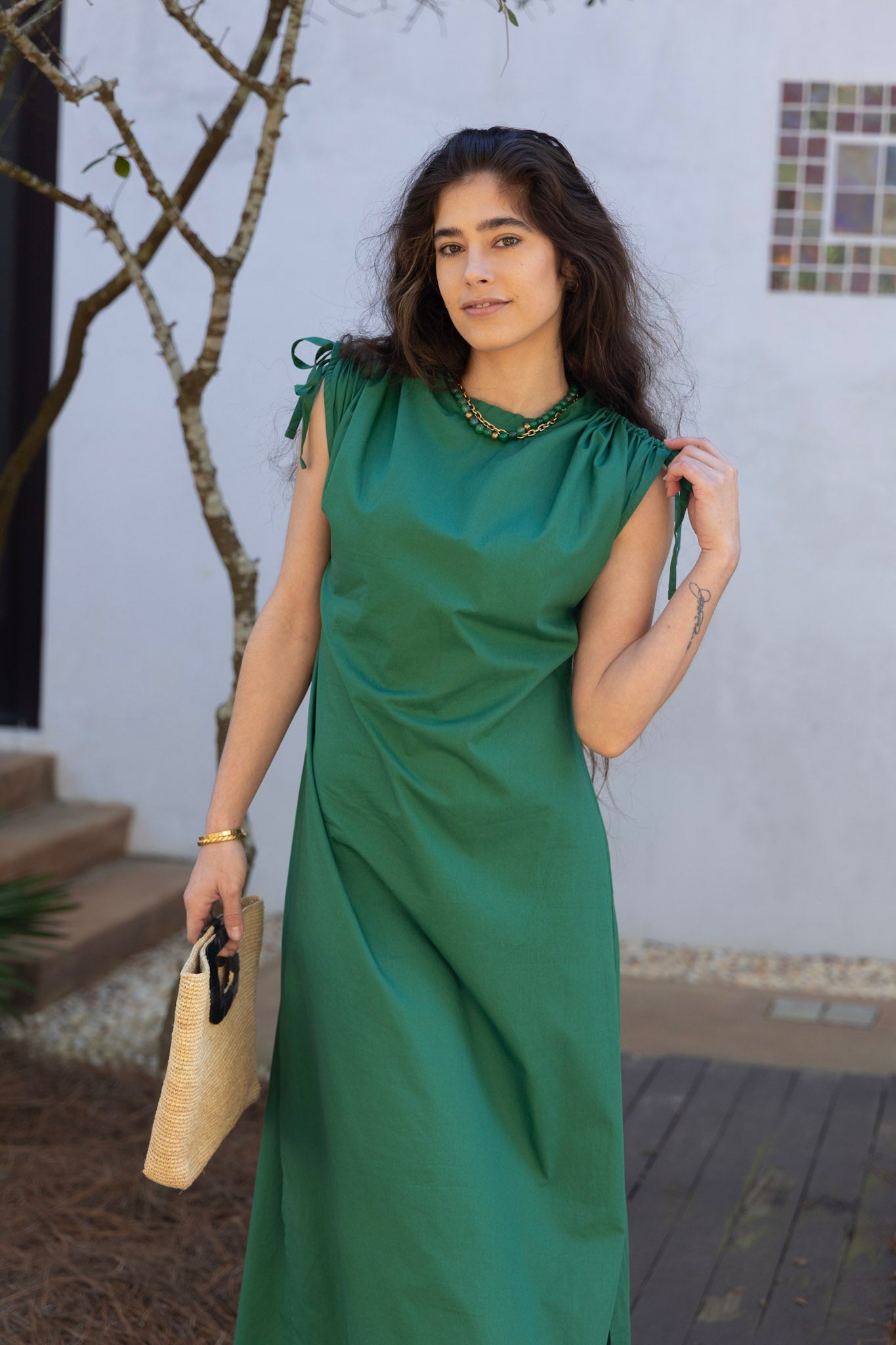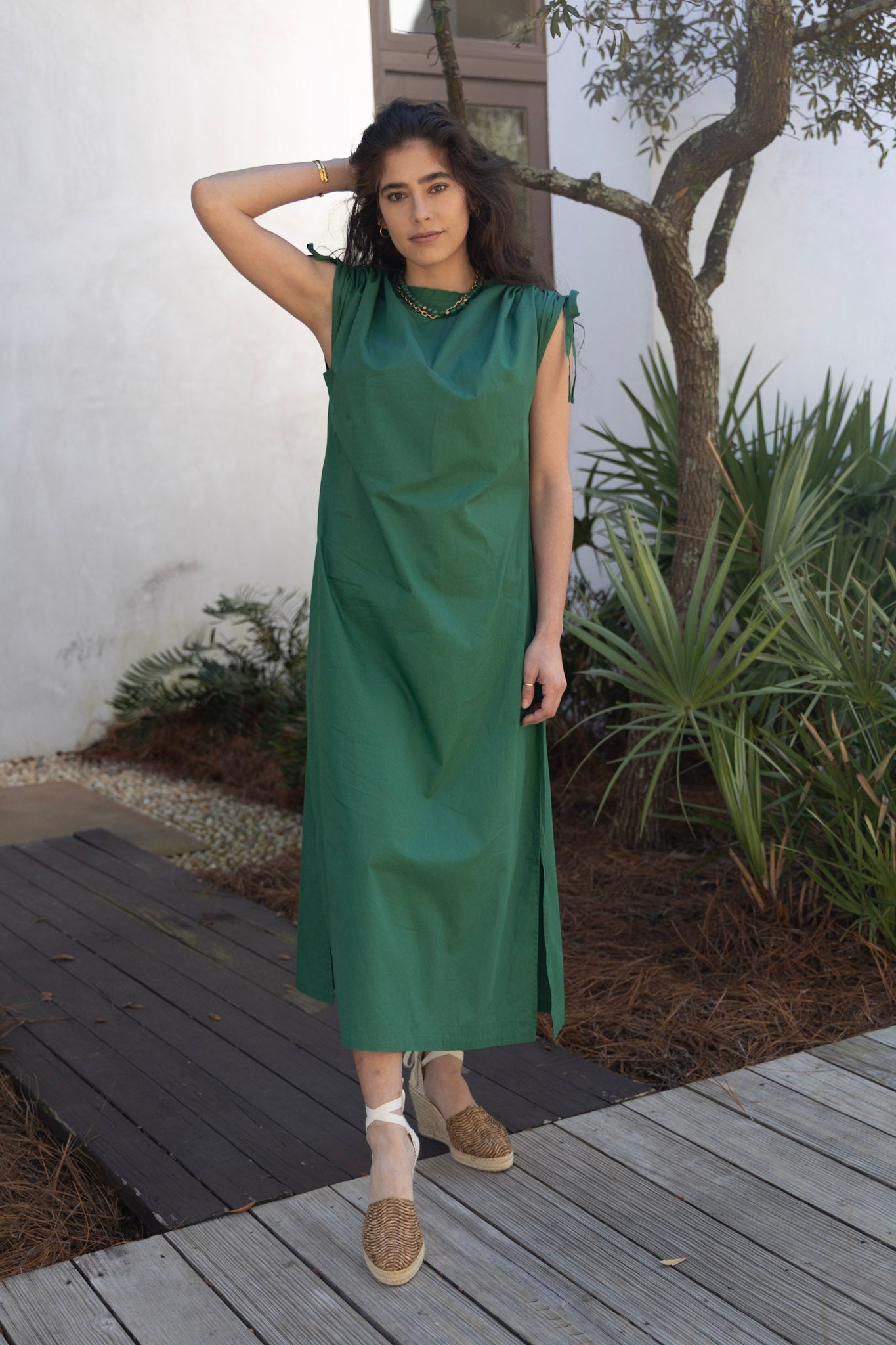 RESORT WEAR :: Cam Poplin Maxi Dress in Foliage Green by ExVoto