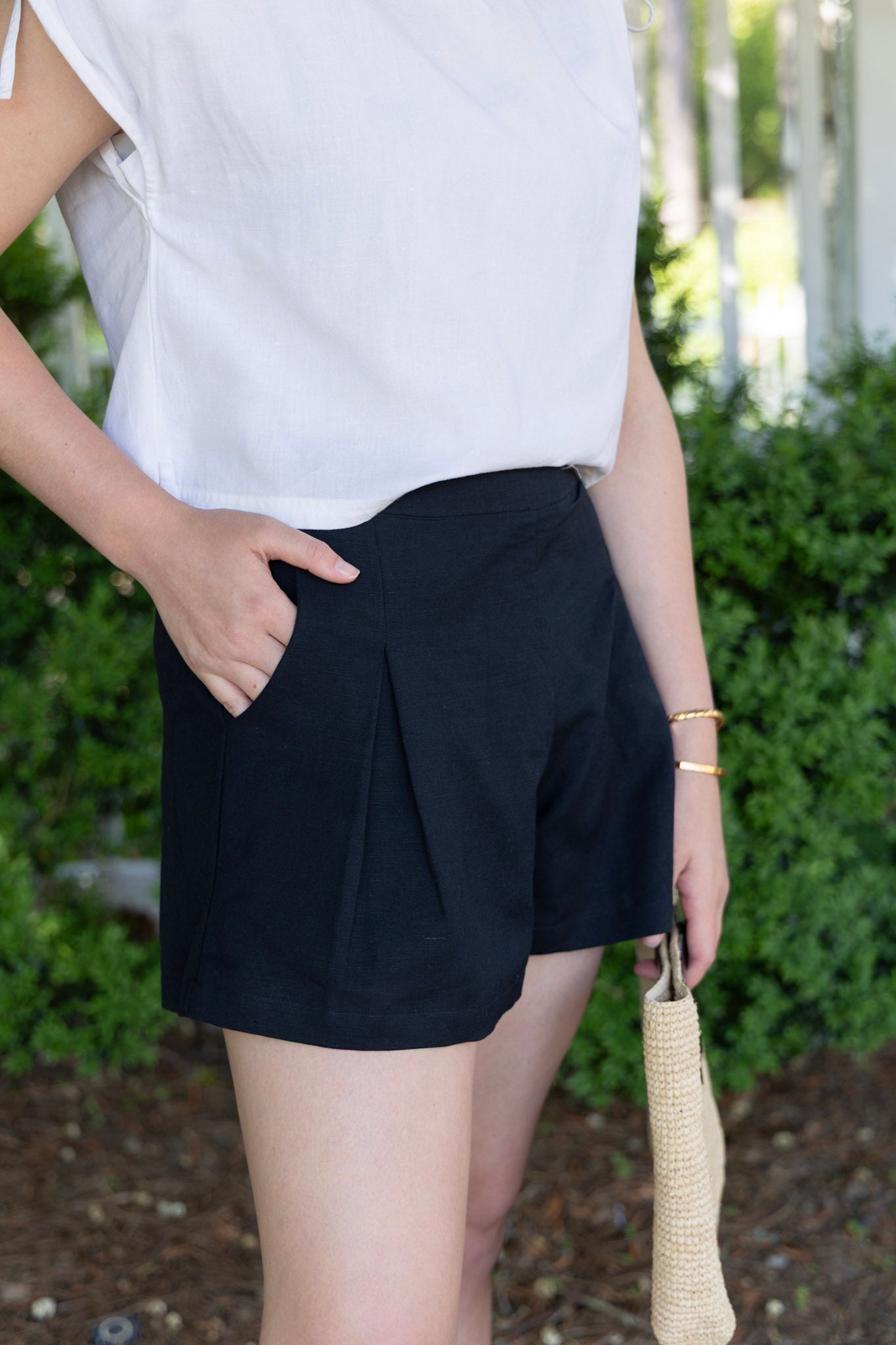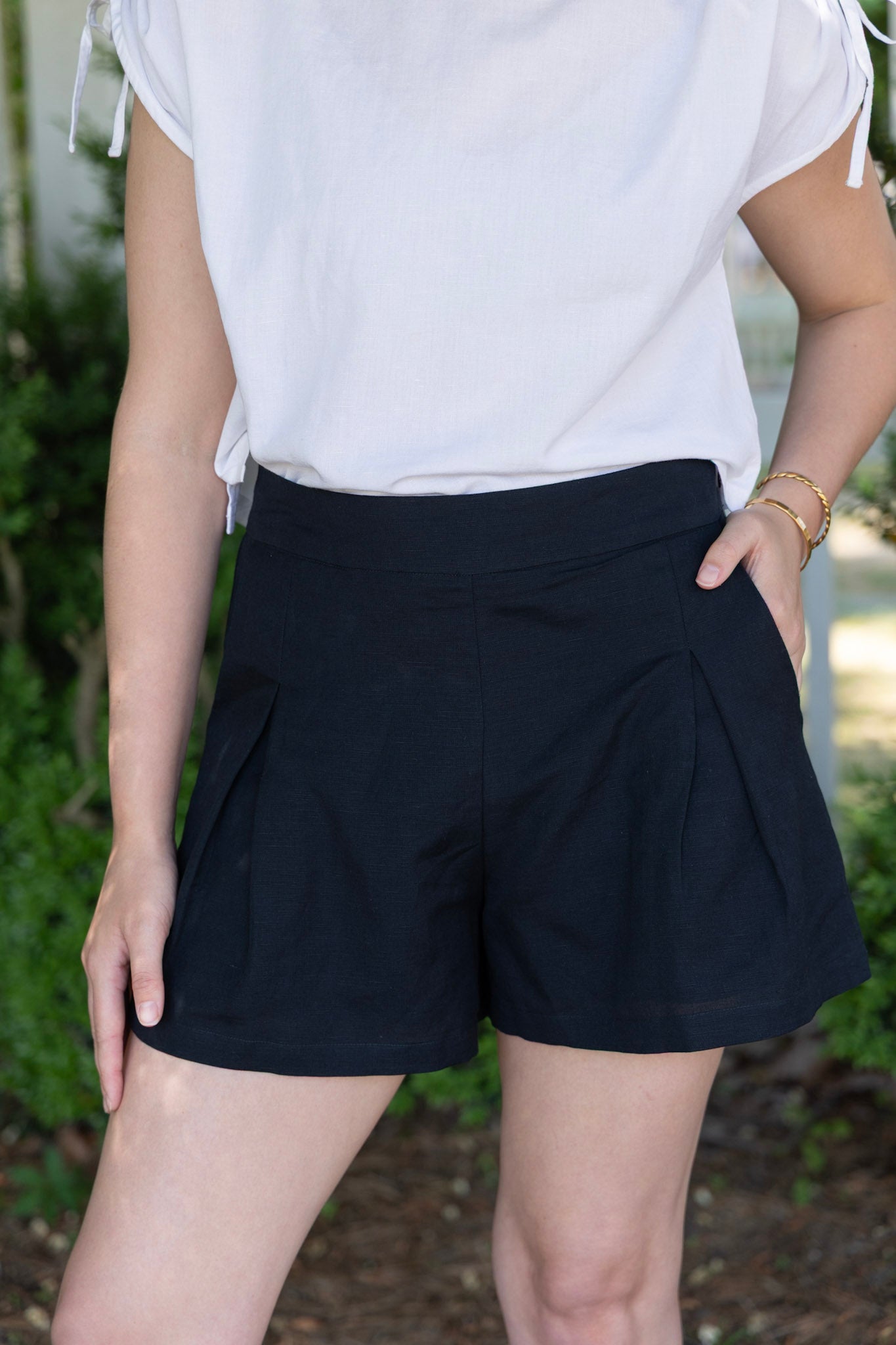 RESORT WEAR :: Hayley Linen Shorts in Black by ExVoto