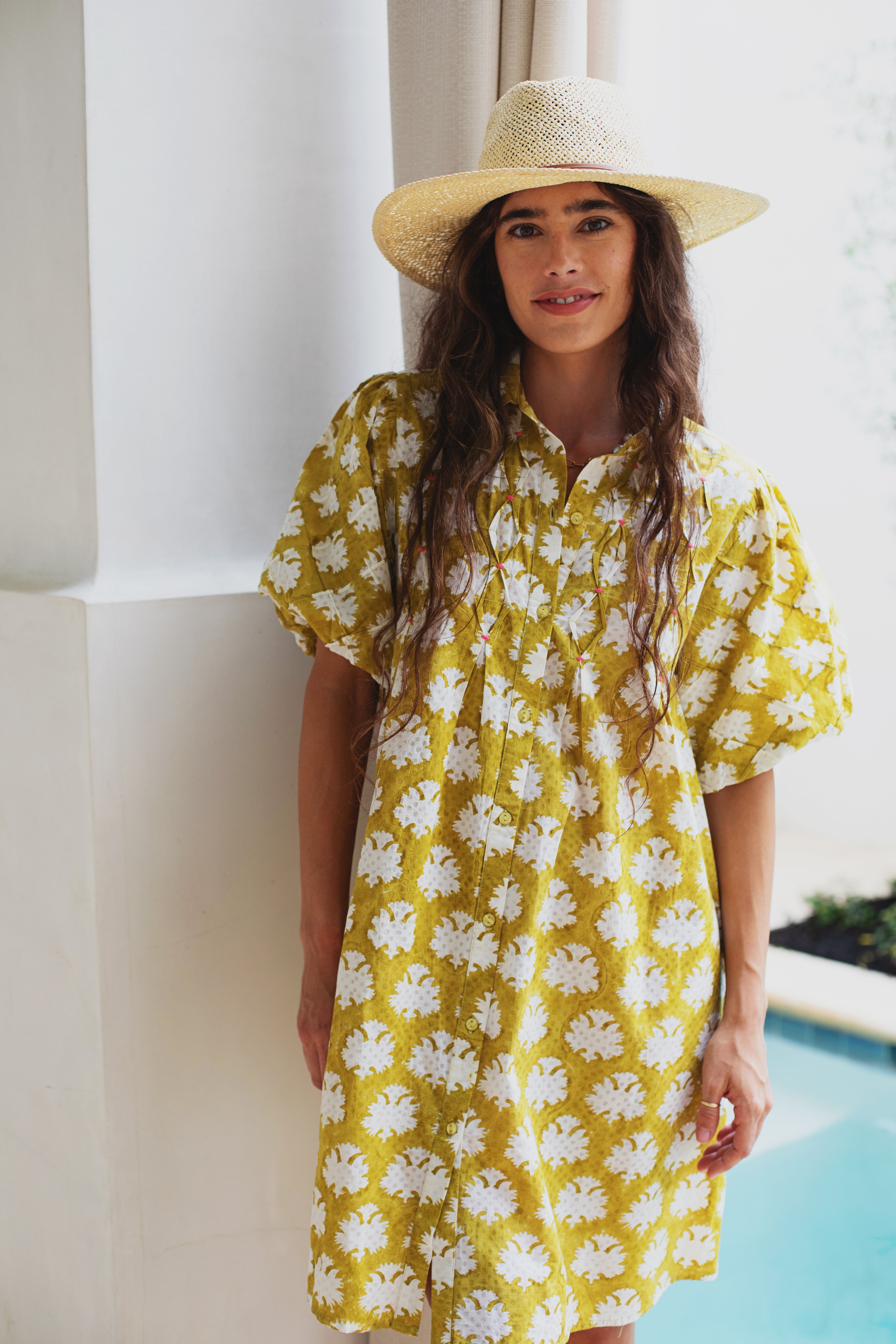 RESORT WEAR :: Lizzie Dress in Yellow Blockprint by ExVoto