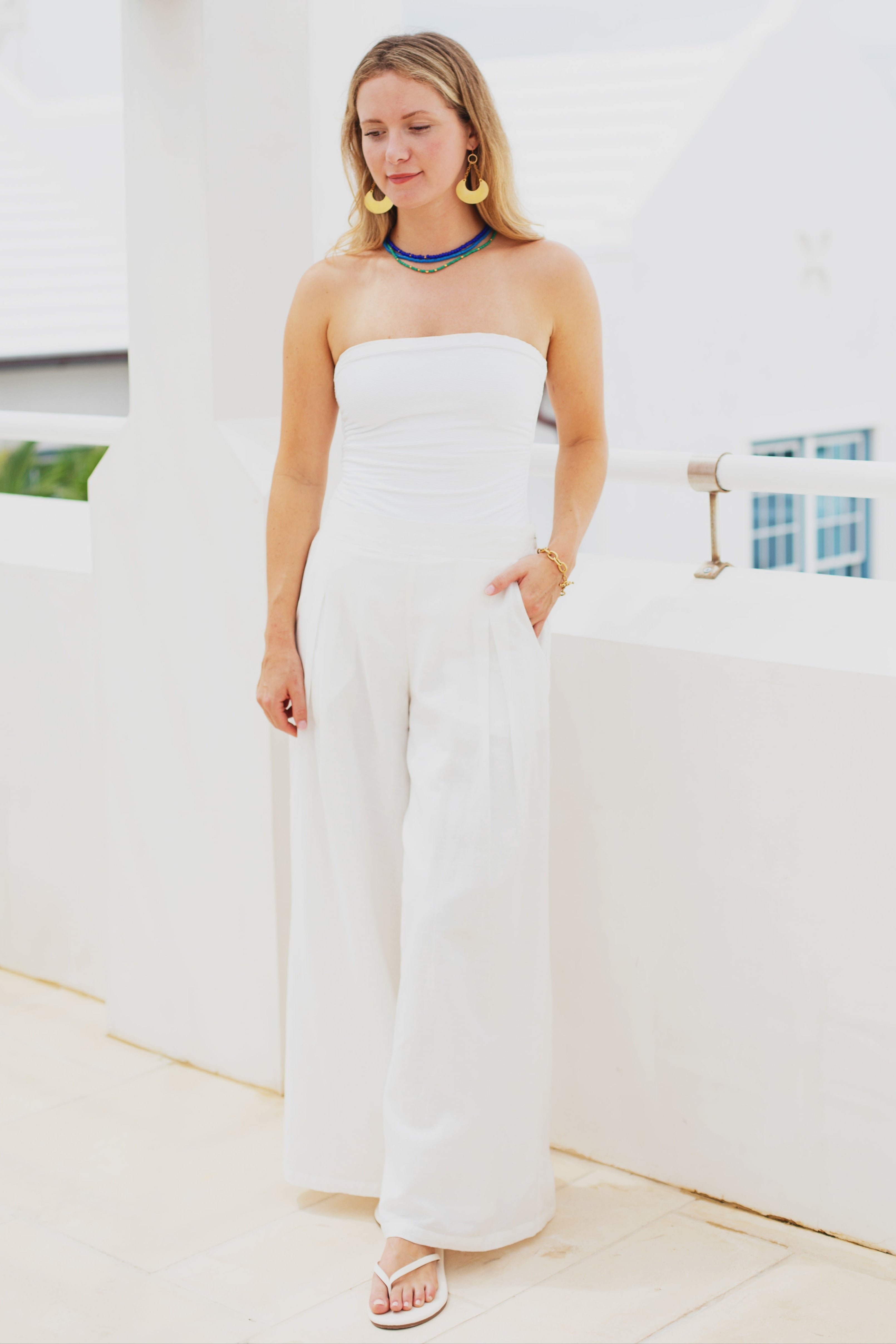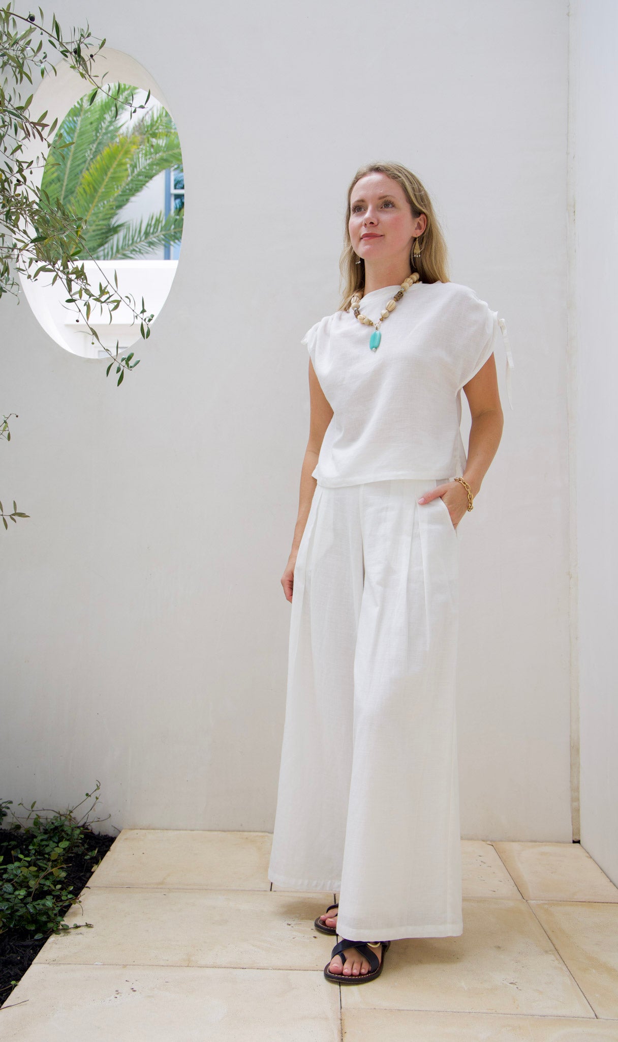 RESORT WEAR :: Hayley Linen Pants in White by ExVoto