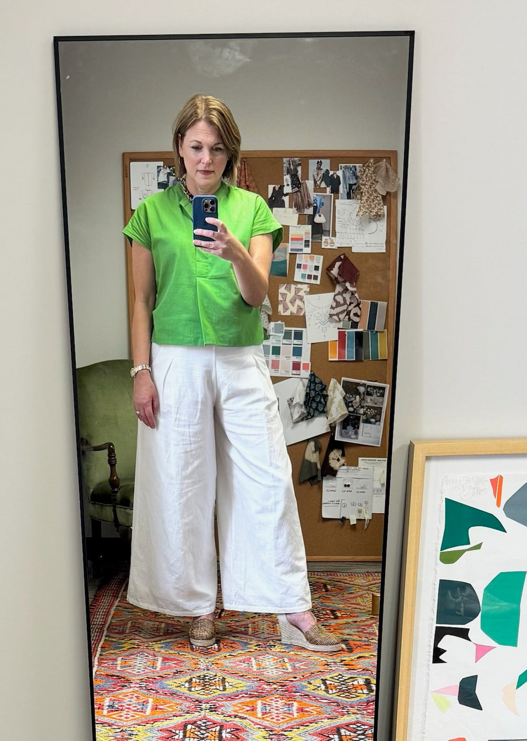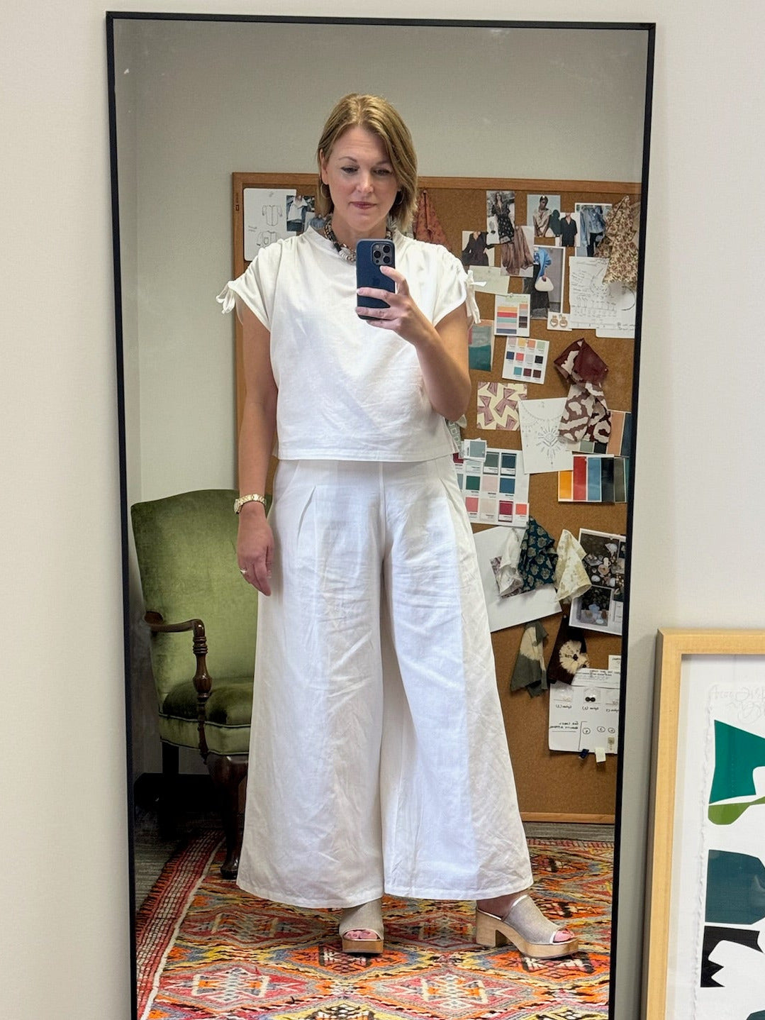 STYLE TIP: The Hayley Linen Trousers will be a closet staple in your Spring and Summer wardrobe! The pleating detail creates a sharp and finished look while the wide leg creates flow and movement while wearing. These pants pair back with many of our blouses and tops but we especially love them with the Cam Linen Top for a polished set! Wear with a sandal while on vacation for an effortless beach look or with a wedge to dinner to elevate the relaxed nature of the style!