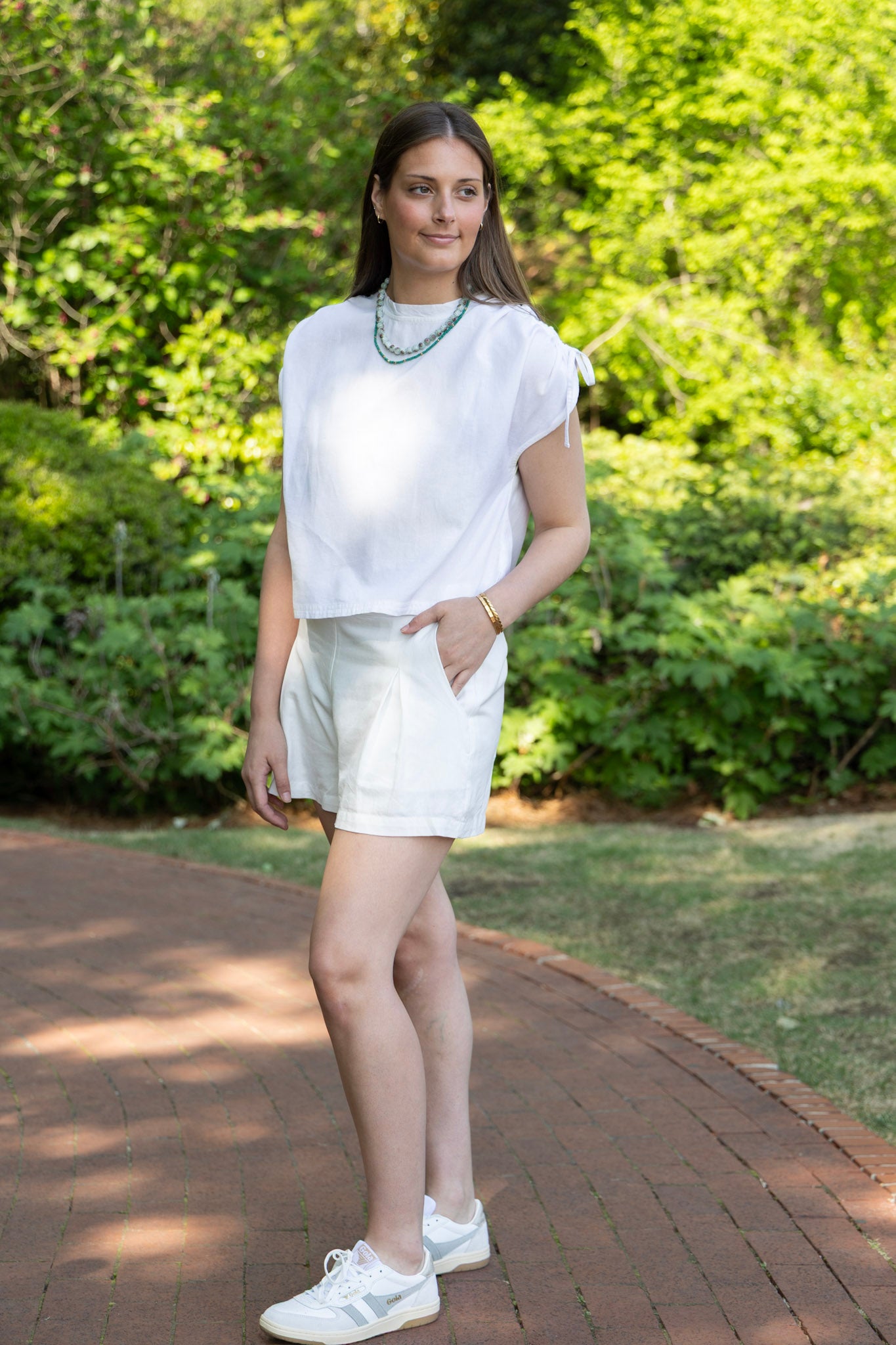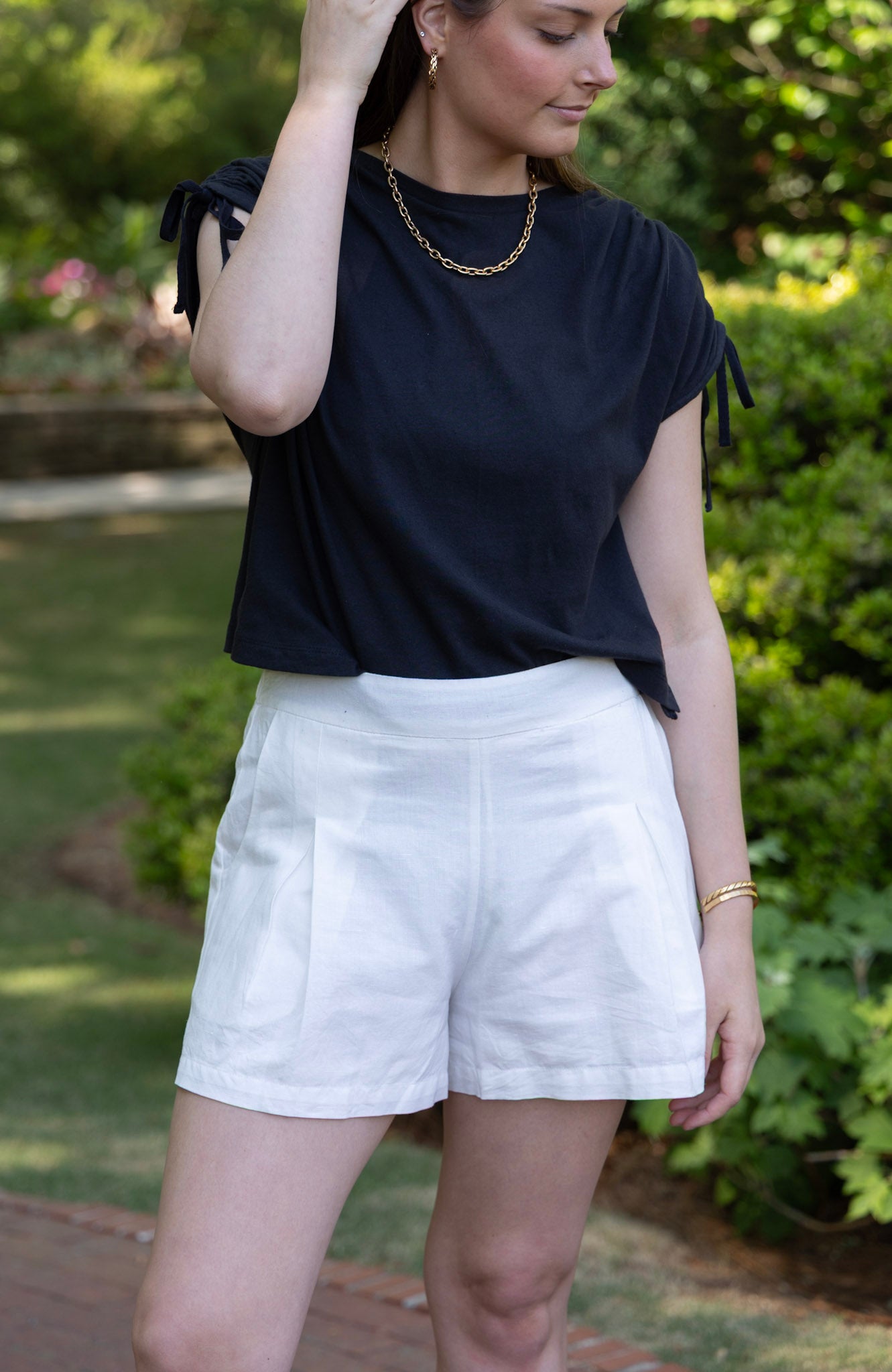 RESORT WEAR :: Hayley Linen Shorts in White by ExVoto