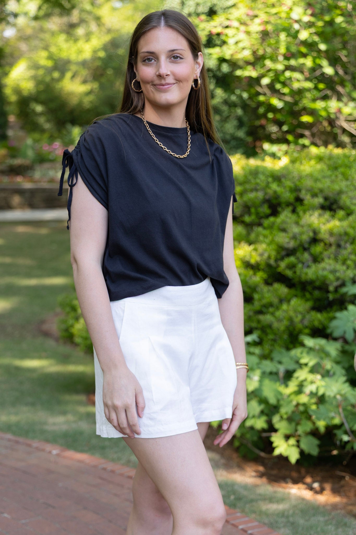 STYLE TIP: Go ahead and give your style a boost with the Hayley Linen Short! These elevated casual shorts have a perfect fit thanks to the elastic back and side zip, with a 3" inseam and 12" high rise plus front pleats for a flattering touch.