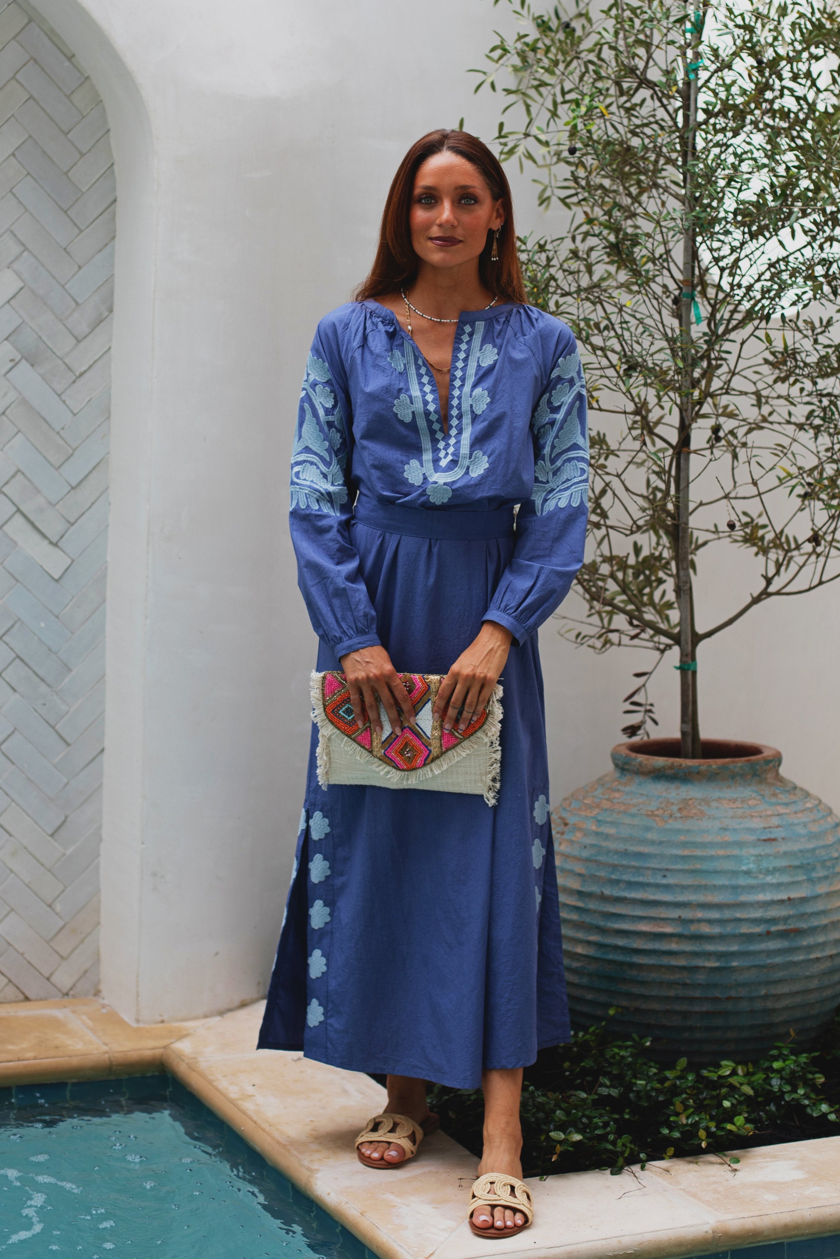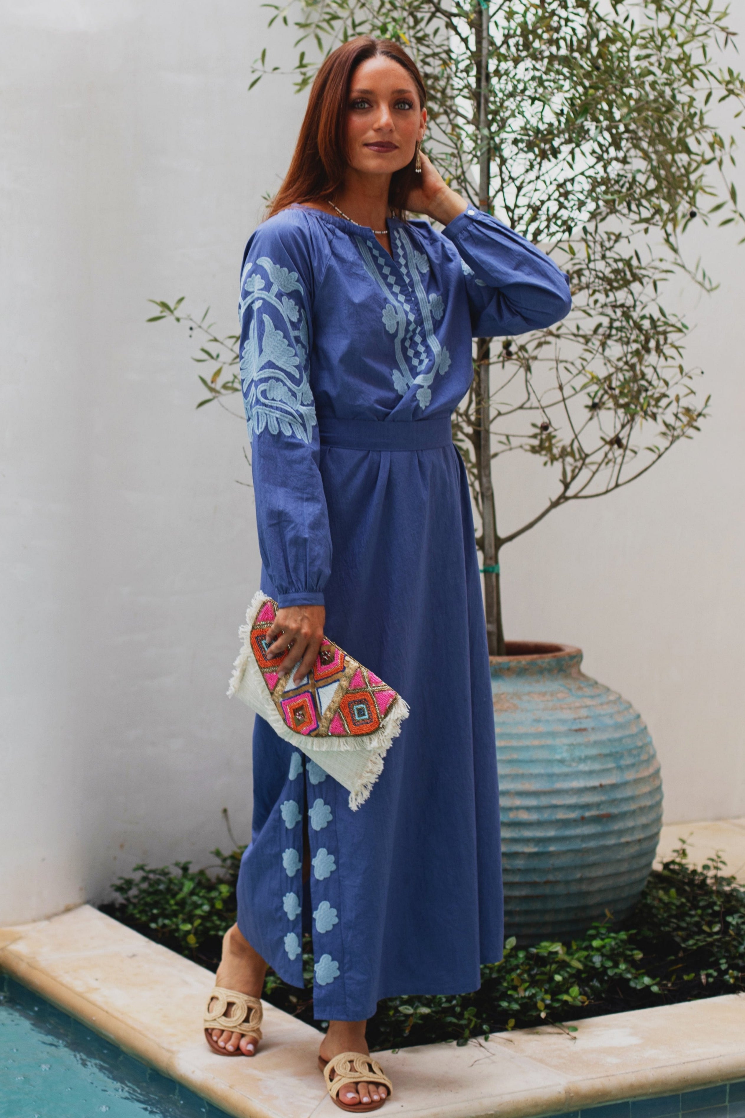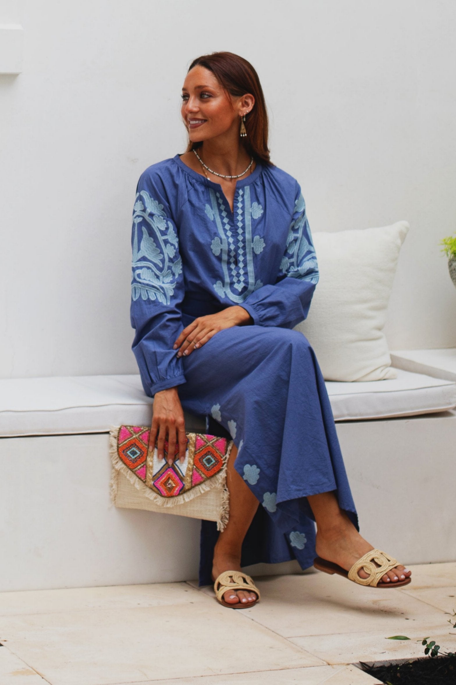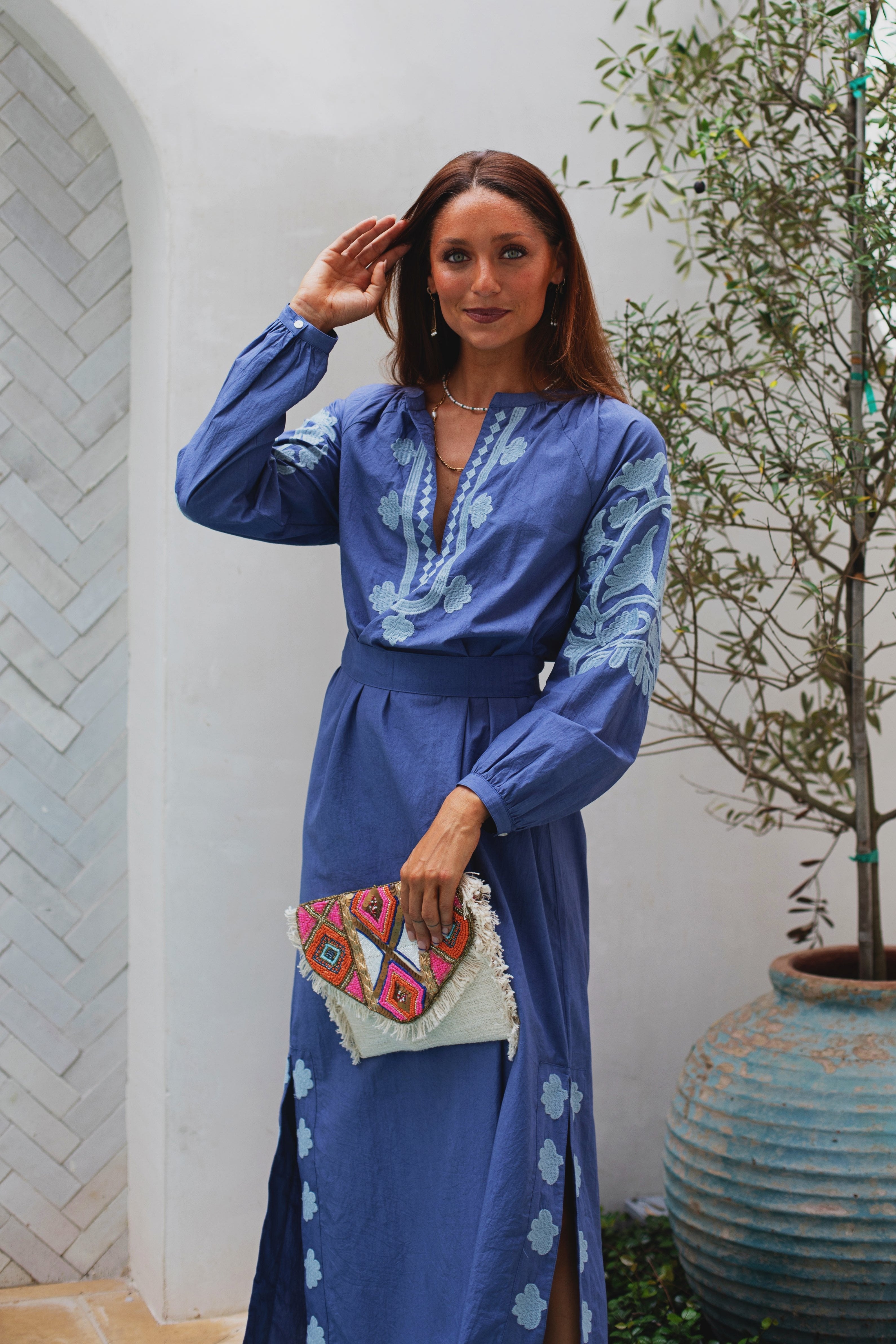 RESORT WEAR :: Jules Maxi Caftan with Embroidery in Marlin by ExVoto