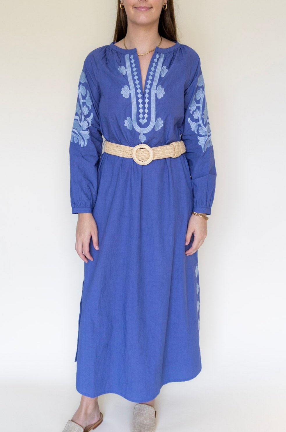 STYLE TIP: The Jules Caftan is made with crisp cotton poplin and detailed with intricate embroidery for a stylish yet comfortable look. The removable sash belt and long sleeves offer a customizable fit, while the side slits make walking easy. Complete the look with your favorite wedge or sandal and jewelry stack!