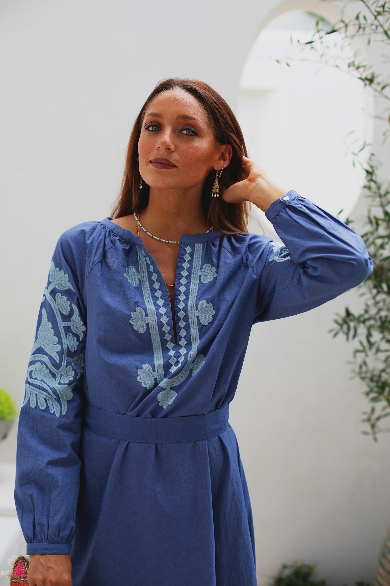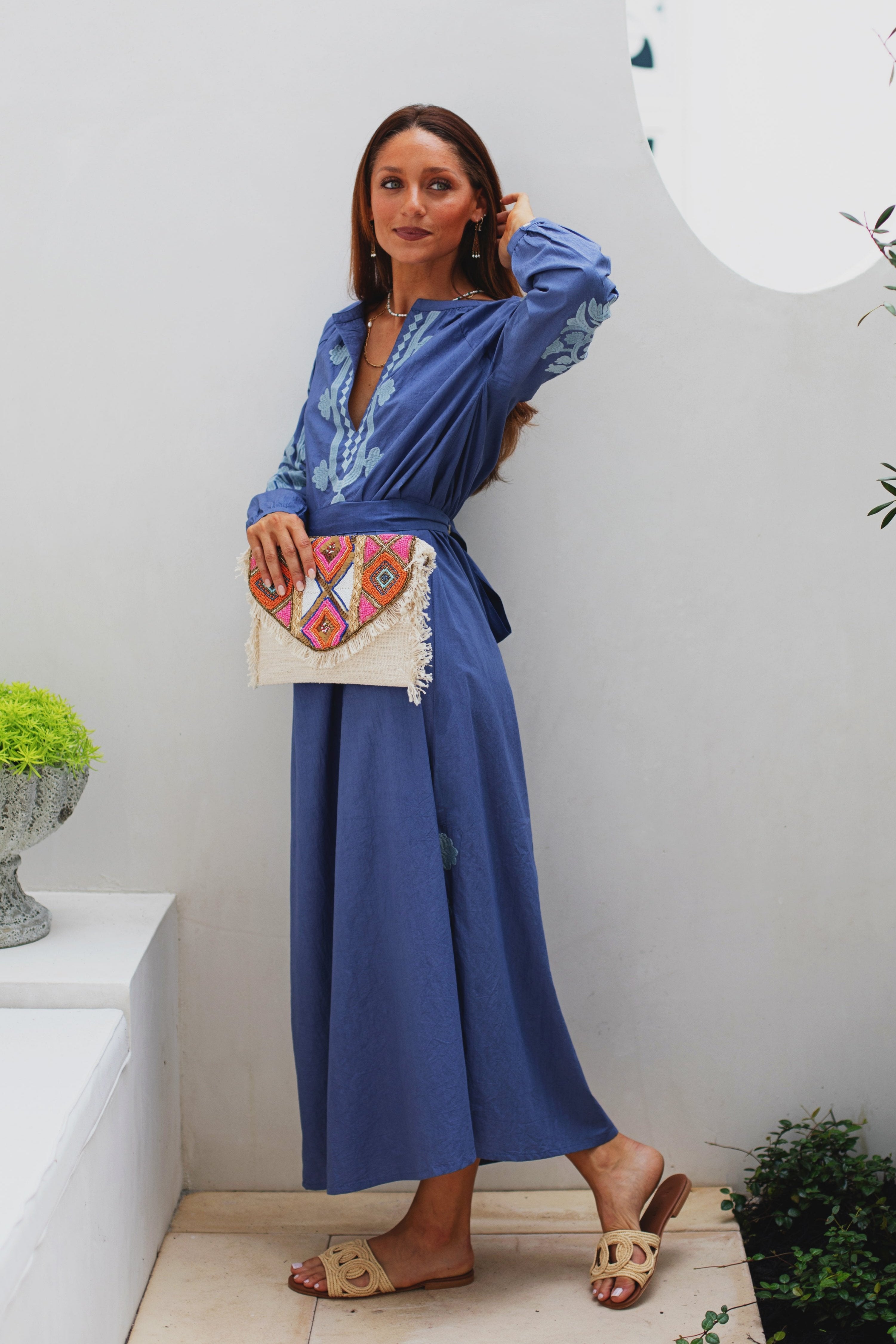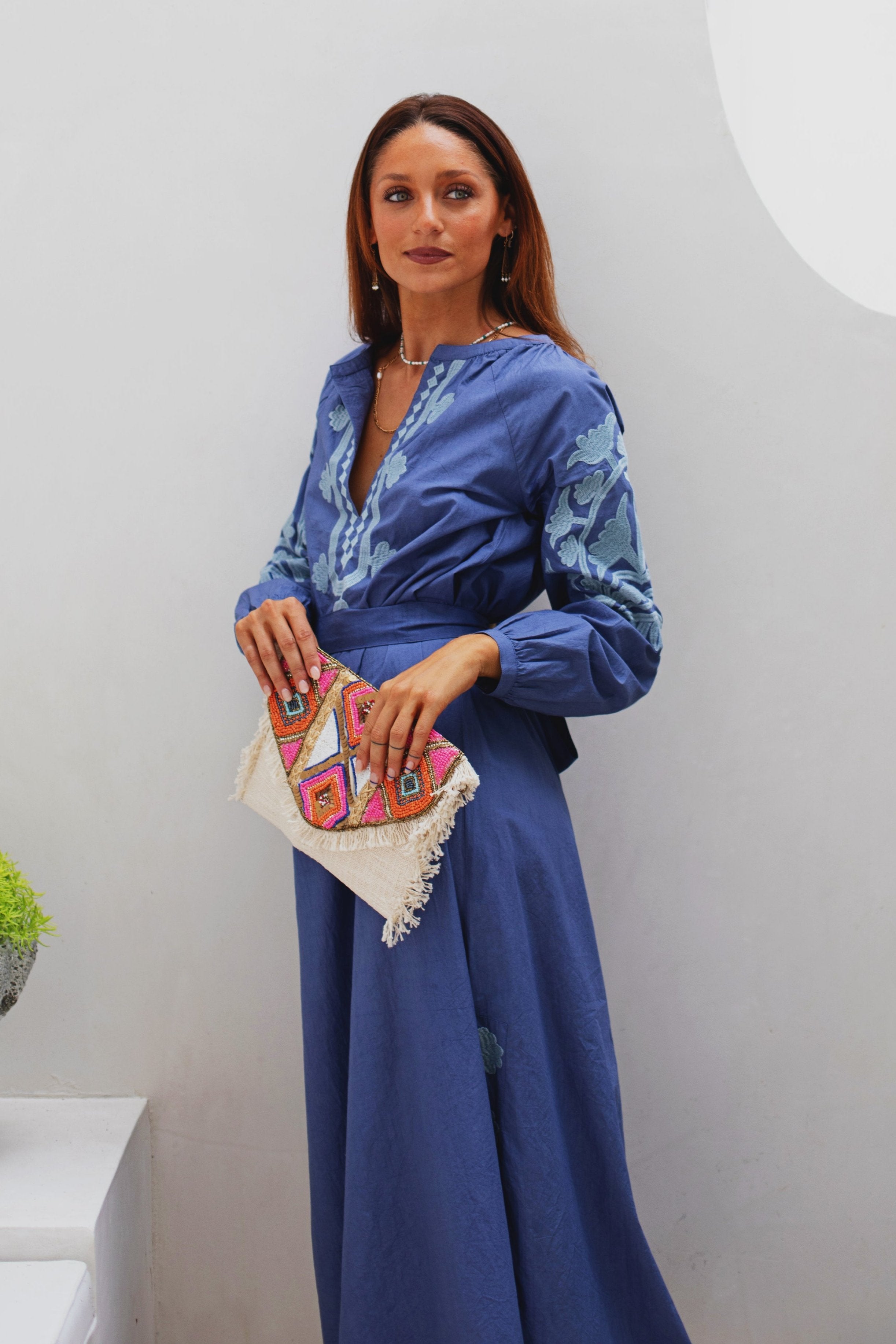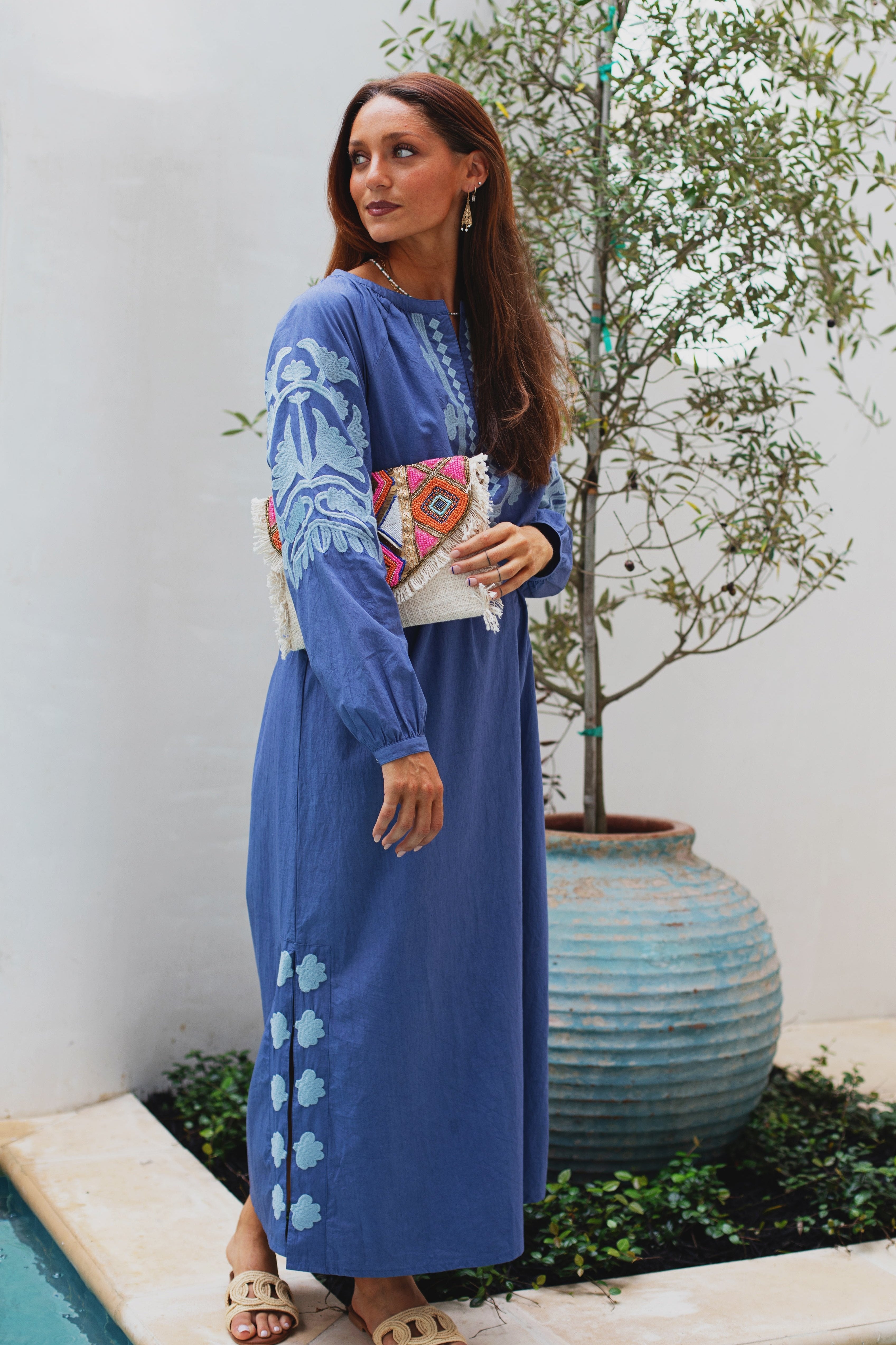 RESORT WEAR :: Jules Maxi Caftan with Embroidery in Marlin by ExVoto