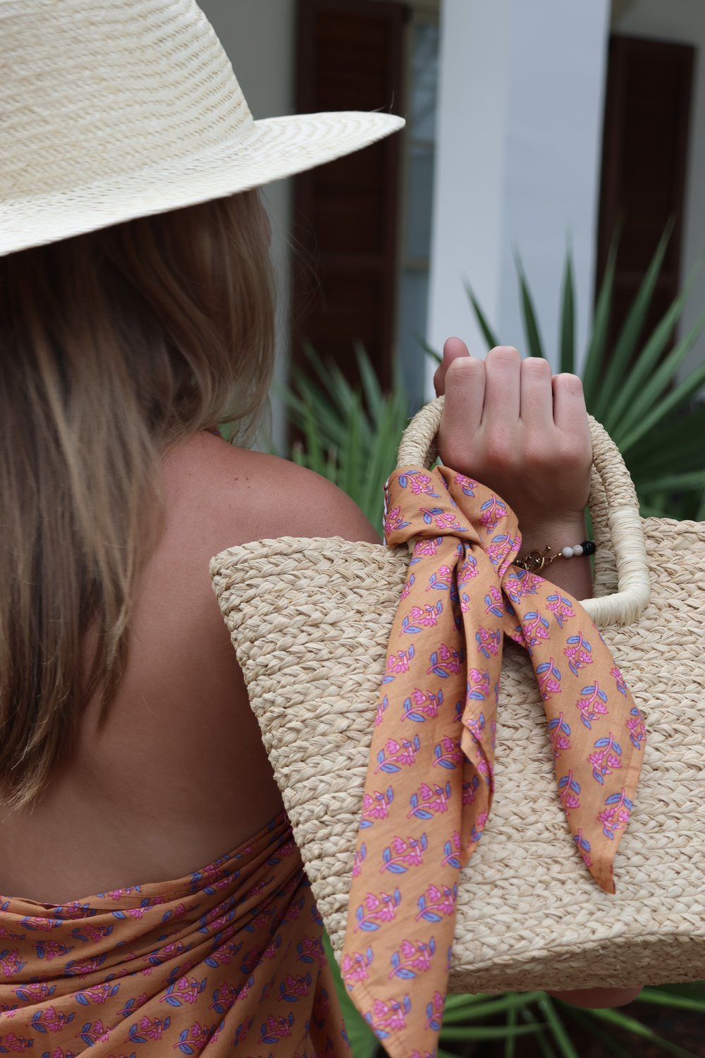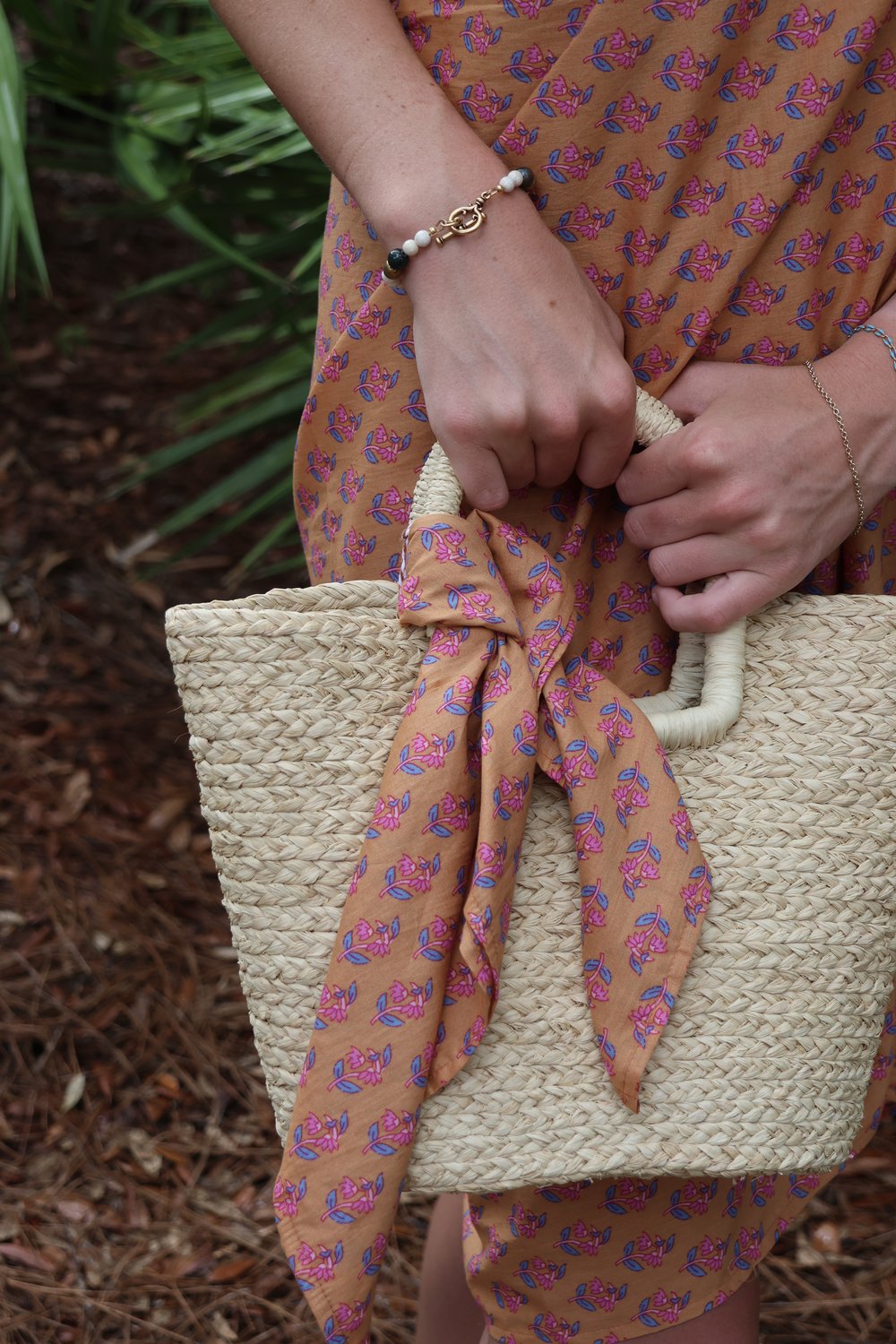 RESORT WEAR :: Scout Raffia Tote with Terracotta Floral Scarf by ExVoto