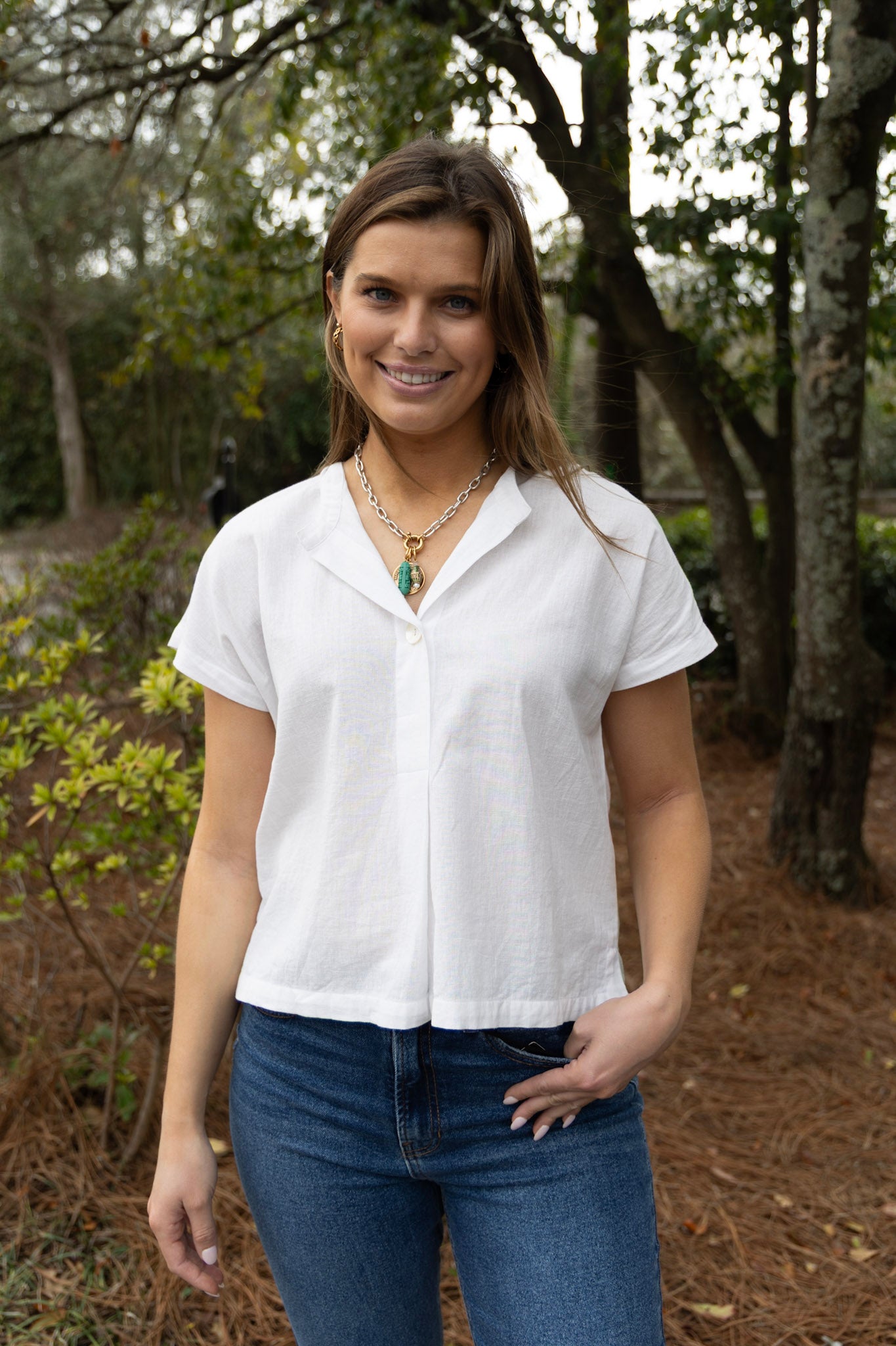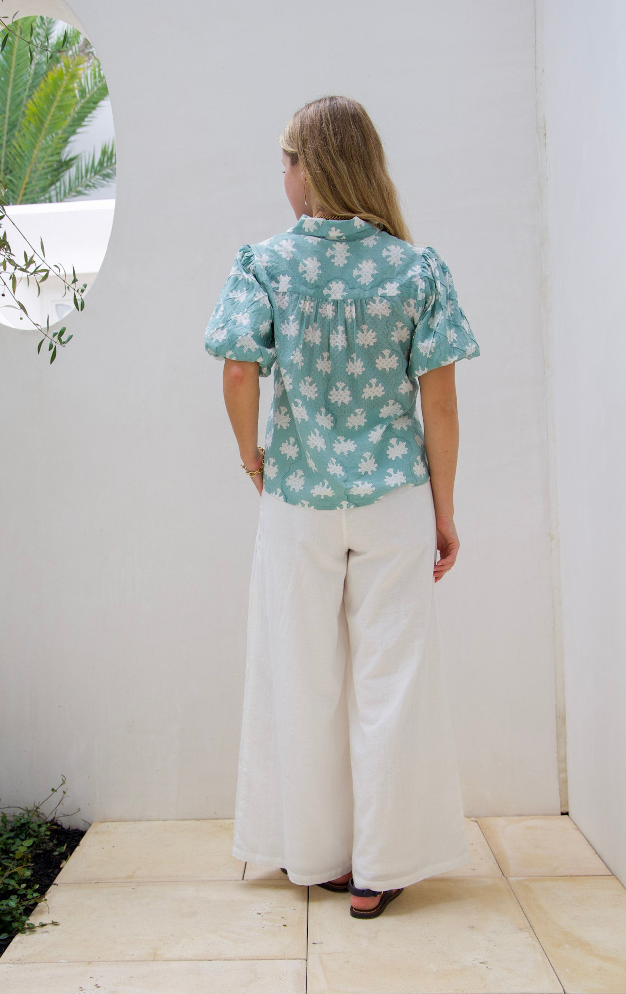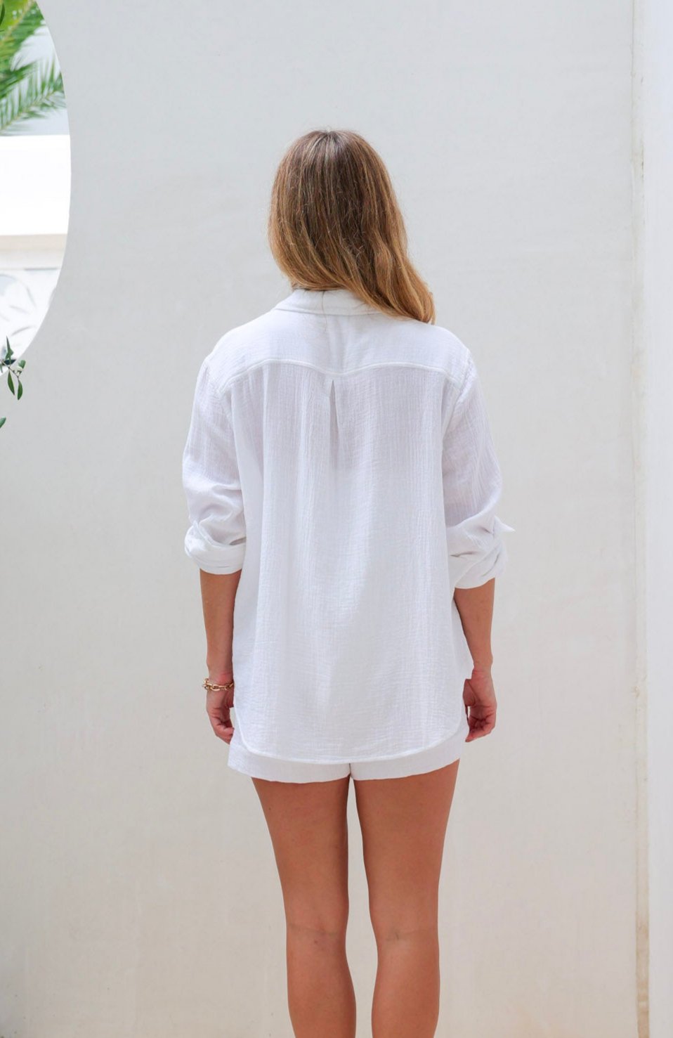 RESORT WEAR :: Sage Button Front Shirt in White by ExVoto