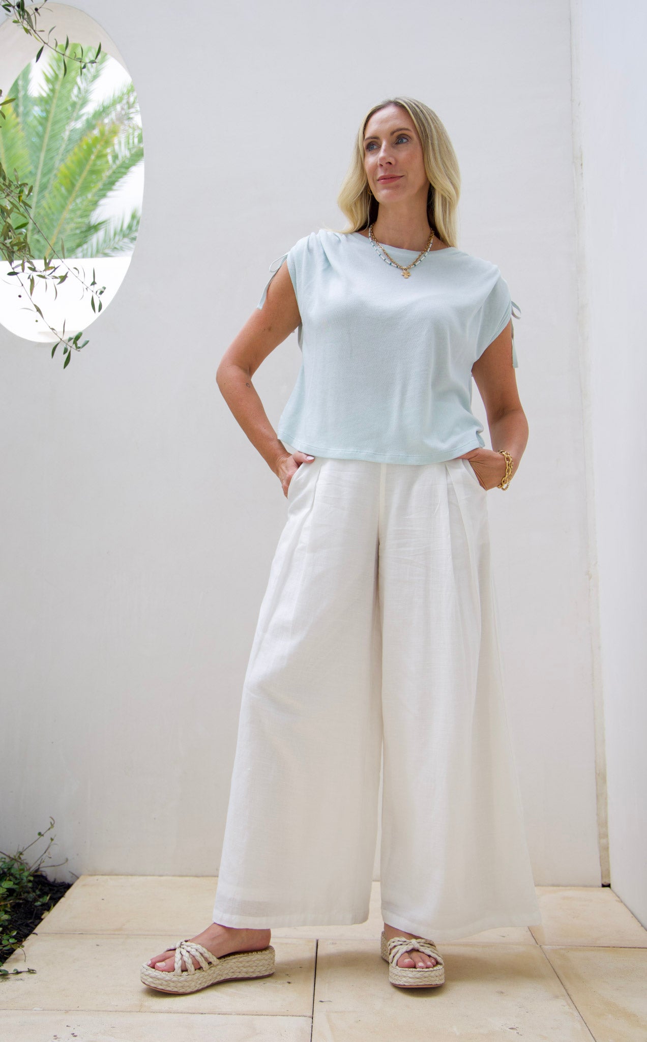 RESORT WEAR :: Hayley Linen Pants in White by ExVoto