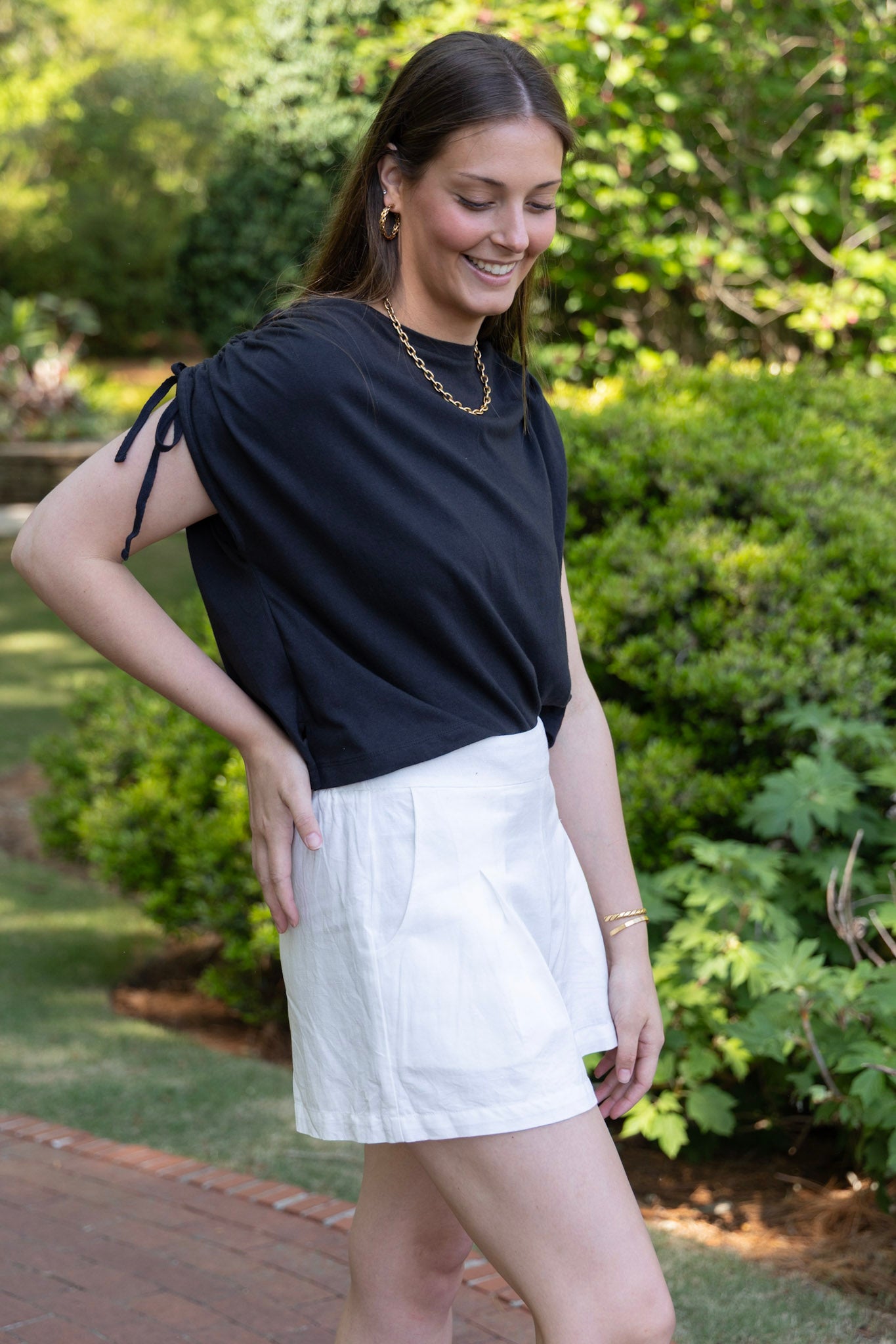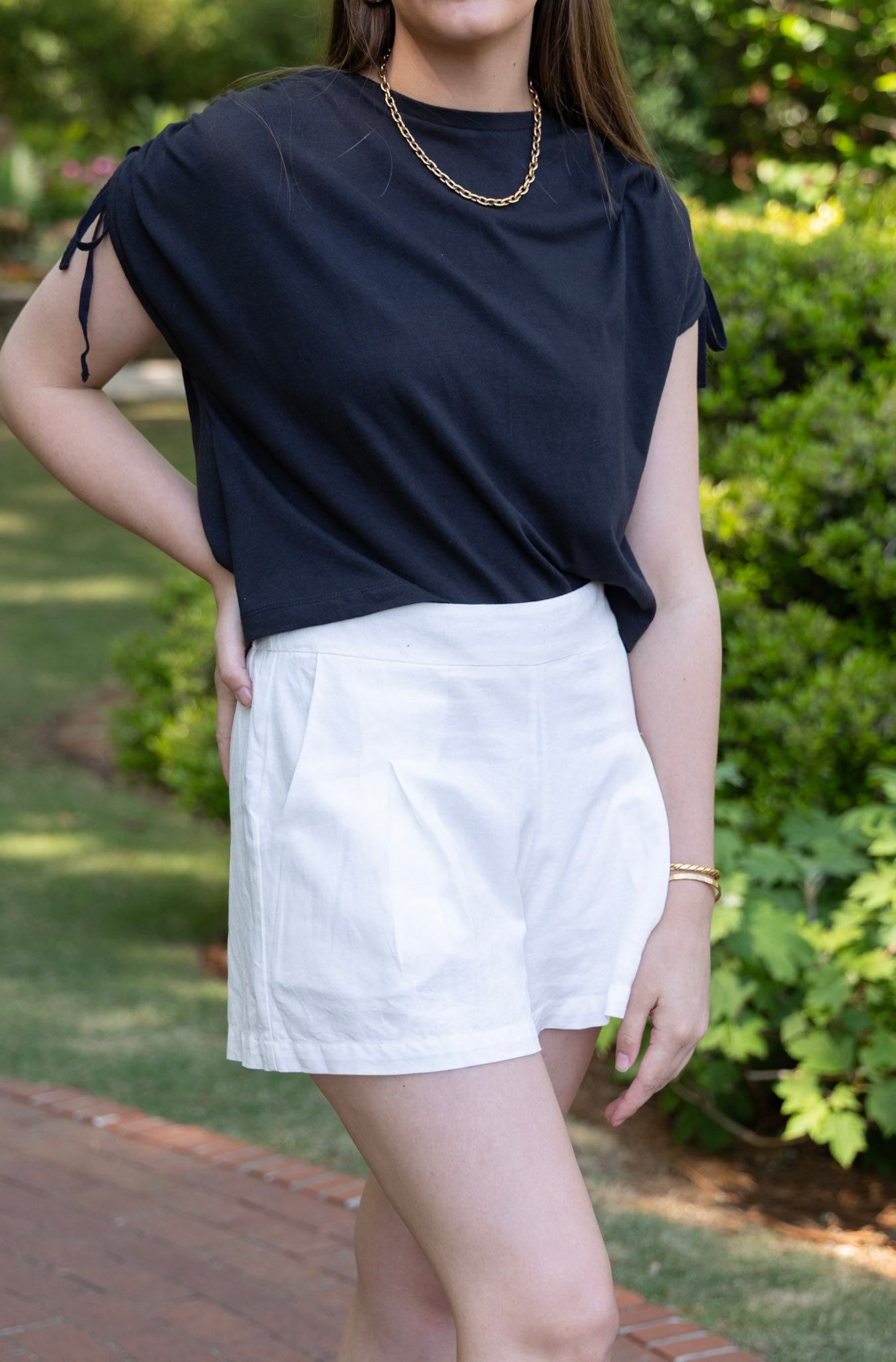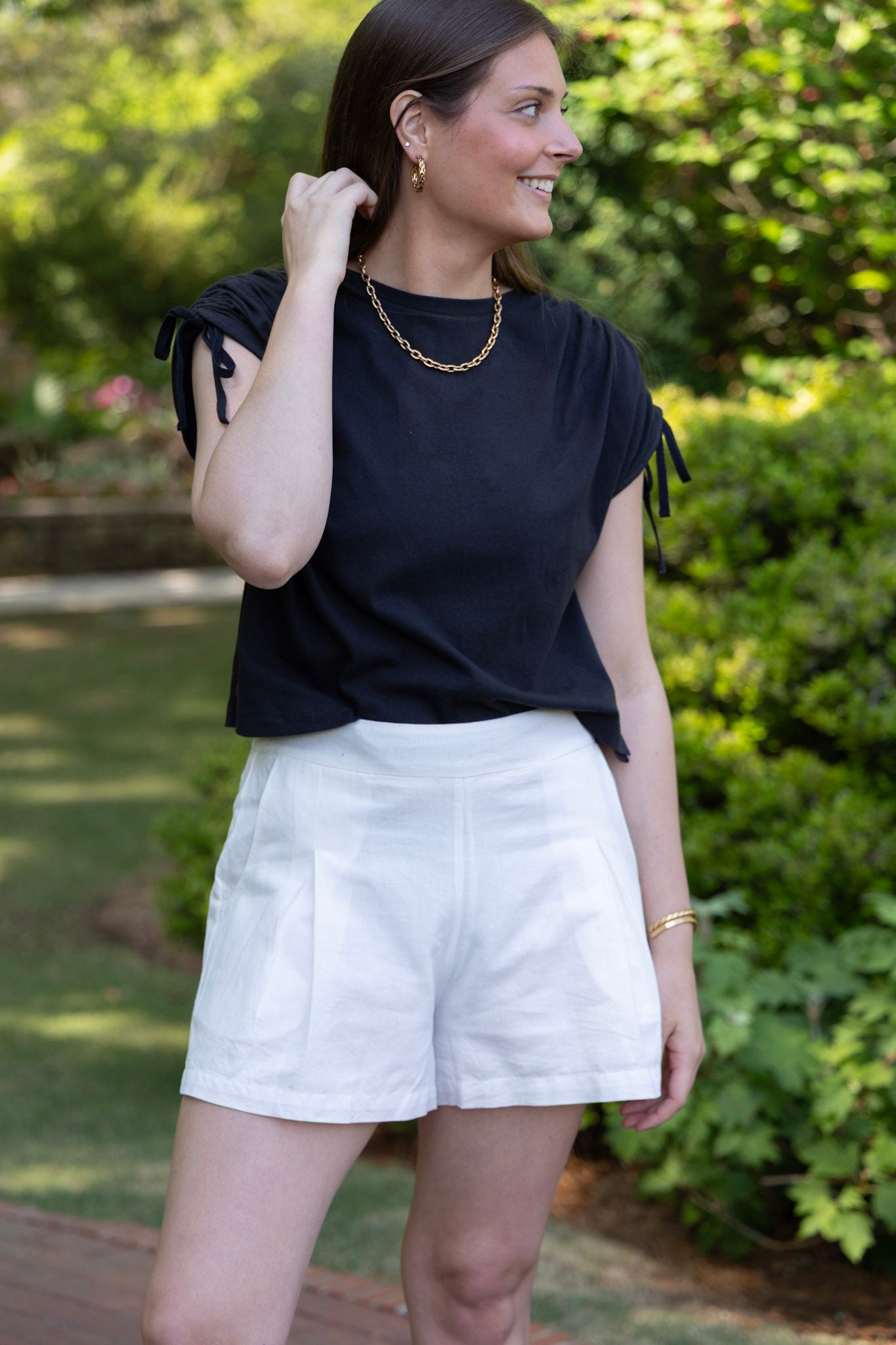RESORT WEAR :: Hayley Linen Shorts in White by ExVoto