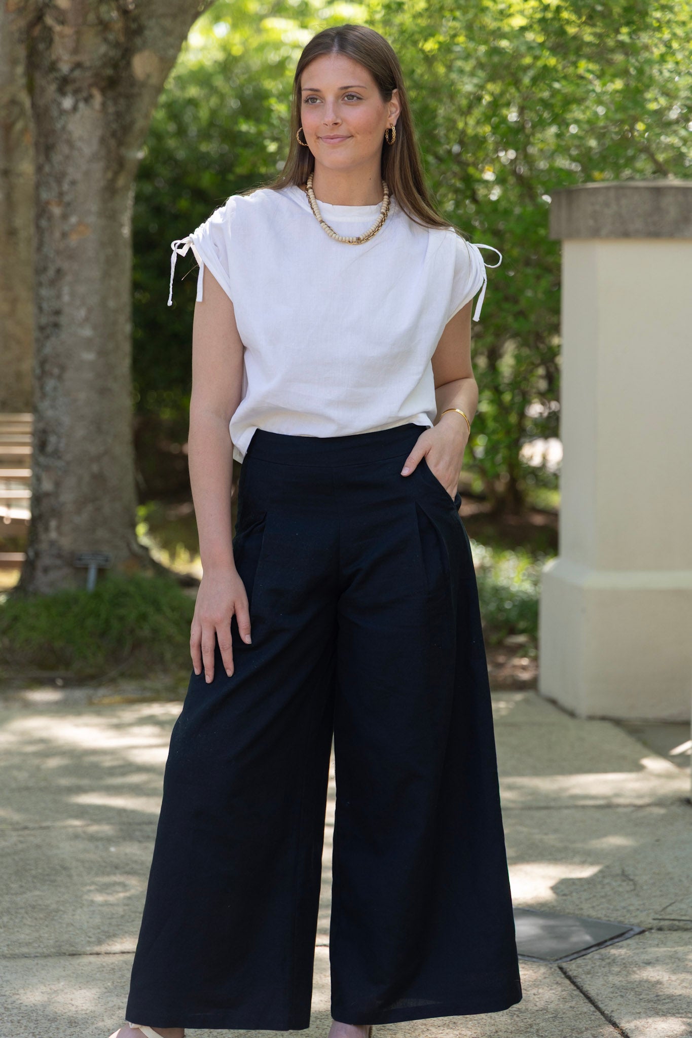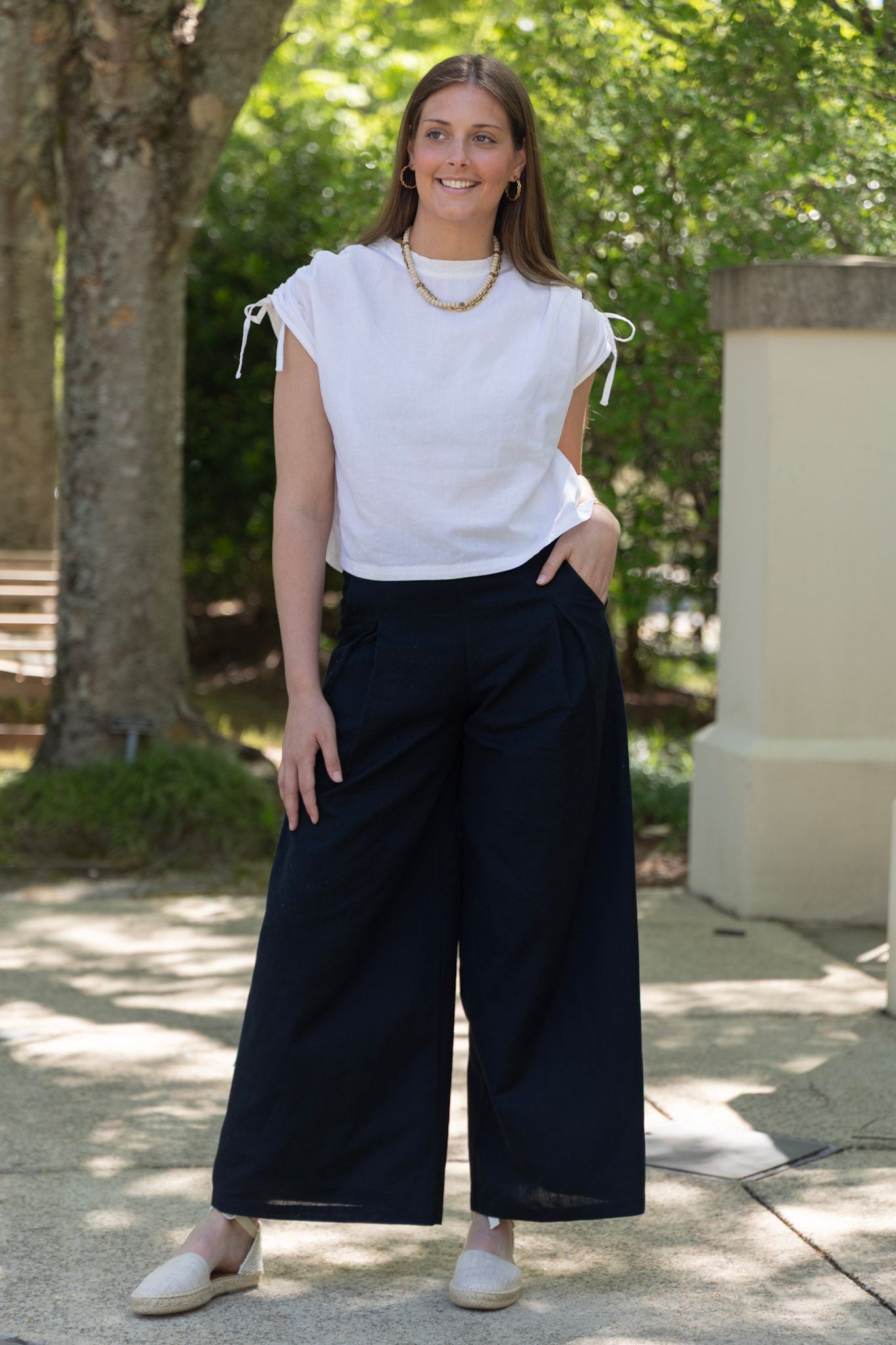 RESORT WEAR :: Hayley Linen Pants in Black by ExVoto