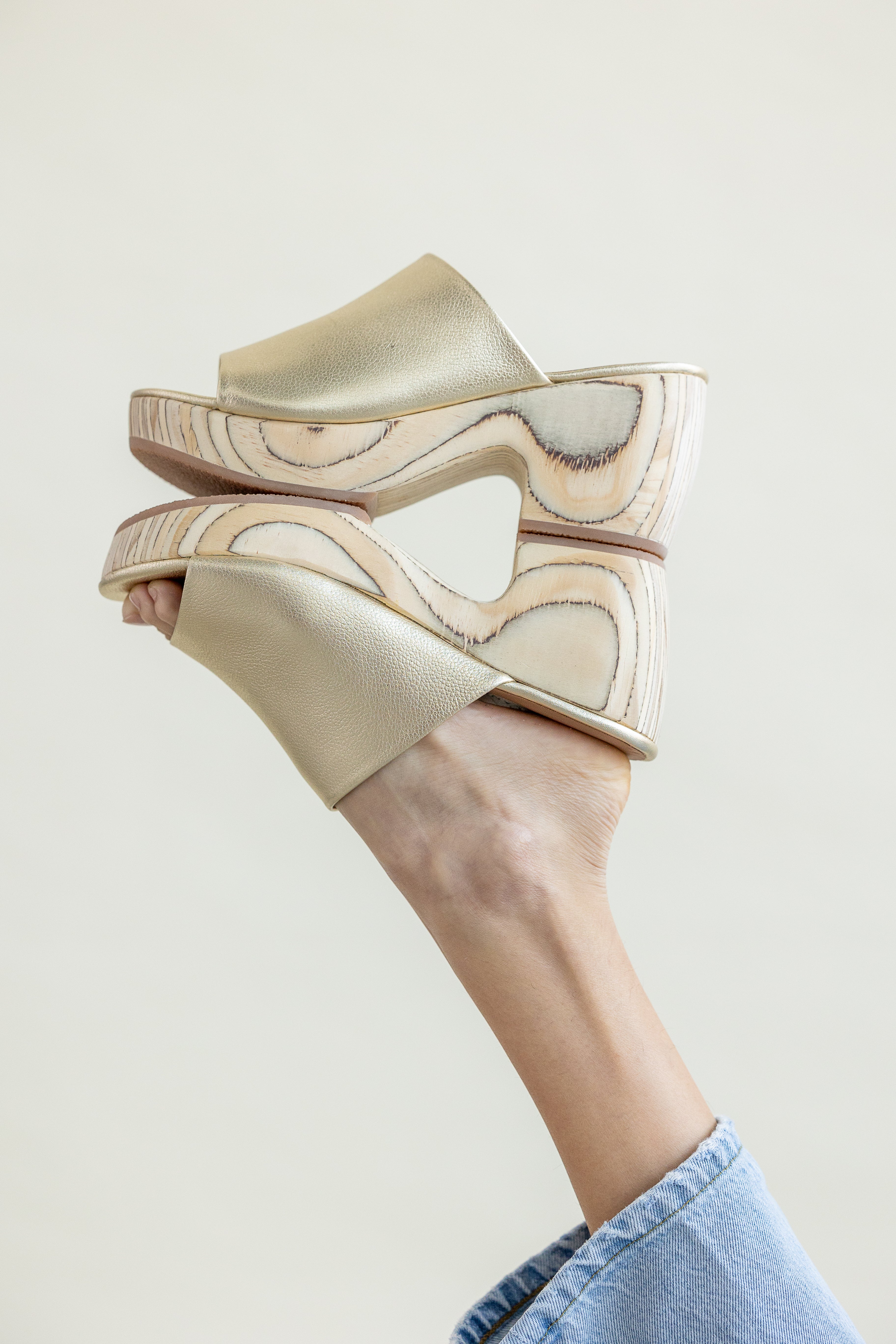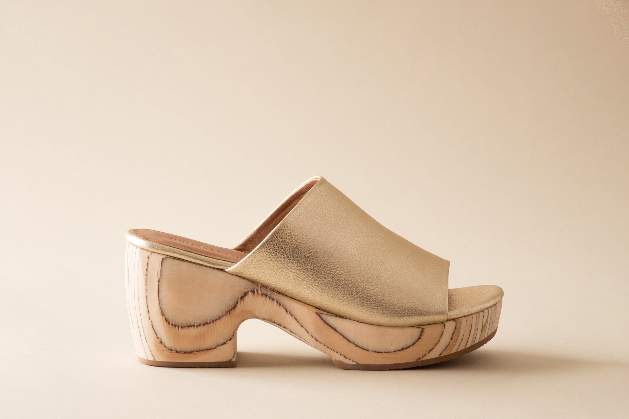 Elevate your everyday style with the Katlyn Clog in Gold Leather by Huma Blanco. Featuring a sturdy solid wood platform that delivers both comfort and confidence, this standout shoe pairs luxurious gold leather with timeless design. The rich metallic finish complements any wardrobe, from casual to polished looks.