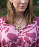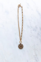 - 18k gold-plated necklace featuring vintage chain, the new Alva pendant, and our exclusive ExVoto Vintage toggle closure at back.