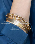 Customize up to three sets of initials in a circle monogram font on our newly designed three-sided ID bracelet. This carefully crafted piece offers both a personalized touch and triple the space for engraving 1, 2, or 3 sets initials of your favorite people.