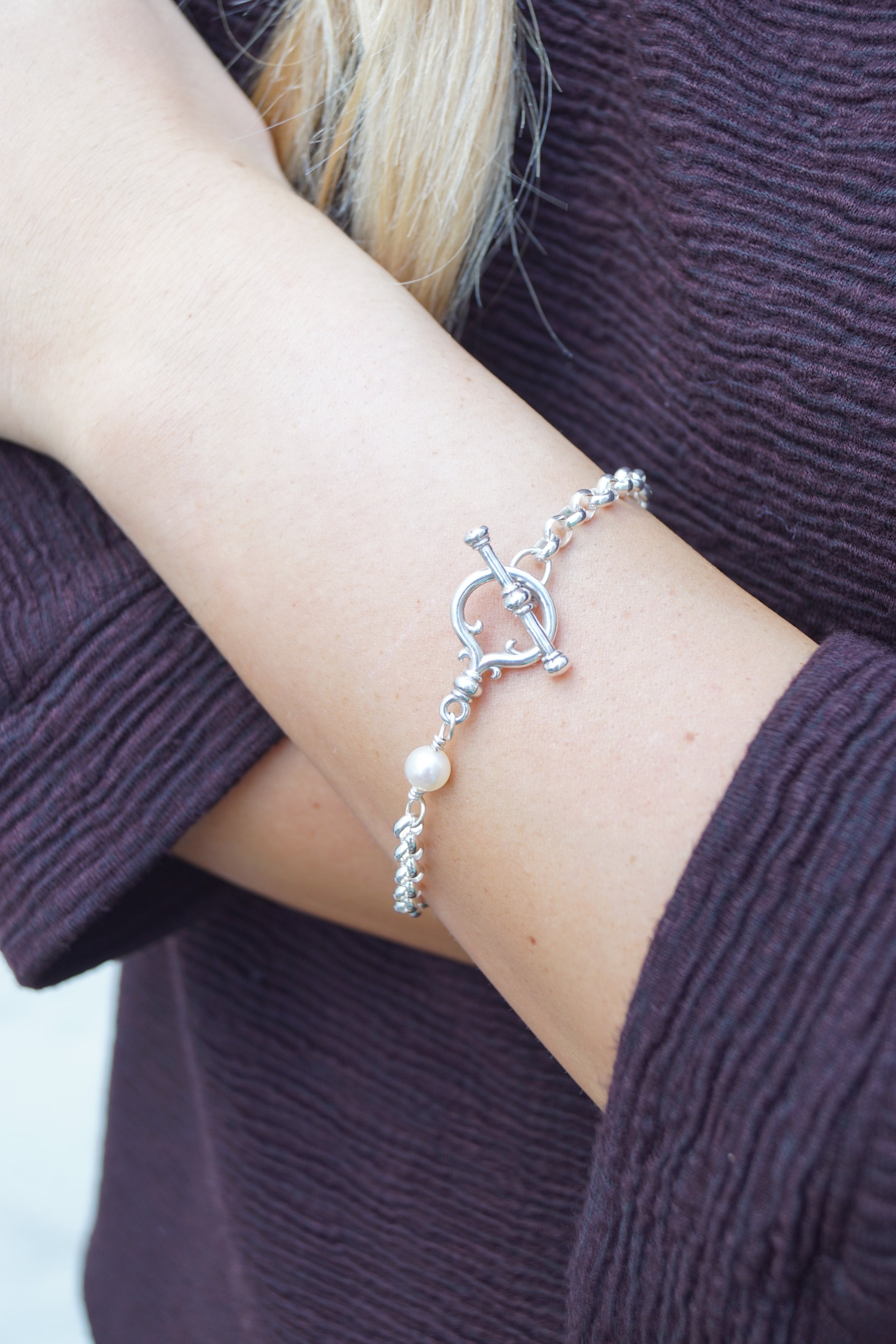 - 8" Classic bracelet in sterling silver features one freshwater pearl