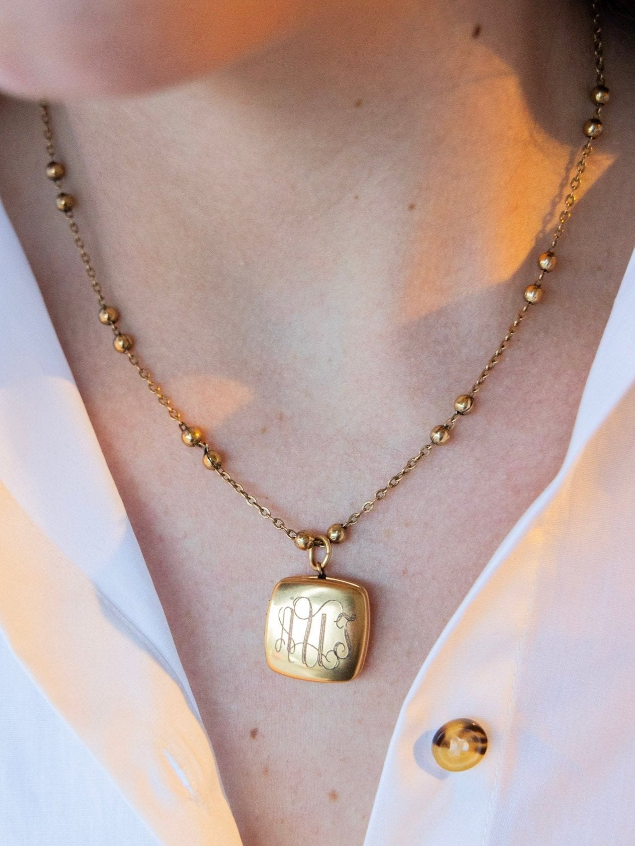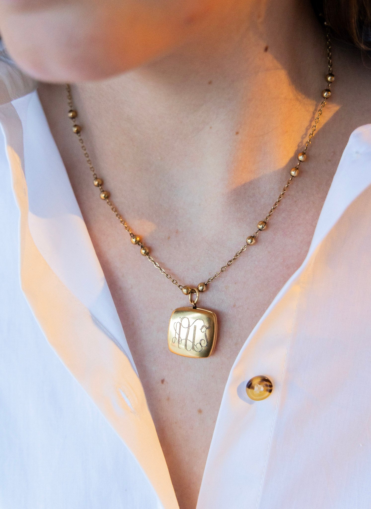 "​I’ve been wearing my monogrammed shield necklace incessantly and gotten many compliments! It’s a strong piece and looks great layered. I also love it’s on trend but feels unique."