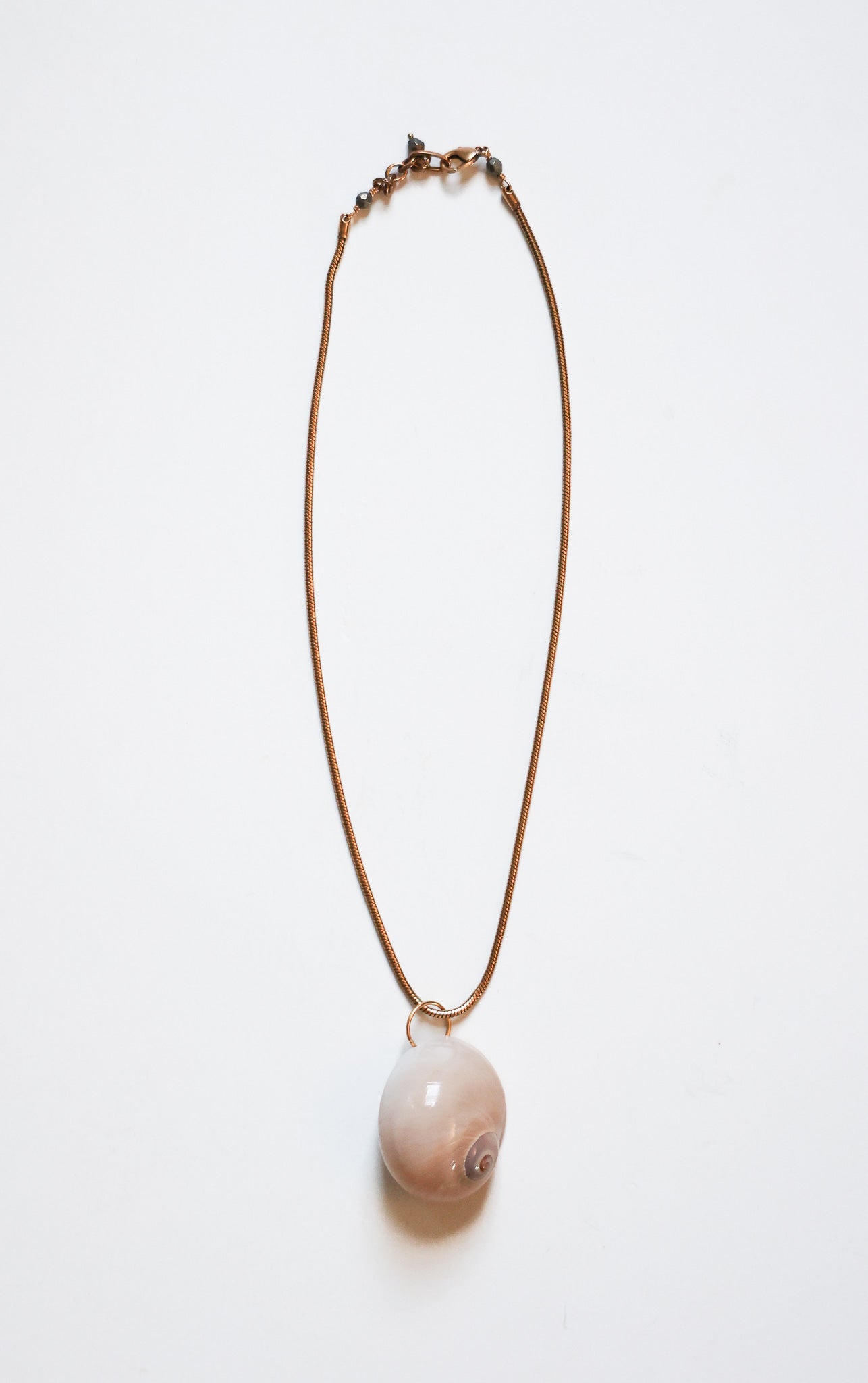 18" Iris Necklace with Shell Charm - Features a shell charm on an 18" chain with a lobster clasp.