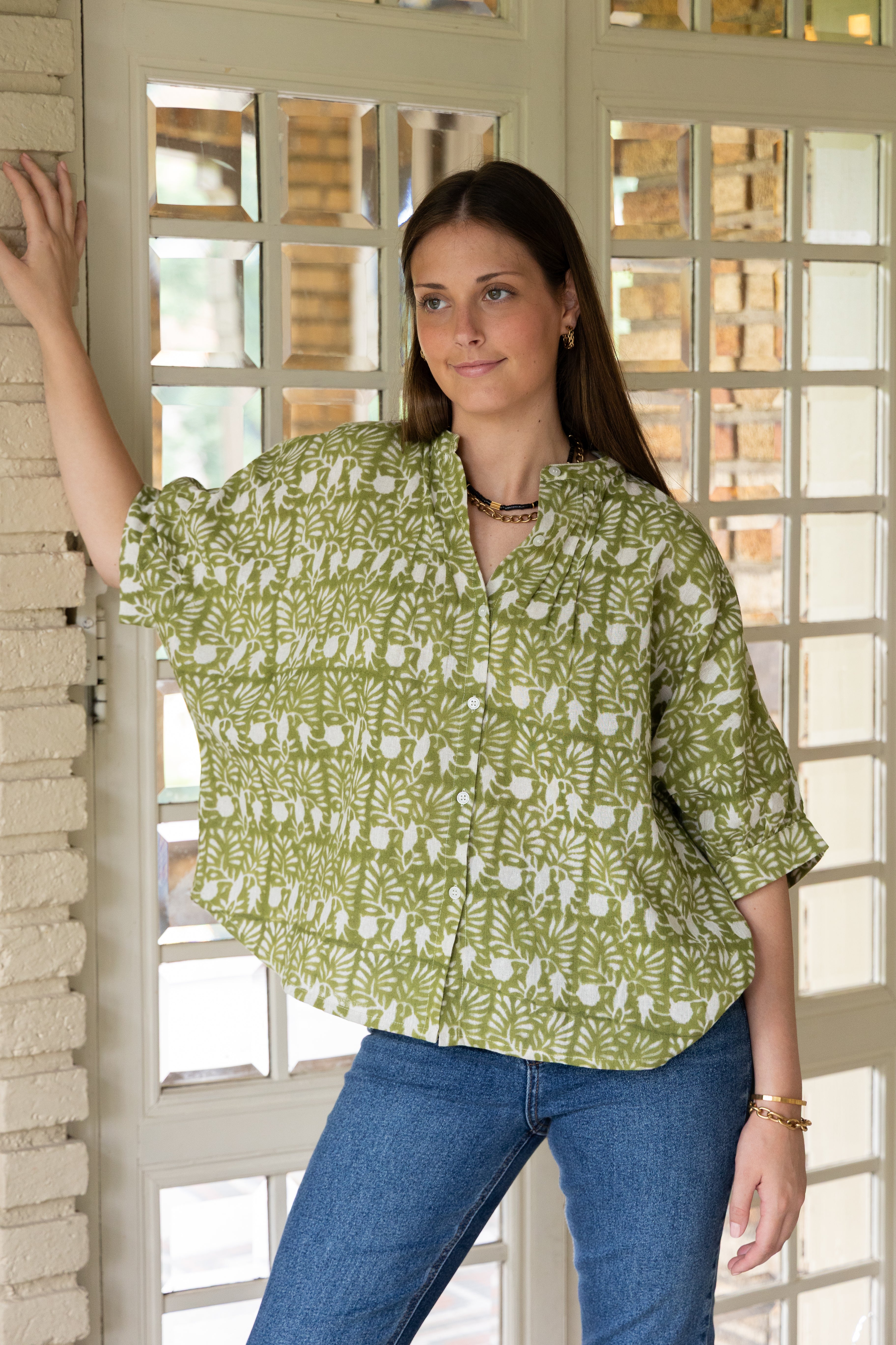 Poppy Blouse in Going Green Blockprint by ExVoto