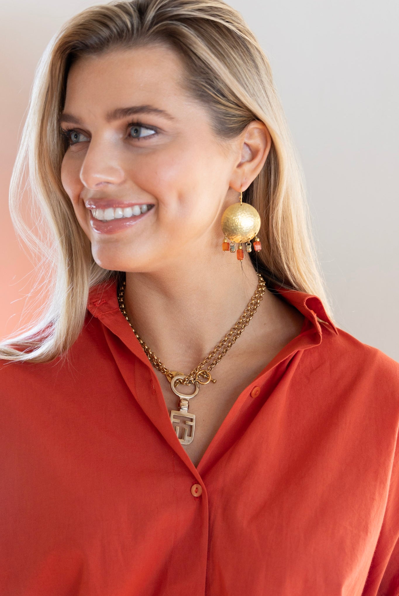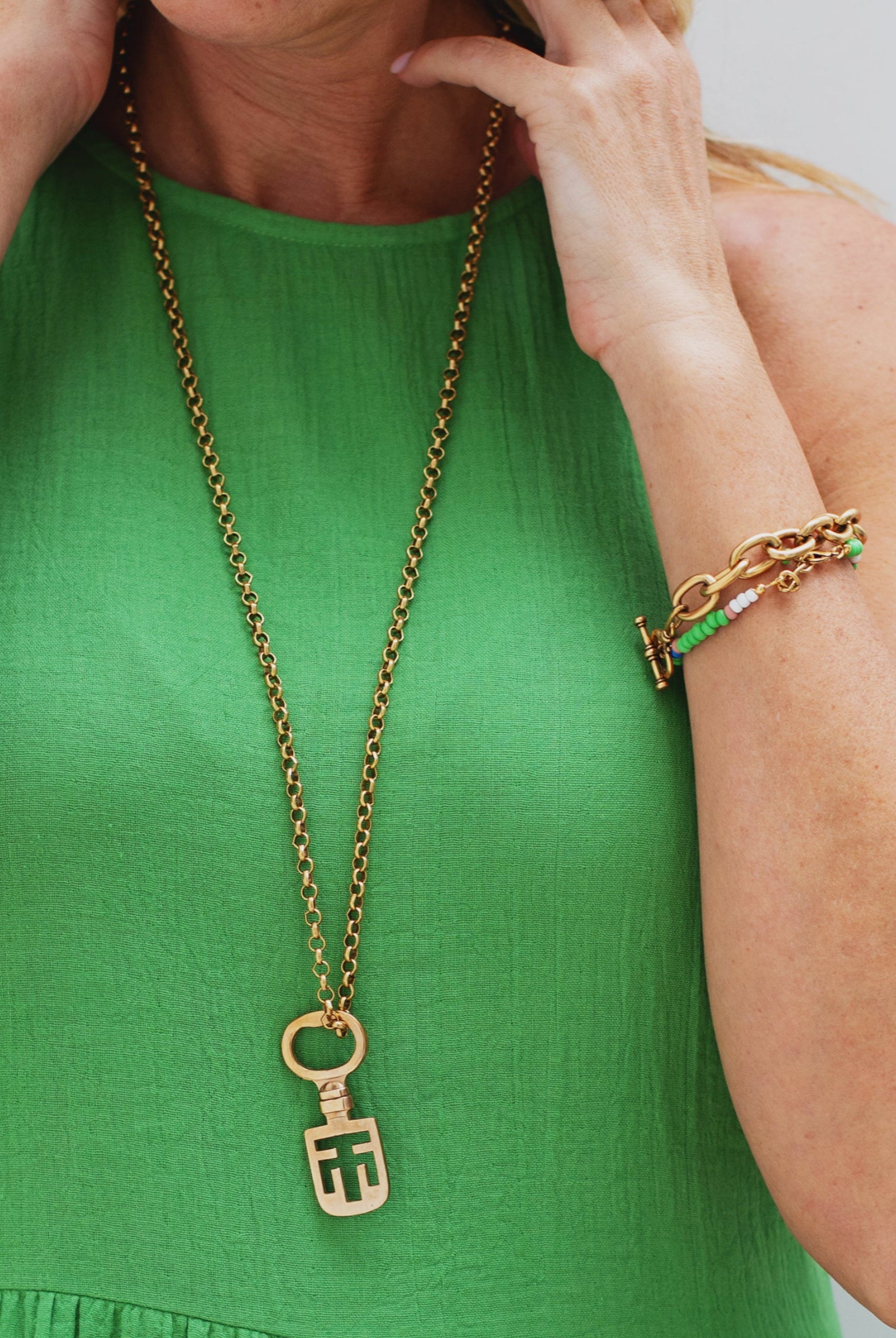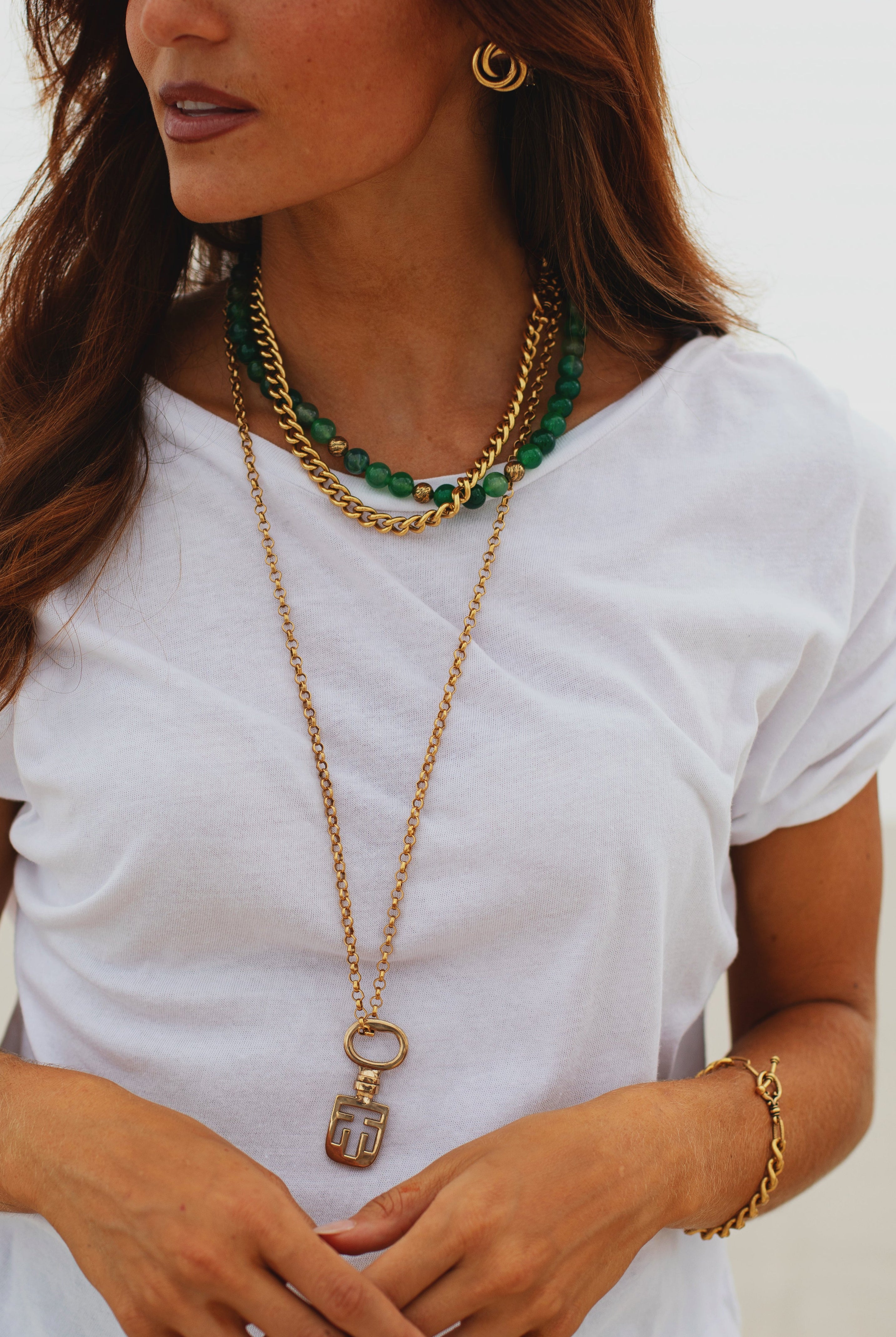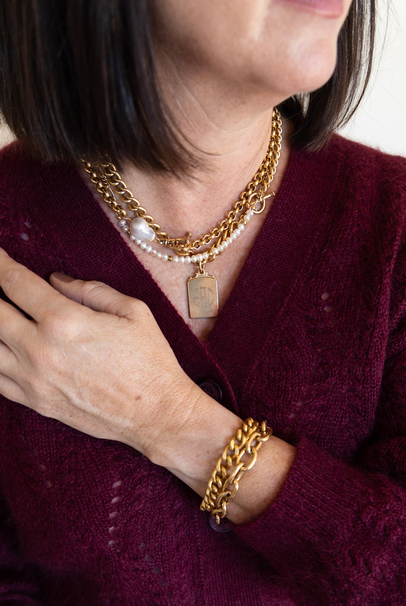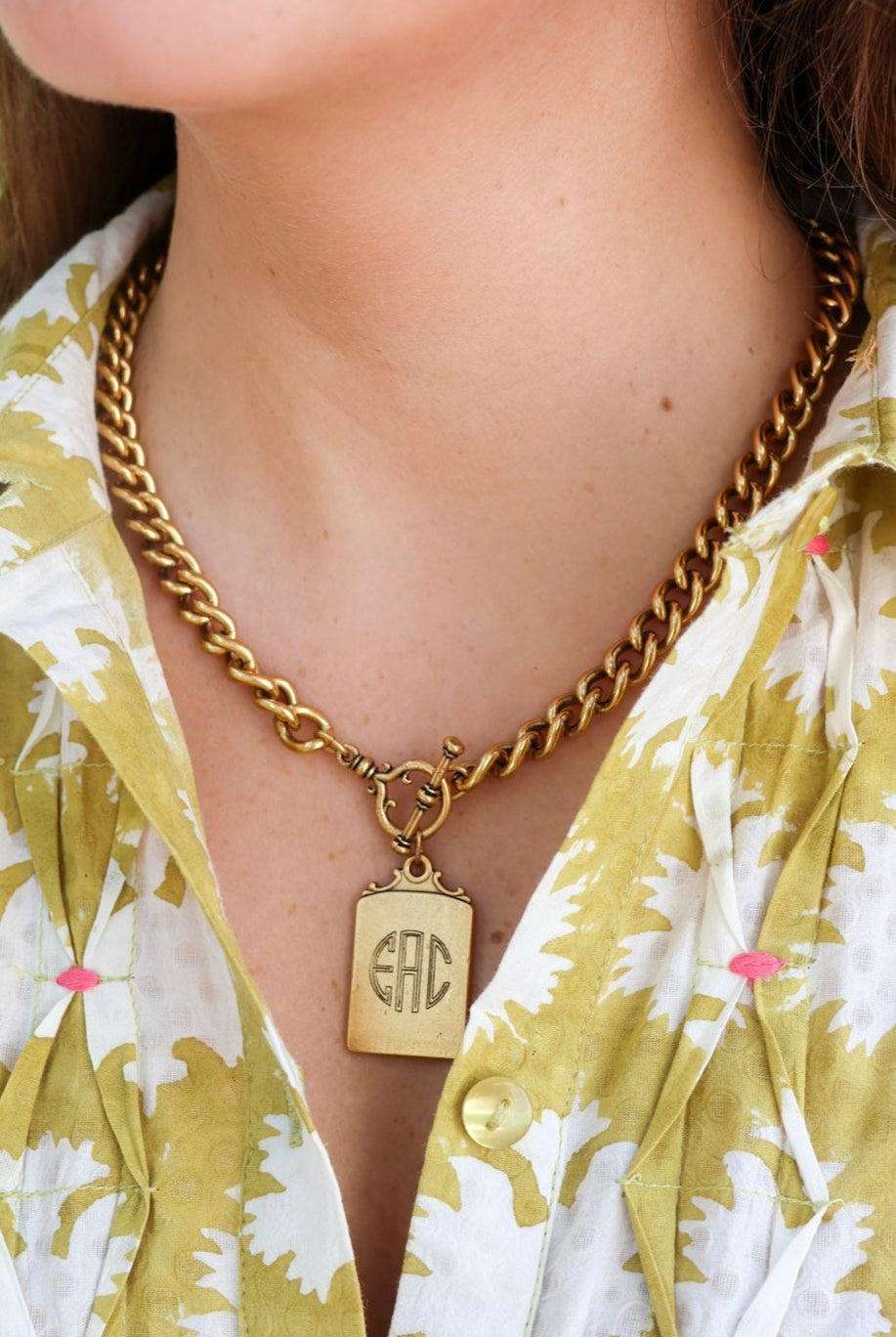 "I’ve been wearing my monogrammed shield necklace incessantly and gotten many compliments! It’s a strong piece and looks great layered. I also love it’s on trend but feels unique."