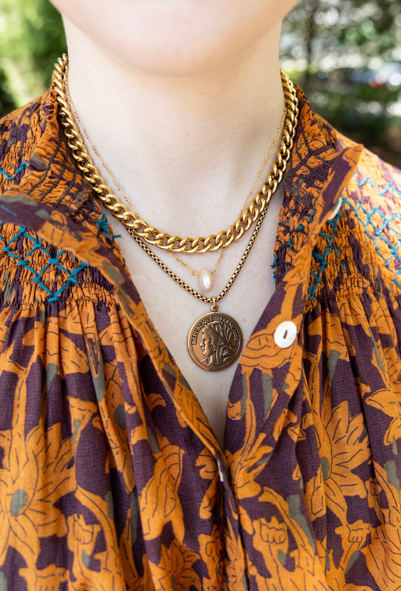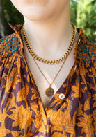 - 18″ gold plated necklace featuring vintage chain and our exclusive ExVoto Vintage toggle closure on the back.