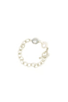 • 8" Classic bracelet in sterling silver featuring two freshwater pearls, gray and white
