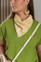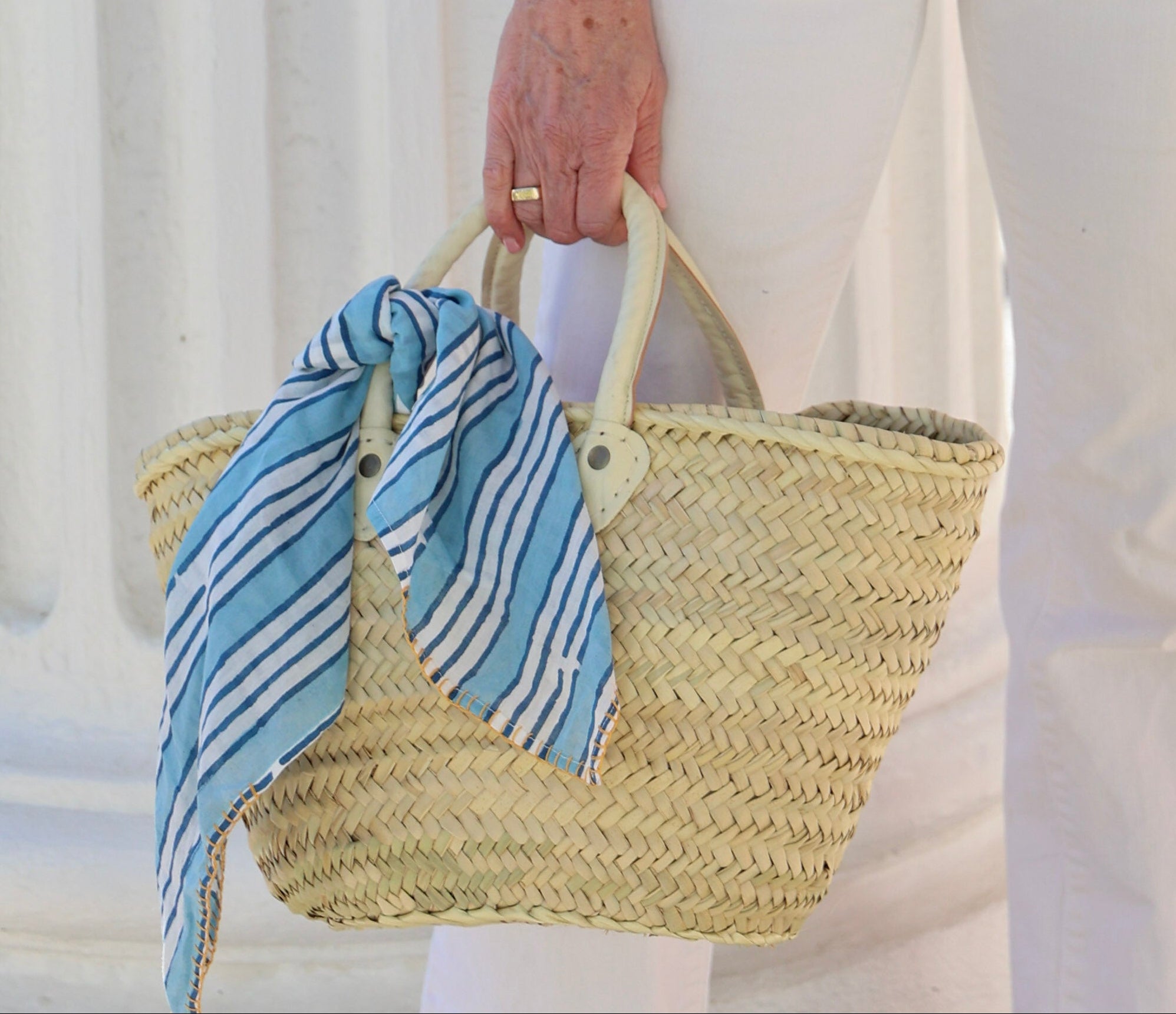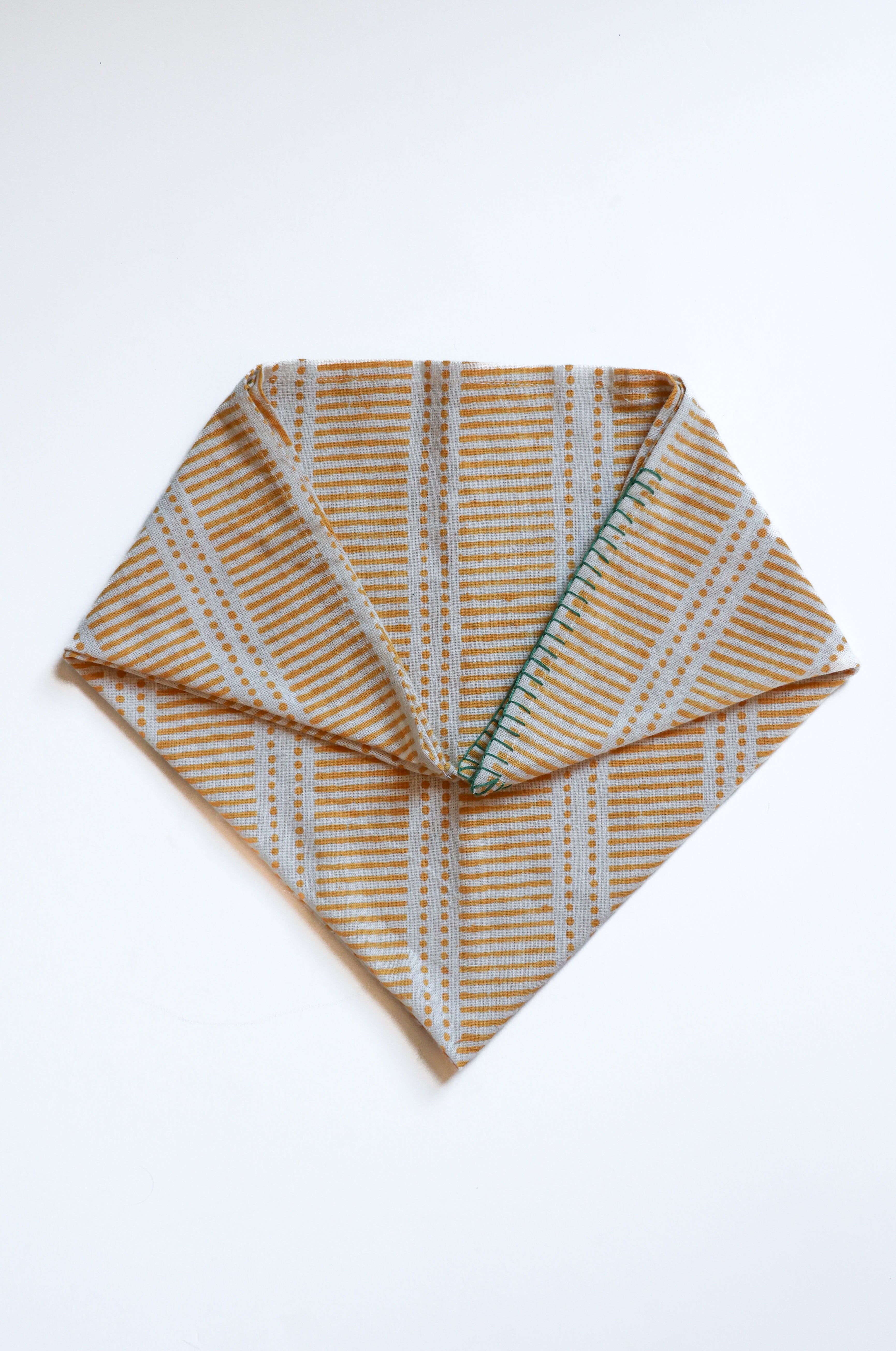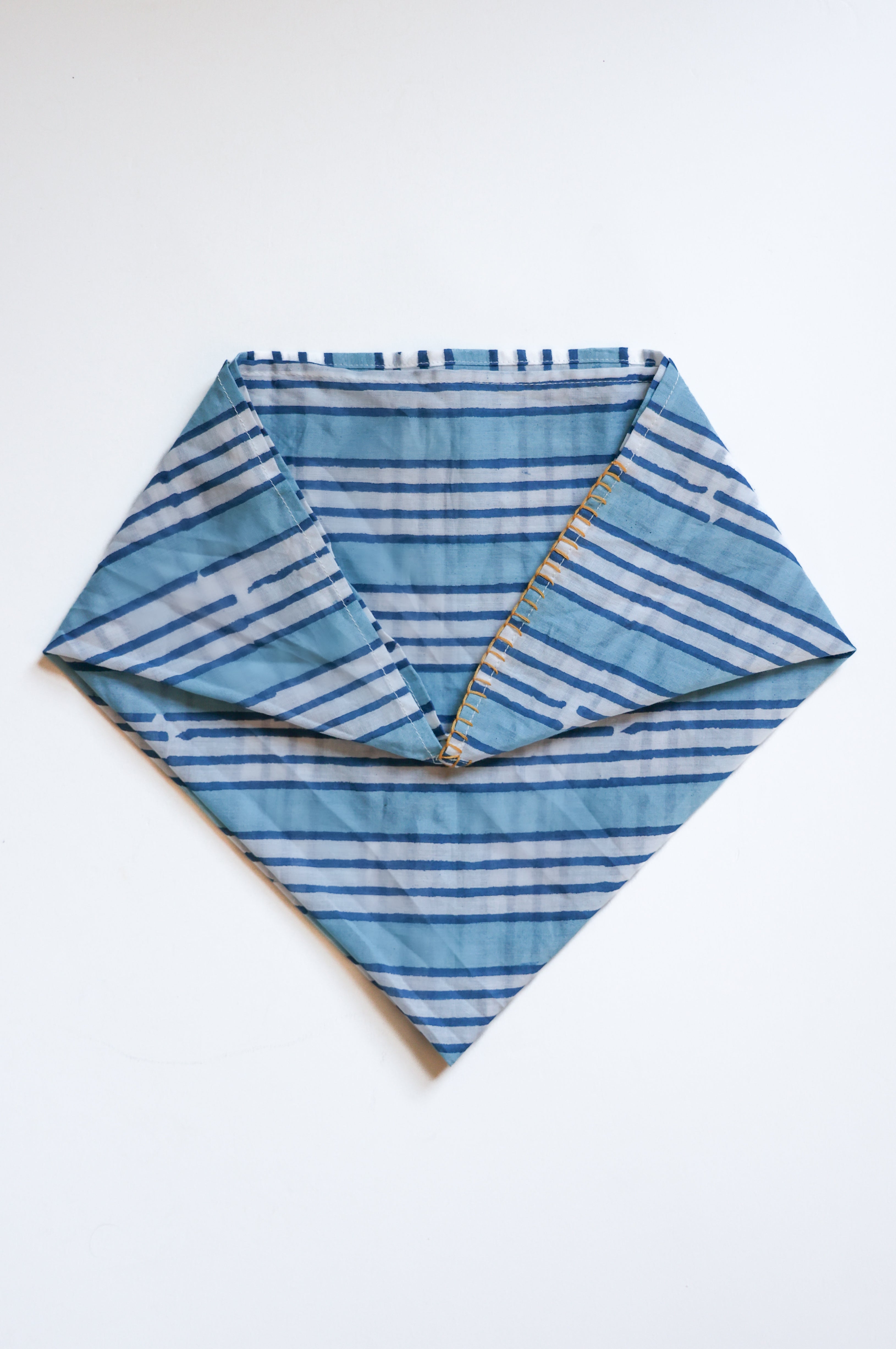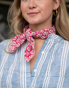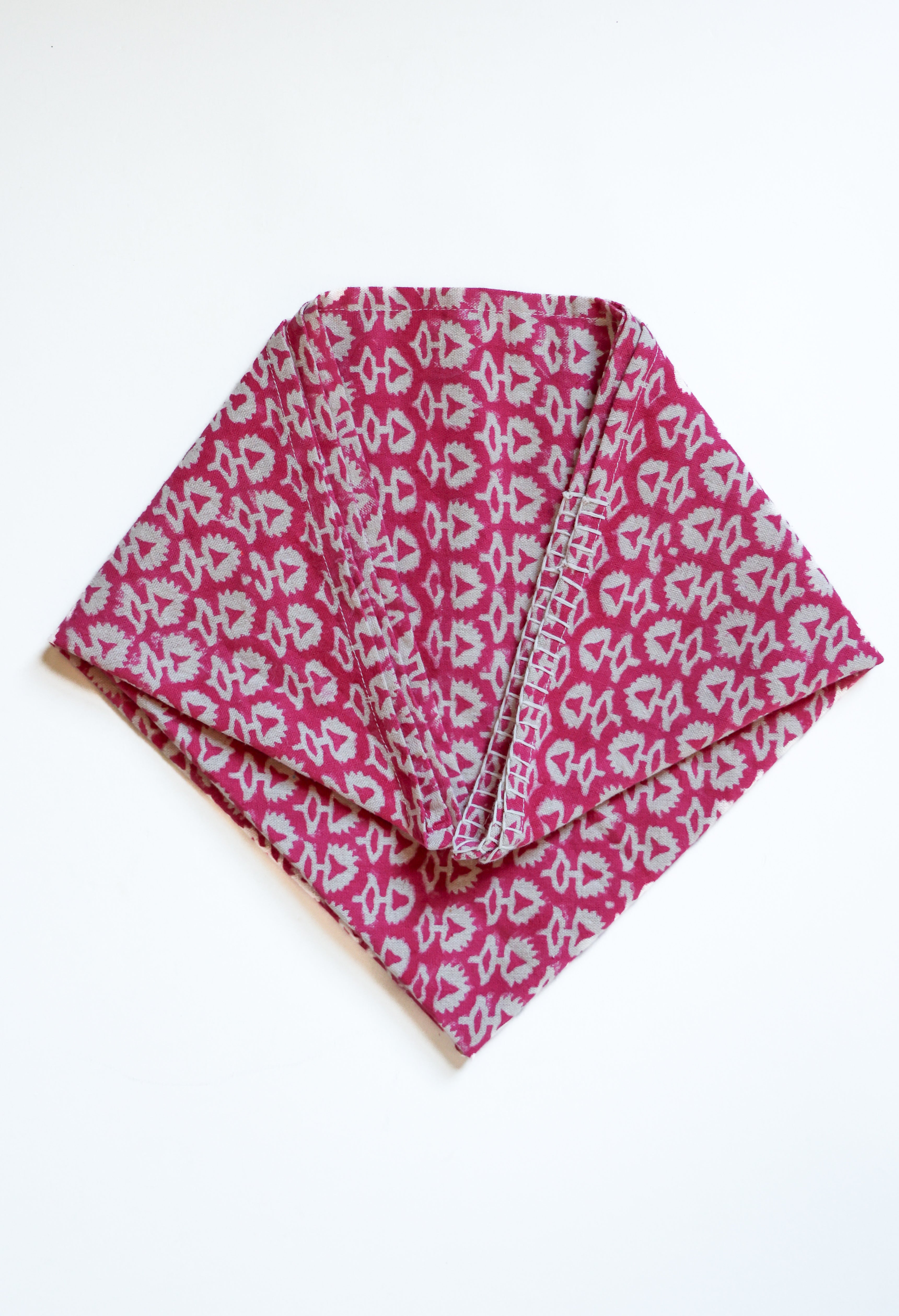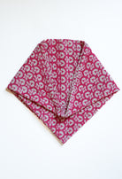 These cotton hand block print bandanas feature a blanket stitch detail. Can be worn around the neck or tied to a tote bag to add a pop of color. Choose your favorite pattern or collect them all!