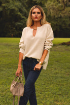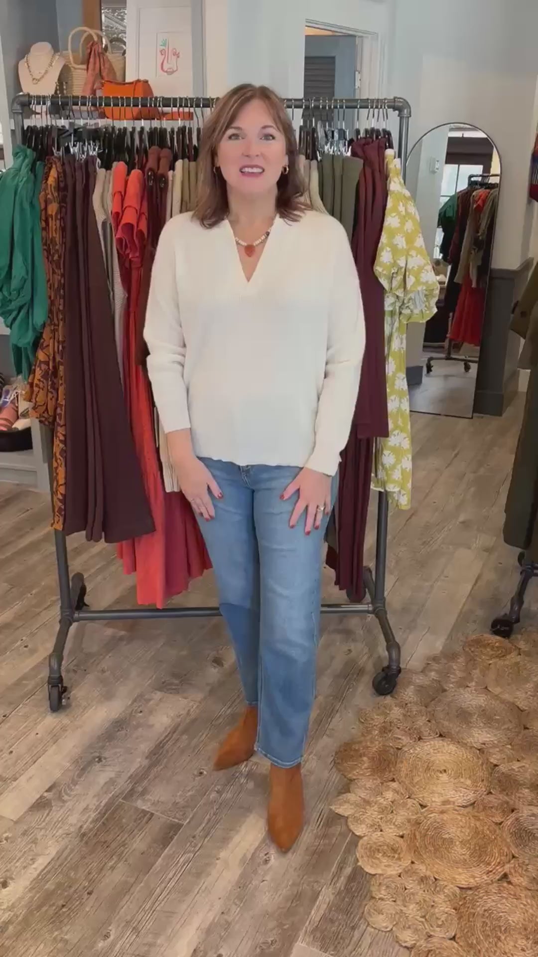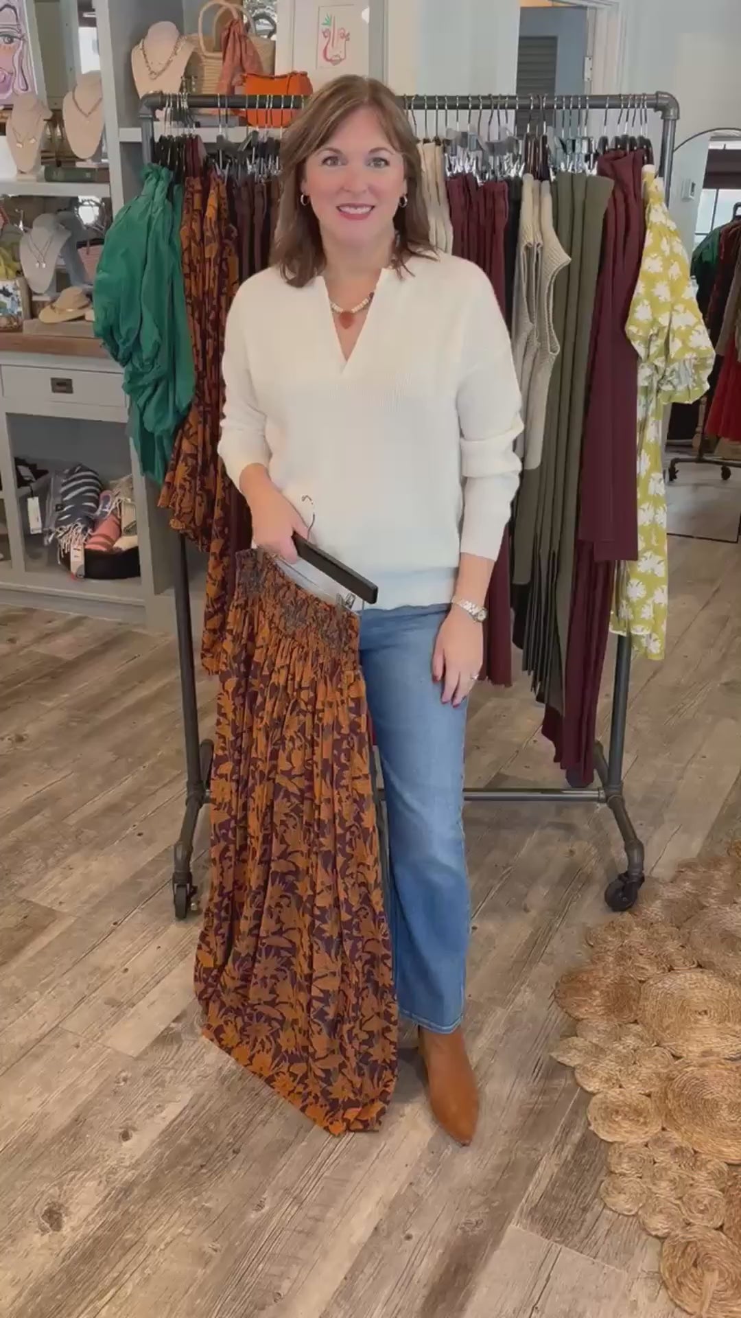 STYLE TIP: A cozy favorite of the ExVoto team! The slit neck of the Clem really frames your jewelry, so create a fun necklace stack! Give the Clem a front tuck, and pair it with our Mia Maxi skirt and a pair of tall brown suede boots for a look that is comfortably boot together. Style the Clem back to denim for an effortlessly chic look. Wear it on a lounge day at home. However you wear it, you will never want to take it off!