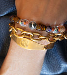 Customize up to three sets of initials in a circle monogram font on our newly designed three-sided ID bracelet. This carefully crafted piece offers both a personalized touch and triple the space for engraving 1, 2, or 3 sets initials of your favorite people.