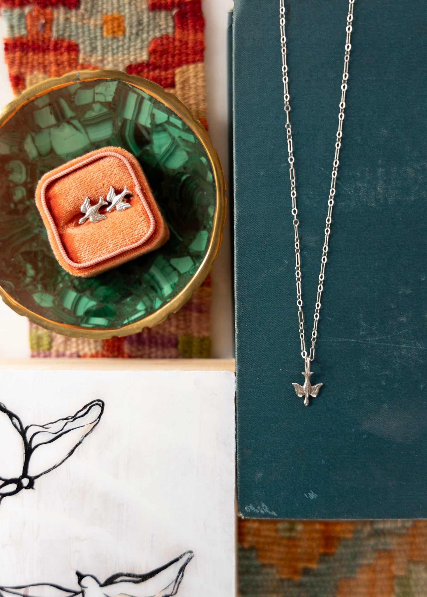 - This 18" necklace in sterling silver features a sweet dove pendant.