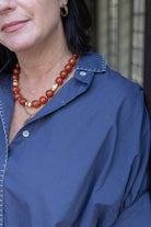 This 19" Willa Necklace features genuine carnelian gold plated beads, and our exclusive toggle closure.