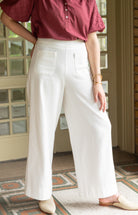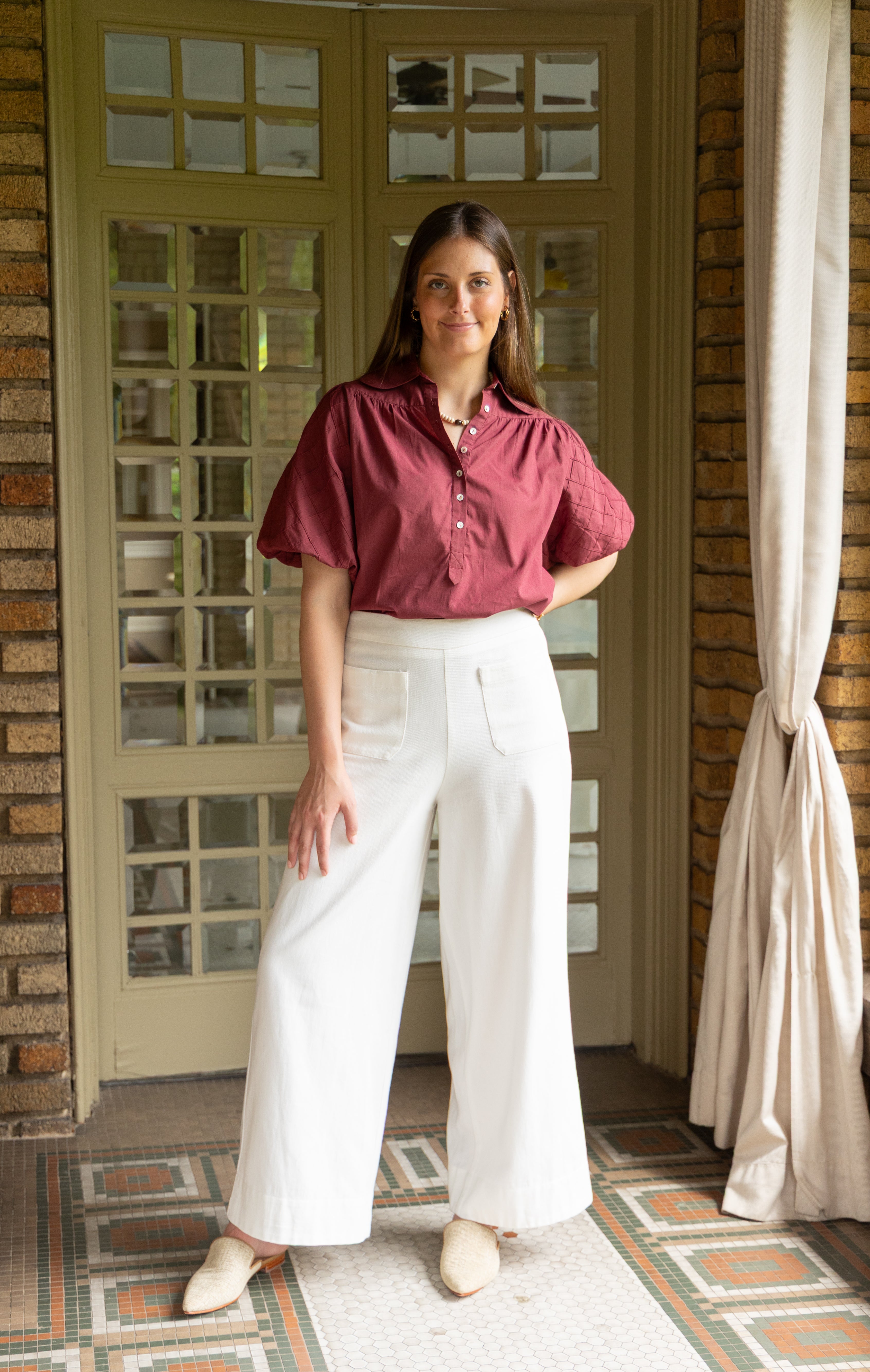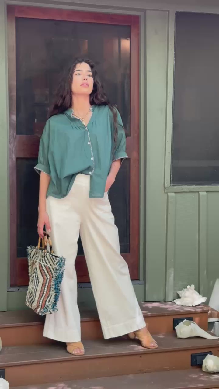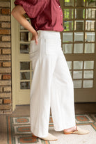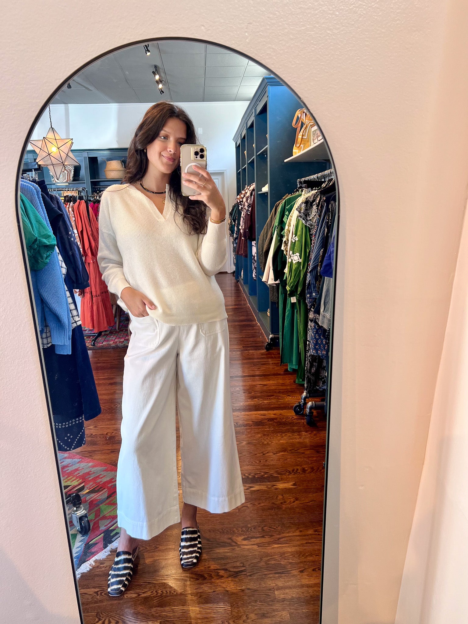 STYLE TIP: These high-waisted, wide-leg trousers in a soft cotton twill and timeless ecru are your new go-to for any season! Effortlessly stylish, they match perfectly with almost any top and carry you smoothly from early Fall through Spring.