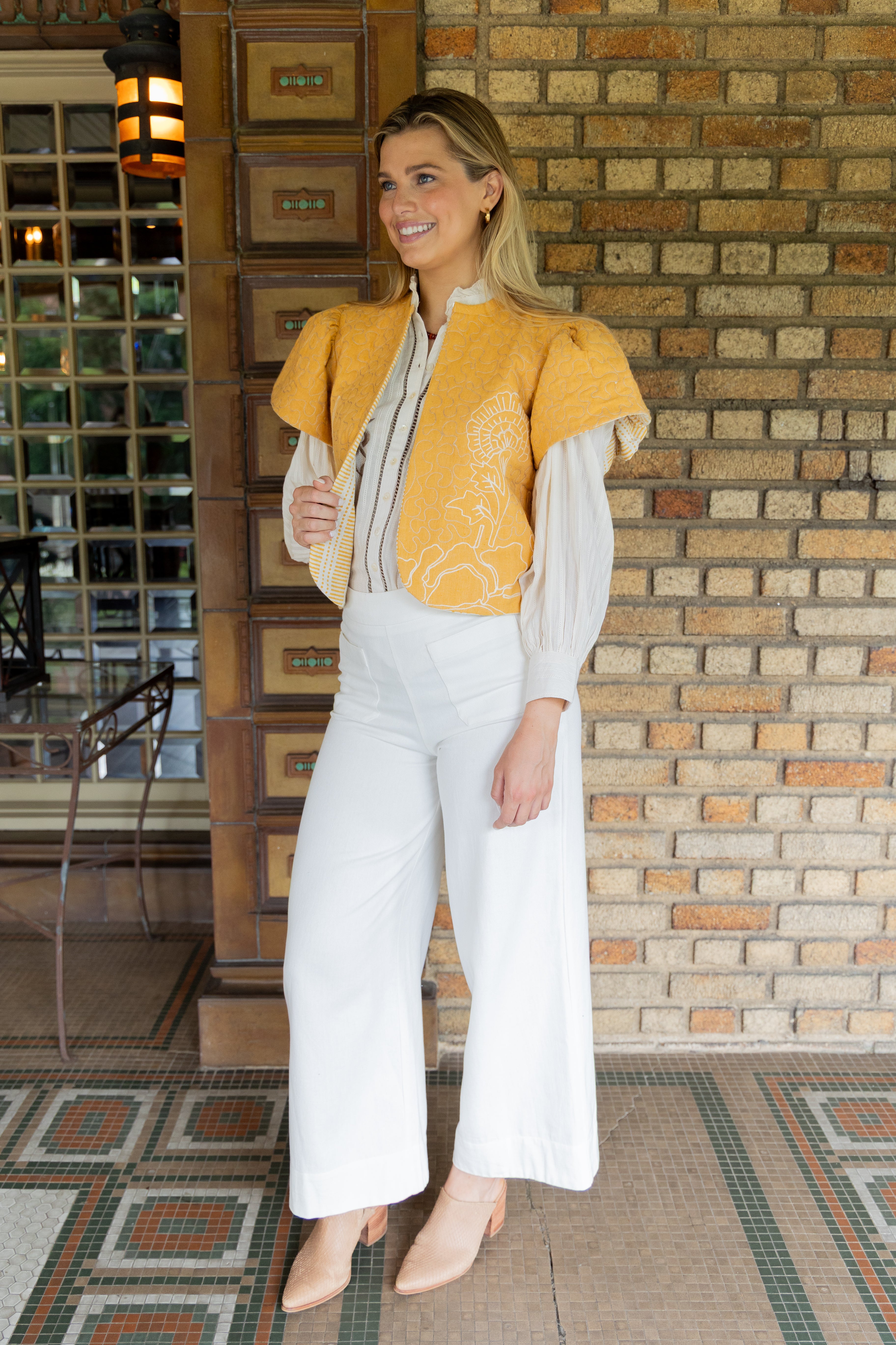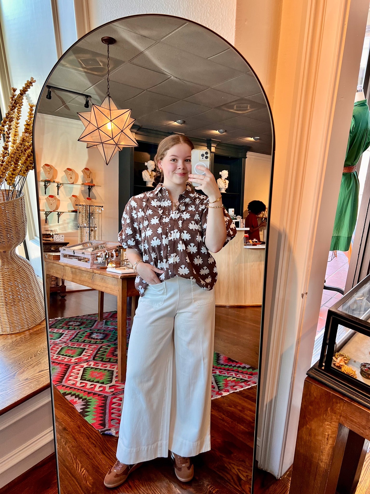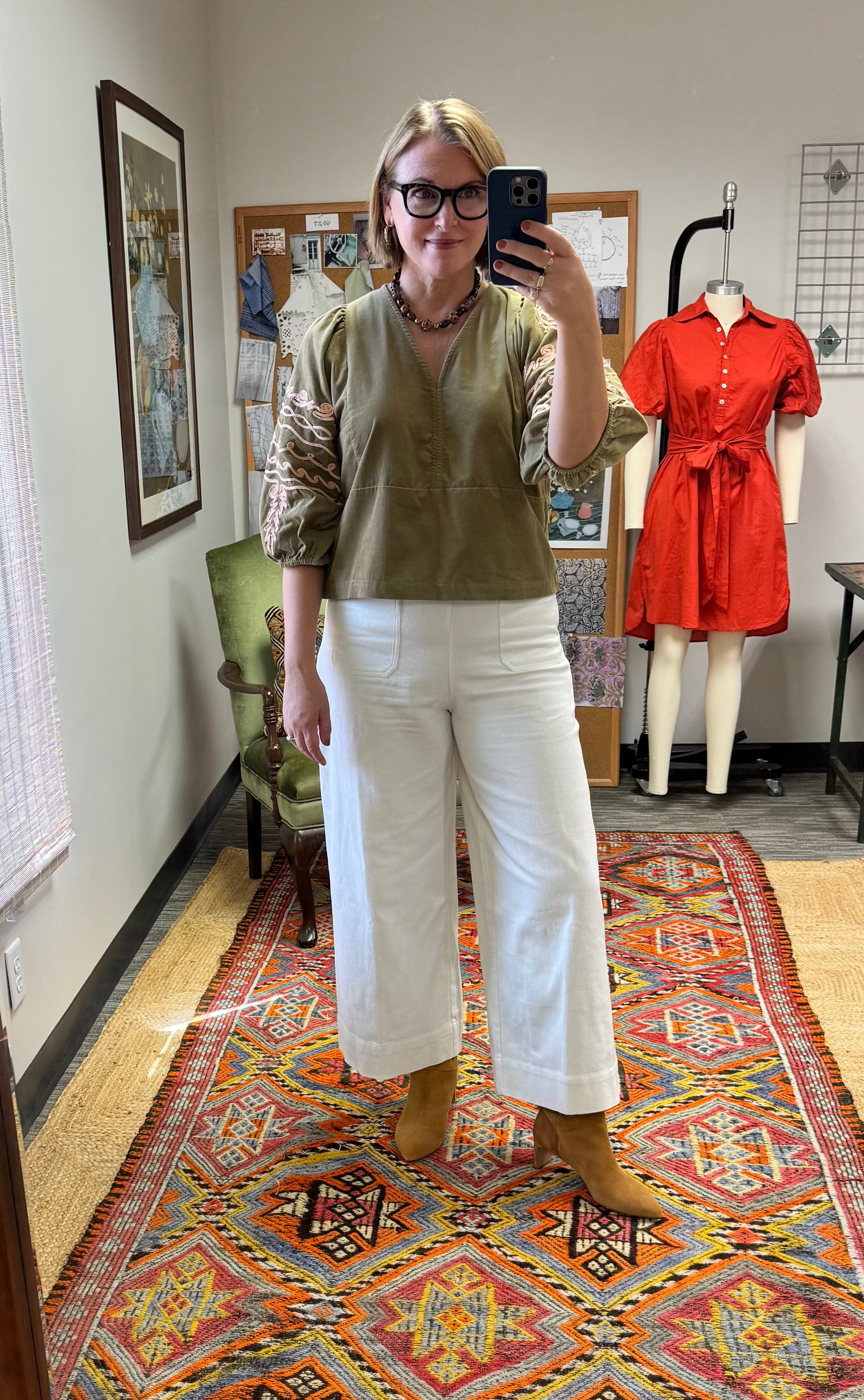 STYLE TIP: These high-waisted, wide-leg trousers in a soft cotton twill and timeless ecru are your new go-to for any season! Effortlessly stylish, they match perfectly with almost any top and carry you smoothly from early Fall through Spring.