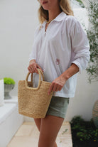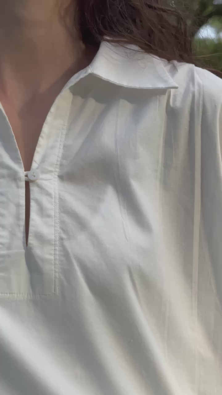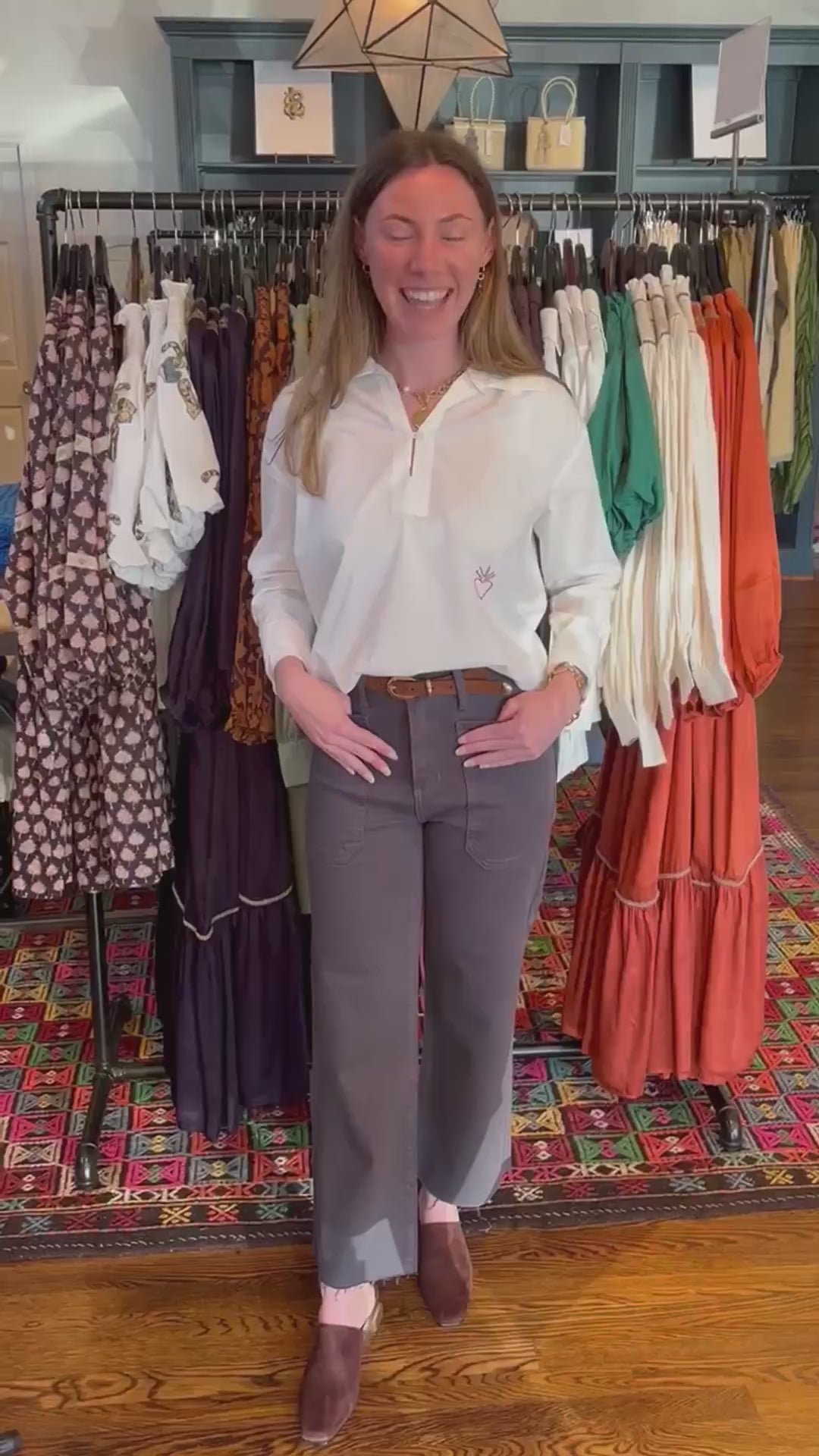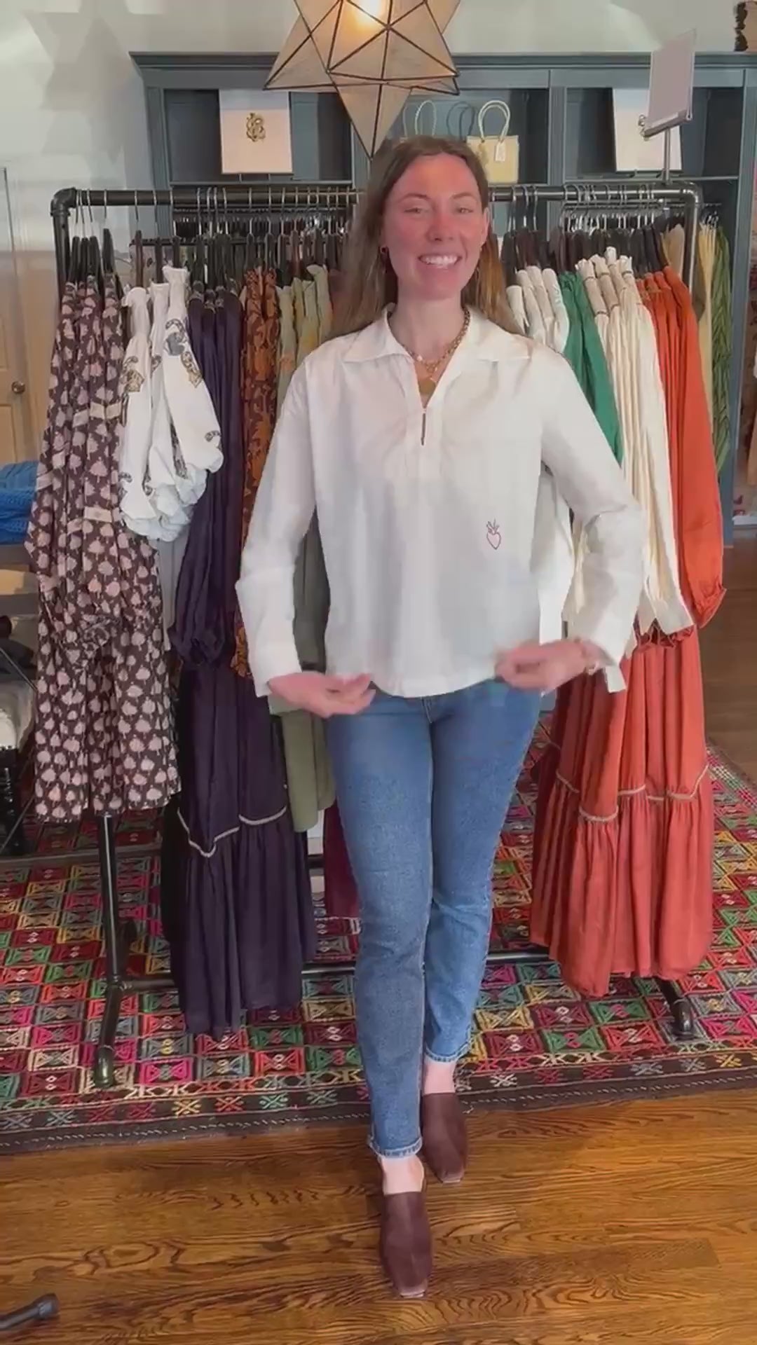 STYLE TIP: This blouse! We can't say enough. Terrific fit, timeless cut, and stitched detail. Wear this blouse with anything from denim to a classic trouser, even shorts. Front tuck, full tuck, or untucked. The neckline lets your necklaces shine!