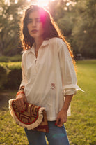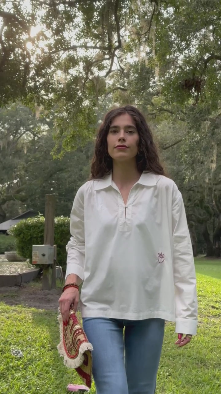 Grace Blouse in White with Hand Embroidered Sacred Heart by ExVoto