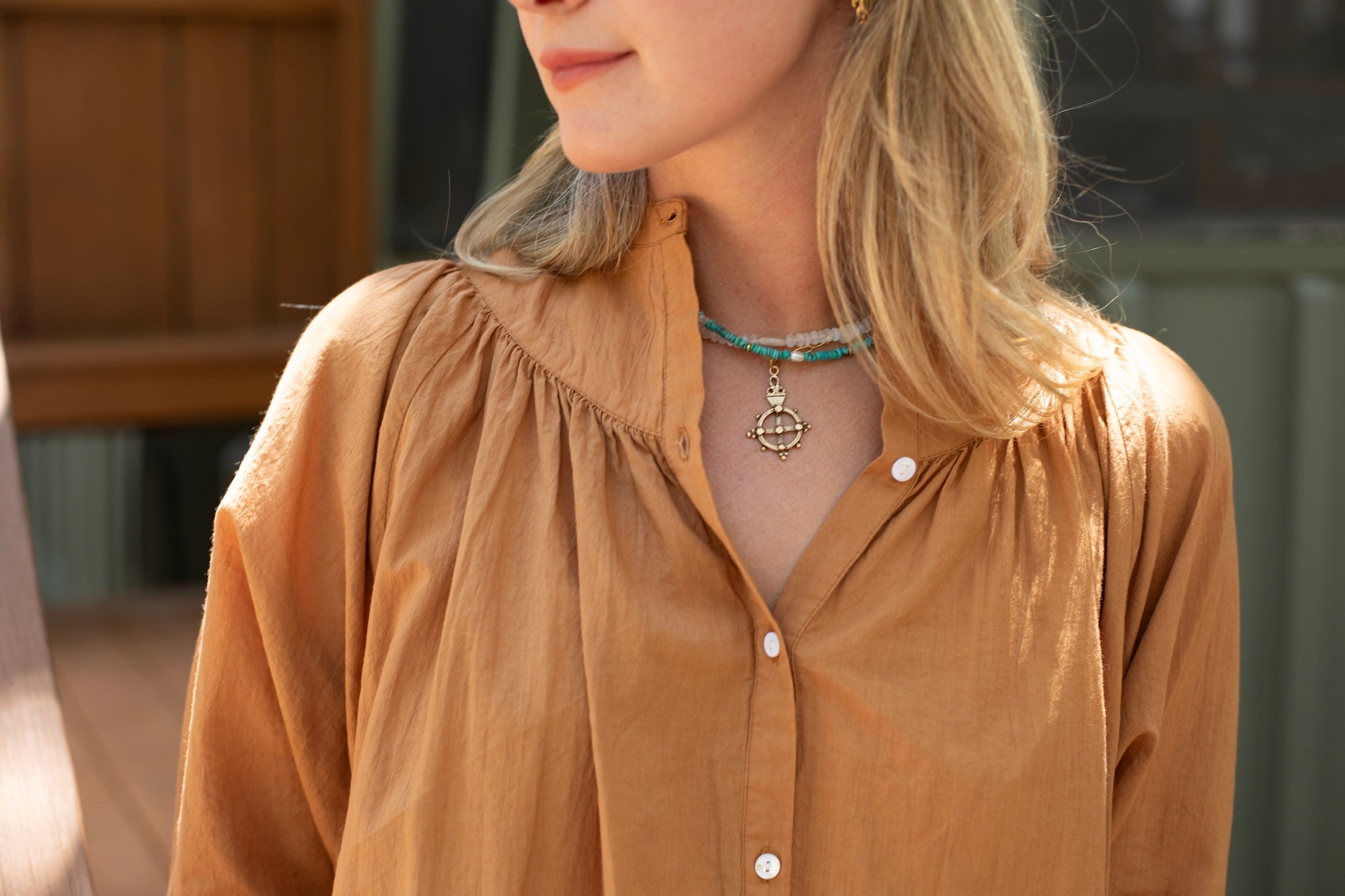 STYLE TIP: The Fleur Blouse in Tan is made from soft breathable cotton with a relaxed, boxy silhouette that flatters all body types. Wear it loose or tucked—pairs beautifully with the Hayley White Short, denim, or trouser.